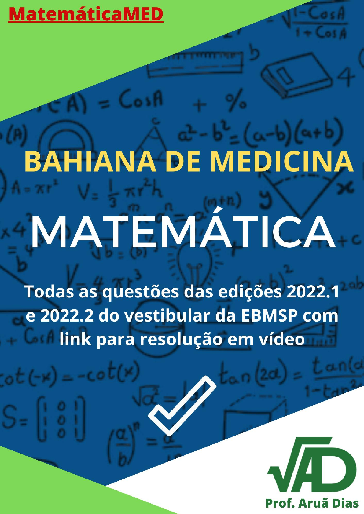 Matemática com Aruã @prof.aruadias Matemática com Aruã @prof.aruadias Olá! Tudo Bem? Eu sou o professor Aruã Dias e você acaba de adquirir um super e-Book com todas as questões de matemática do vestibular da Bahiana de Medicina (EBMSP) 2022.1 e 2022.2 com resolução em vídeo e gabarito. Cada questão possui QR Code e link para a resolução. É só escanear o QR Code com seu smartphone ou clicar no link que você será direcionado(a) para um vídeo com a resolução da questão feita pelo Prof. Aruã Dias no Youtube. Este E-Book irá ajudar no preparo para a sua aprovação! Te desejo muito sucesso e bons estudo! Para mais conteúdos e produtos como este, me siga nas redes sociais! Matemática com Aruã @prof.aruadias 1. (EBMSP/MEDICINA/Q.26/2022.1) A Agência Nacional de Saúde Suplementar, ANS, aprovou, em fevereiro de 2021, um novo rol de procedimentos de cobertura obrigatória por parte dos planos de saúde, mas ainda ficaram alguns que poderão ser incluídos em um futuro próximo. Disponível em: <https://www.extra.globo.com/economia>. Acesso: out. 2021. Adaptado. Determinado paciente, necessitando realizar um procedimento médico de cobertura ainda não obrigatória, fez uma pesquisa de preço e encontrou a possibilidade de fazer o pagamento de três maneiras distintas: ➢ Usando “pix”, com 10% de desconto; ➢ Usando cartão de débito, sem desconto; ➢ Usando cartão de crédito, parcelado em 5 vezes com um acréscimo de 15%. Sabendo-se que a diferença entre o valor pago usando cartão de crédito e o valor pago usando “pix” é de R$ 375,00; o valor a ser pago usando cartão de débito, em reais, é A) 1500 B) 1235 C) 1085 D) 1000 E) 750 ESCANEIE O QR CODE OU ACESSE O LINK PARA VER A RESOLUÇÃO DA QUESTÃO: https://www.youtube.com/watch?v=RAdLEa6Ymvk https://www.youtube.com/watch?v=RAdLEa6Ymvk Matemática com Aruã @prof.aruadias 2. (EBMSP/2022.1/Q.27/2022.1) O eletrocardiograma de esforço pode ser realizado com a utilização de uma esteira rolante ou de bicicleta ergométrica. Este exame é útil na investigação de doenças cardiovasculares e para diagnóstico, orientação de tratamento e / ou definição de prognóstico. Permite, também, uma estimativa da condição física do paciente. Suponha que o gráfico a seguir represente a tomada de pressão diastólica de um paciente durante uma sessão para obtenção do eletrocardiograma de esforço. Sabe-se que, após 𝑇1 minutos de exame, a pressão alcançou seu pico e, sob medicação, voltou a cair estabilizando-se em 74mmHg após 𝑇2 minutos. Nessas condições, pode-se afirmar que o paciente teve sua pressão estabilizada X minutos depois de medicado, onde X vale, exatamente A) 6min B) 5min C) 4min D) 3min E) 2min ESCANEIE O QR CODE OU ACESSE O LINK PARA VER A RESOLUÇÃO DA QUESTÃO: https://www.youtube.com/watch?v=QiTy3aIUBBY https://www.youtube.com/watch?v=QiTy3aIUBBY Matemática com Aruã @prof.aruadias 3. (EBMSP/2022.1/Q.28/2022.1) Em um mesmo dia, deram entrada na emergência de um hospital quatro pacientes para o Setor de Traumatologia e seis para o Setor de Cardiologia. Após serem atendidos e estabilizados, ficaram aguardando por vagas em quarto para internamento. Admitindo-se que, ao final do dia tenham surgido duas vagas, cuja ocupação foi feita, aleatoriamente, retirando-se dois dos prontuários desses pacientes, um após o outro, sem reposição, é correto afirmar que a probabilidade de que, pelo menos, um deles tenha sido do Setor de Traumatologia é de A) 1/3 B) 8/15 C) 3/5 D) 2/3 E) 4/5 ESCANEIE O QR CODE OU ACESSE O LINK PARA VER A RESOLUÇÃO DA QUESTÃO: https://www.youtube.com/watch?v=0006Sw-i5eA https://www.youtube.com/watch?v=0006Sw-i5eA Matemática com Aruã @prof.aruadias 4. (EBMSP/2022.1/Q.29/2022.1) No último “Dia dos Médicos”, um paciente presenteou seu médico com um peso de papel, em resina, cuja forma corresponde (conforme a figura) ao sólido obtido pela revolução de um triângulo retângulo em torno de sua hipotenusa. Sobre esse sólido sabe-se que: ➢ as suas diagonais medem 9,6cm e 10,0cm; ➢ seu volume é igual ao de uma esfera de raio R. Nessas condições, pode-se afirmar que o raio da esfera, em cm, mede A) √5,76 3 B) √57,6 3 C) √75,6 3 D) √576 3 E) √756 3 ESCANEIE O QR CODE OU ACESSE O LINK PARA VER A RESOLUÇÃO DA QUESTÃO: https://www.youtube.com/watch?v=deZNX7rkKOM&t=321s https://www.youtube.com/watch?v=deZNX7rkKOM&t=321s Matemática com Aruã @prof.aruadias 5. (EBMSP/MEDICINA/Q.26/2022.1) A Agência Nacional de Saúde Suplementar, ANS, aprovou, em fevereiro de 2021, um novo rol de procedimentos de cobertura obrigatória por parte dos planos de saúde, mas ainda ficaram alguns que poderão ser incluídos em um futuro próximo. Disponível em: <https://www.extra.globo.com/economia>. Acesso: out. 2021. Adaptado. Determinado paciente, necessitando realizar um procedimento médico de cobertura ainda não obrigatória, fez uma pesquisa de preço e encontrou a possibilidade de fazer o pagamento de três maneiras distintas: ➢ Usando “pix”, com 10% de desconto; ➢ Usando cartão de débito, sem desconto; ➢ Usando cartão de crédito, parcelado em 5 vezes com um acréscimo de 15%. Sabendo-se que a diferença entre o valor pago usando cartão de crédito e o valor pago usando “pix” é de R$ 375,00; o valor a ser pago usando cartão de débito, em reais, é F) 1500 G) 1235 H) 1085 I) 1000 J) 750 ESCANEIE O QR CODE OU ACESSE O LINK PARA VER A RESOLUÇÃO DA QUESTÃO: https://www.youtube.com/watch?v=RAdLEa6Ymvk https://www.youtube.com/watch?v=RAdLEa6Ymvk Matemática com Aruã @prof.aruadias 6. (EBMSP/2022.1/Q.27/2022.1) O eletrocardiograma de esforço pode ser realizado com a utilização de uma esteira rolante ou de bicicleta ergométrica. Este exame é útil na investigação de doenças cardiovasculares e para diagnóstico, orientação de tratamento e / ou definição de prognóstico. Permite, também, uma estimativa da cond