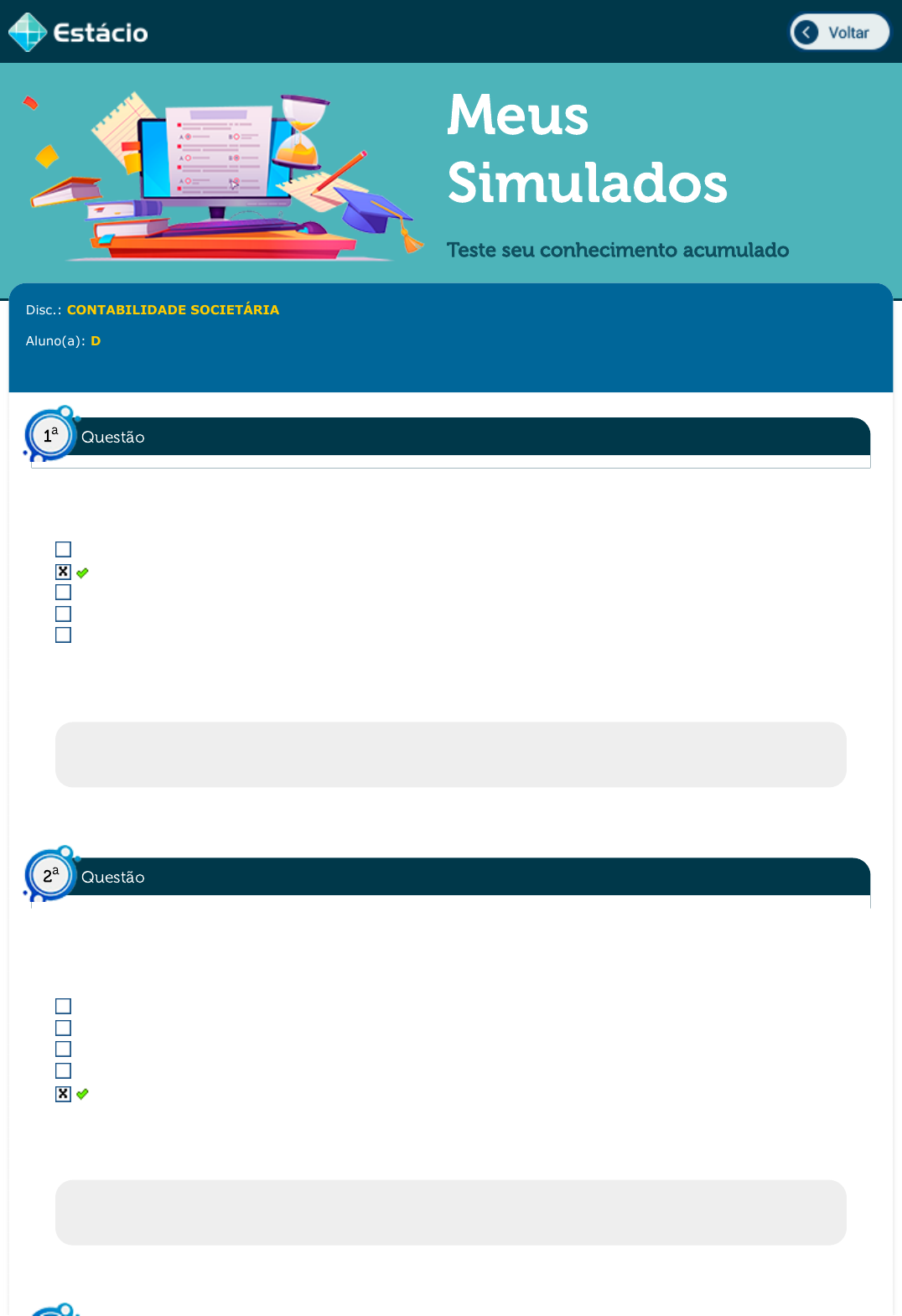 14/12/22, 13:41 Estácio: Alunos https://simulado.estacio.br/alunos/ 1/5 Meus Simulados Teste seu conhecimento acumulado Disc.: CONTABILIDADE SOCIETÁRIA Aluno(a): DEBORA POLIANA PEREIRA DE SOUZA 202007286758 Acertos: 9,0 de 10,0 14/12/2022 Acerto: 1,0 / 1,0 Uma empresa calculou o seu valor presente do capital próprio (VPCP) como R$7.000.000,00, sendo que a TIR dela é de 17% e a taxa de crescimento dos dividendos é de 10%. Qual é o valor que ela paga de dividendos atualmente? R$470.000,00 R$490.000,00 R$480.000,00 R$450.000,00 R$460.000,00 Respondido em 14/12/2022 13:22:15 Explicação: O cálculo do VPCP é feito da seguinte forma: 7.000.000=D/(0,17-0,10) , ou seja D=0,07×7.000.000=R$ 490.000,00 . Acerto: 1,0 / 1,0 O capital de terceiros pode ser entendido como as dívidas (emissão de títulos e bancárias) e ações preferenciais (que apesar de ações, contam com comportamento bem mais parecido ao das dívidas, uma vez que é preciso entregar parte dos resultados a elas). Diante disso, avalie a seguinte situação: uma empresa realiza uma operação de financiamento com capitais de terceiros a uma TIR mensal de 1,99%. Qual o valor da TIR anual? 27,68%. 25,68%. 24,68%. 23,68%. 26,68%. Respondido em 14/12/2022 13:24:50 Explicação: Para achar a TIR mensal temos de fazer o seguinte cálculo: 1,019912-1≈26,68% . Questão1 a Questão2 a https://simulado.estacio.br/alunos/inicio.asp javascript:voltar(); 14/12/22, 13:41 Estácio: Alunos https://simulado.estacio.br/alunos/ 2/5 Acerto: 1,0 / 1,0 Uma empresa toma uma operação de financiamento com capital de terceiros com valor presente do capital próprio (VPCP) de R$1.000.000,00, que será quitada com um pagamento daqui a três anos no valor de R$1.331.000,00. Qual o valor da TIR? 8% 10% 9% 6% 7% Respondido em 14/12/2022 13:26:41 Explicação: Para calcularmos o VPCT temos o seguinte cálculo: 1.000.000=1.331.000/(1+i)3, e simplificando chegamos à razão 1,1331=(1+i)3 e, portanto 1+i=1,1 e i = 10%. Acerto: 1,0 / 1,0 Proventos são os benefícios - na forma de dinheiro ou de algum direito - que as empresas de capital aberto distribuem aos acionistas. No mercado de ações brasileiro existem diversos tipos de proventos. Estes incluem os dividendos e os juros sobre o capital próprio (JCP), que são os mais conhecidos. Com relação a este tema, a empresa pode distribuir como JCP até: 50% dos lucros do exercício. 10% dos lucros do exercício. 30% dos lucros do exercício. 40% dos lucros do exercício. 20% dos lucros do exercício. Respondido em 14/12/2022 13:26:55 Explicação: Uma empresa pode distribuir através de JCP apenas 50% lucros acumulados de exercícios anteriores ou 50% dos lucros do exercício (qual for o maior). Acerto: 0,0 / 1,0 Empresas podem realizar dois tipos de investimentos: permanentes e temporários. Sobre investimentos permanentes, assinale a alternativa correta. possui retorno no curto prazo. precisa de um alto montante envolvido. tem natureza especulativa. não guarda, necessariamente, relação com a atividade da empresa. está atrelado a utização na produção da empresa. Respondido em 14/12/2022 13:36:25 Explicação: Investimentos permanentes ocorrem quando pessoas jurídicas adquirem ativos que serão utilizados no longo prazo. Essa utilização se dará justamente por meio da operação da empresa. Por isso, esses investimentos são também conhecidos como operacionais. Questão 3 a Questão4 a Questão5 a 14/12/22, 13:41 Estácio: Alunos https://simulado.estacio.br/alunos/ 3/5 Acerto: 1,0 / 1,0 Uma empresa compra um veículo para utilização em suas entregas e estima que ele durará 5 anos, ou 120.000 km rodados. A administração da empresa está indecisa se faz a depreciação desse investimento permanente por tempo ou pelo uso. Ela pagou R$140.000,00 à vista no veículo que possui valor residual R$20.000,00. Qual o valor da depreciação mensal (depreciação por tempo)? R$4.000,00 R$1.000,00 R$2.000,00 R$5.000,00 R$3.000,00 Respondido em 14/12/2022 13:25:52 Explicação: O valor da depreciação anual será de: Dividido por 12 meses dá o valor de R$2.000,00 por mês. Acerto: 1,0 / 1,0 Uma empresa compra um maquinário como investimento permanente por R$100.000,00 e espera que ele dure 10 anos quando será vendido por sucata por um valor residual irrisório. A depreciação é feita pelo tempo e não pelo uso. Após 8 anos verificou-se que caiu a demanda por produção dos produtos que esse maquinário produz, e a expectativa de geração de caixa por esse maquinário é de R$10.000,00 nos próximos 2 anos, com uma inflação prevista de 6%. A taxa interna de retorno da empresa, medida pelo WACC, é de 18% ao ano. Verificou- se que o maquinário poderia ser vendido por R$15.000,00 no estado em que se encontra. O valor a ser reconhecido como impairment é de: R$5.000,00 R$ 2.947,43 R$1.888,89 Não deverá ser reconhecido impairment R$4.000,00 Respondido em 14/12/2022 13:38:54 Explicação: Depreciação total: Valor contábil do bem: 100.000 - 80.000 = 20.000 Calculando o Valor em Uso: 8983,05 + 8.069,52 = 17.052,57 Diferença entre valor contábil e valor recuperável é de: 20.000 - 17.052,57 = 2.947,43. (140.000 − 20.000)/5 = R$24.000, 00 = 80.0008X100.000 10 + 10.000 X1,06 1,18 10.000 X1,062 (1,182) Questão6 a Questão7 a 14/12/22, 13:41 Estácio: Alunos https://simulado.estacio.br/alunos/ 4/5 Acerto: 1,0 / 1,0 O Diagrama de árvore representa o quadro societário deste conjunto de empresas. Com base no baseada no Manual FIPECAFI e nos Pronunciamentos Contábeis. Podemos dizer que: Sobre a Empresa G, para fins de preparação das demonstrações contábeis consolidadas: Ela é controlada por C. Ela é controlada por A. Ela é coligada de H. Ela é coligada de C. Ela é coligada de A. Respondido em 14/12/2022 13:22:53 Explicação: A Empresa A é coligada à Empresa C (40%), que controla a Empresa G (60%). Acerto: 1,0 / 1,0 A empresa A adquire 100% da empresa B e decide pagar a seus acio