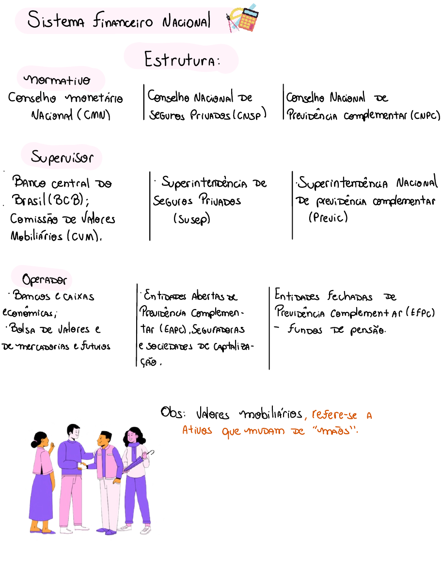 Sistema financeiro Nacional Estruturai mormativo conselho monetório Comselho Nacional De Conselho Nacional De Uncional CMN Seguros PriVaDOSIONSP) Previdencia complementarkNpc ) Supervisor BancocentralDo Superintendencia De SuperintendenciaNacioval BrAsilIBCB ); seguros Privados De previdencia complementar Comissão De valores Isusep) lprevic) Mobiliários I cum). Operador bancose caixas Entidades abertas de ENTiDADes FELhADas De economicas ; previdencia complemen. previdência complement aplefec) . Bolsa de valorese TAR CEAPC ), SEGURADORAS- FUDDOS DE PEMSãO Demercadoriase futuros esociedades De captaliza- ÇãD, Obsi valores mobiliários , refere-se a Ativos que mudam De "mats" Competências : CMN : Definira meta De INFlAção ; Diretrizese normas Das políticas monetória, cambiale creditícia ; - Disciplinar todos os tipos De Crépitos. Banco centrali Emitir papel-moeda; controlaro crébito De capitais estrangeiros ; Autorizz o funcionamento e FisCalIZAçãO De TODAS As instituições financeiras bancárias ; Determinaa taxa bósica De Juros ISelic) ( s no copom funcionamento de baceni 1 presidente e 8 Diretores ves mamdatos De p vanos Se ReDOuA A CADA ADO 2pessoas. ¥ aperas a reeleição V Semestralmente ir Ao Semado federal pl explicar o cenário económico , CUMi Dar proteção AOs investidores; Estimular o funciomamento Da Bolsa. Operadores CMN) Bancos Comerciais(curto prazo: Comprar celular , cptal DeGiroeetc.) -DBANCOS De investimento rmedio elongo prazoi uma empresa compia A concorrente , etc), -P Bancos Múltiplos lo várias Carteiras em um único CNPS , mecessário haver obrigatóriamente duas carteiras De crépito sendo ou comercial ou be investimento. a Corretora lintermediação ); -D Distribuidora pega volume De ATIVOS, GUARDAeM Sua Carteirae Distribui entre os investibores . SuSep-a Aberta Atribuições: fiscaliza o mercado Desecuros. Protege A CAPTASão DA POUPAMça popular previo-afechada FiscalIZAção e SUPeRVISãD DAS ATIVIDADeS DOJ FUDDOs De PeDSão , Ffixando Conceitos 1 - D Valores Mobiliários - a Selic -bumbeta Da Selic z - b bacen - b bacen - o bacen 3 Participantes Do mercado Bancos Camerciais-D Curto PrAzo e mébio prazo Geralmente consumo CAPIA RECUrsos À VistA OW À BrAzo ; Custódia De vdores ; Boss prestadores De serviços. Bancos De investimentoP longo prazo empresa comprar uma concorrente,etc). AtividaDes De corporate finance ; SubscriçãtDe Agoes e Debenturesi MAt tem conta corrente. Bancos múltiplos lo obrigatório: ou comercia ou De investimento váriascarteiras Bolsa pe vdores B 3-brenda fixa , lariável , derivativos ( o megocia voloresmobiliários BSM estó Dentro DA BolSAe faz a supervisão de mercados e a fiscalização. corretora Ctum Gpera ma balsa , subscreve emissões petítulos evalores mobiliários ; Groamizare administrar fundose clubesp. investimento Distribuidora De titulos e valores Mobiliários Dtum Intermediar ofertas públicas : : ADministrar e Custadiar As Cartejras . Jipos De Inuestidor Profissionali 10 milhões em investimentos financeirosequ . ateste por escrito , Fundos De investimento , . Instituisões fimancerras .s limites De concontragião por emissor e por moda- libade De Ativo estabelecidos ma ICUMS 55 mão Se APLICAM AOS FUNDOS DESTiMADos A esses profissionais. Qualificadoi 1 milhão e atestar pos escrito; .Clube De investimento ; Profissionais com centificação Obsi Investipor profissional équalificado A verdadeiro pfalso efalso o falso Aubima lo funções: - representar interesses De SeUS ASSOCIADOS ; - AutorregulagãDNCriA CODIGOs, eTC ); -Qualificar investiporese profissionais informar Copigo De certificação continuada CD Para que eleve A CAPACITAÇãO Dos profissionais; obrigatório Princípios De Conduta(Art.6:) - reputação boa ; Por parte dos - BoA fe , transparencia oledldade ; cumpram suas obrigações } Profissionais Cámaras De liquidação e custódia SPB. Sistema Depagamentos Brasileiro : mormas para transagão Financeira SPB CLC X cámaras De liquidação e custódia d lo Selic : Sistema especial De clearingi liquibasão e custódia.b demaneiraeletronioo títulos públicos são líquidados líquidaecompensatransfe . e custodiados pela Selio. rencias De FUndo Processa a emissão , resgate , Elimina o risco De dlébito pagamento Dos surose custódiA. títulos CustodiaDos ha Selici Ltf. tesouro selio ; LtN-tesouro prefixado ; NTN.F-tesouro Prefixado com juros semestrais ; NTN-B IPCA com Juros semestrais ; N +N-B Principal .-IPCA; NTN -G-IGP.M com Juros semestrais. B 3-Brasil, Bolsa e Balcão compensação , liquidação, Depósitoerebistro. Assume risco De Crépito. Fixando Conceitos GSEN facilita o encontro entre agentes Poupadores e tomadores De empréstimo precolhe adefide loresposta correta W DILa : sempre que A entidade comegarcom "' Conselho", A fungão Delz é mormativa.
