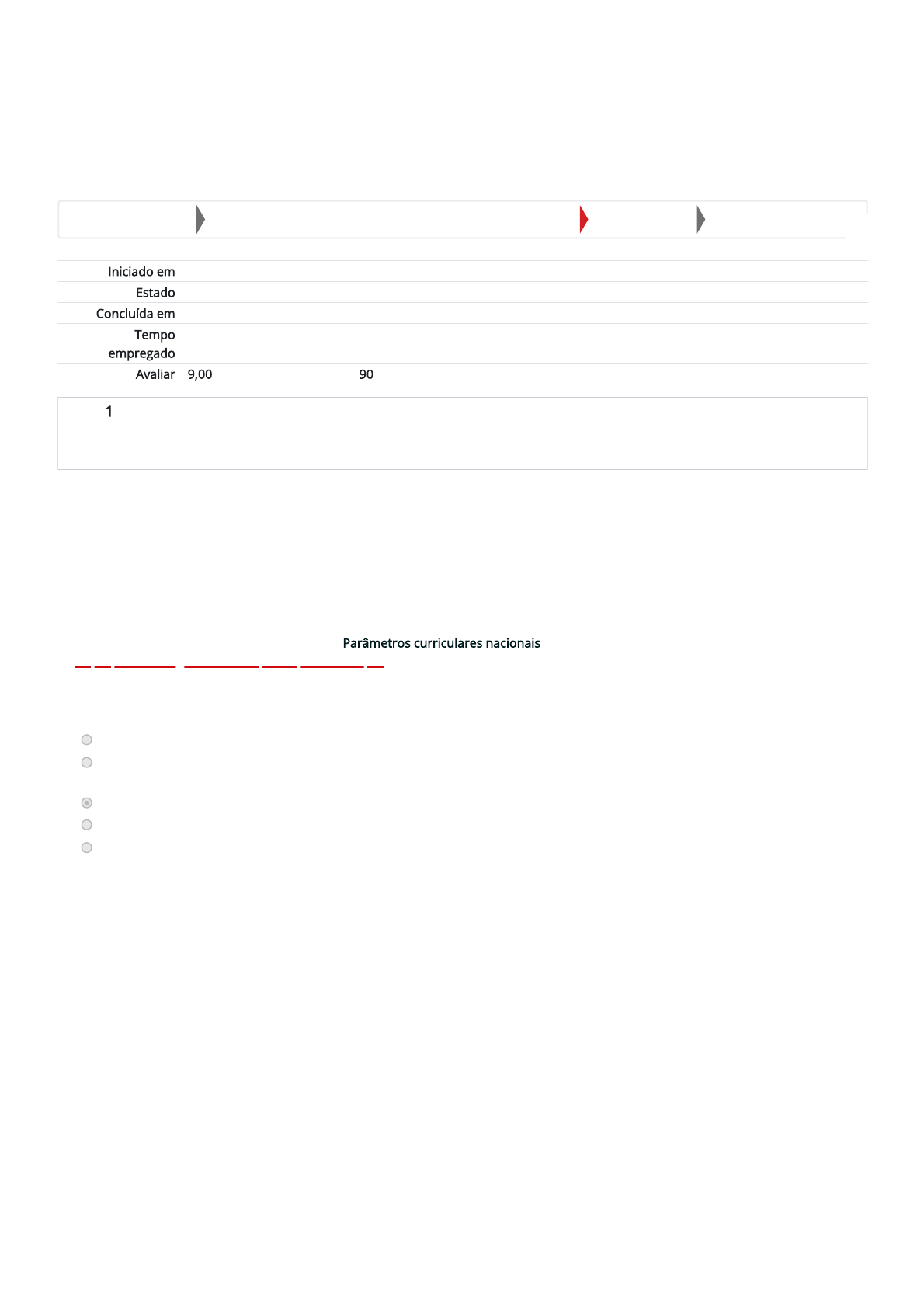 15/12/2022 12:53 N2 (A5): Revisão da tentativa https://ambienteacademico.com.br/mod/quiz/review.php?attempt=1693875&cmid=526144 1/5 Minhas Disciplinas 222DGR0494A - CORPO, MOVIMENTO E ARTE NA EDUCAÇÃO PROVA N2 (A5) N2 (A5) Iniciado em quarta, 14 dez 2022, 13:27 Estado Finalizada Concluída em quinta, 15 dez 2022, 12:53 Tempo empregado 23 horas 25 minutos Avaliar 9,00 de um máximo de 10,00(90%) Questão 1 Completo Atingiu 0,00 de 1,00 Leia o trecho a seguir. "[...] criança se movimenta nas ações do seu cotidiano. Correr, pular, girar e subir nos objetos são algumas das atividades dinâmicas que estão ligadas à sua necessidade de experimentar o corpo não só para seu domínio, mas na construção de sua autonomia. A ação física é a primeira forma de aprendizagem da criança, estando a motricidade ligada à atividade mental. Ela se movimenta não só em função de respostas funcionais (como ocorre com a maioria dos adultos), mas pelo prazer do exercício, para explorar o meio ambiente, adquirir melhor mobilidade e se expressar com liberdade. Possui, nesta etapa de sua vida, um vocabulário gestual �uente e expressivo". BRASIL. Secretaria da Educação Fundamental. Parâmetros curriculares nacionais: arte. Brasília: MEC, 1997. p. 49. Disponível em: http://portal.mec.gov.br/seb/arquivos/pdf/livro06.pdf. Acesso em: 19 fev. 2020. Considerando os Parâmteros Curriculares Nacionais (PCN), assinale a alternativa que apresenta um de seus objetivos para a dança na expressão e comunicação humanas. a. .Improvisar e criar sequencias de movimentos com os colegas, excercendo a criatividade do imaginário infantil. b. .Selecionar gestos e movimentos observados em danças, recriando e colocando a individualidade na realização dos movimentos. c. .Reconhecer o espaço e o explorar de forma indivudual, em dupla ou grupos, apoderando-se dessa prática. d. .Identi�car quem produz a dança como um agente social e cultural, capaz de pensar formas criativas de expressão. e. .Reconhecer e distinguir os diversos estilos de dança e a variação dos movimentos para comparar cada estilo. Guia Digital Carreiras e Internacionalização NAP CPA Responsabilidade Socioambiental https://ambienteacademico.com.br/my/ https://ambienteacademico.com.br/course/view.php?id=18587 https://ambienteacademico.com.br/course/view.php?id=18587§ion=7 https://ambienteacademico.com.br/mod/quiz/view.php?id=526144 http://portal.mec.gov.br/seb/arquivos/pdf/livro06.pdf https://codely-fmu-content.s3.amazonaws.com/Moodle/GuiaDigital/Guia+digital/index.html https://informa.fmu.br/carreiras/ https://codely-fmu-content.s3.amazonaws.com/Moodle/NAP/inicial/nap/fmu/index.html https://codely-fmu-content.s3.amazonaws.com/Moodle/CPA/landing_CPA/index.html https://portal.fmu.br/sustentabilidade 15/12/2022 12:53 N2 (A5): Revisão da tentativa https://ambienteacademico.com.br/mod/quiz/review.php?attempt=1693875&cmid=526144 2/5 Questão 2 Completo Atingiu 1,00 de 1,00 Questão 3 Completo Atingiu 1,00 de 1,00 De acordo com Alexandro� (2010), a relação das crianças com o desenho sempre esteve presente na sala de aula, mas durante muito tempo não era realmente valorizada como passo signi�cativo para o processo de aprendizagem. Tinha um papel recreativo e de registro para con�rmar aos pais que as crianças estavam realizando atividades. Porém, sabemos que o processo criativo desenvolve o sistema cognitivo e motor, possibilitando que a criança aprenda com seu corpo. Isso precisa de tempo e mediação para ocorrer. Como vimos, a primeira fase desse processo é a garatuja, chamada por Luquet de realismo fortuito. ALEXANDROFF, M. C. Os caminhos paralelos do desenvolvimento do desenho e da escrita. Construção psicopedagógica, São Paulo, v. 18, n. 17, 2010. p. 21. Disponível em: http://pepsic.bvsalud.org/scielo.php?script=sci_arttext&pid=S1415- 69542010000200003&lng=pt&nrm=iso. Acesso em: 19 fev. 2020. Considerando isso, assinale a alternativa que caracteriza esse tipo de realismo. a. .Risco no papel como exercício motor. b. .Experimentação de cores como exercício de harmonia. c. .Apreciação de cores como exercício visual. d. .Risco no papel como exercício de precisão. e. .Invenção de formas como exercício criativo. Leia o trecho a seguir. "A avaliação subsidiária dialógica que faço, e a que muitos dos alunos já estão habituados, propõe ação e fala em concomitância com o fazer arte, de modo a promover mecanismos de aprimoramento dos resultados e não a estagnação do que foi proposto em sala, um direcionamento constante". PEREIRA, I. S.; DEHEINZELIN, M. Os caminhos da criatividade em artes visuais na sala de aula: uma proposta de avaliação mediada pelos con�itos e contextos contemporâneos. Revista Belas Artes, São Paulo, n. 24, maio/ago., 2017. p. 10. Disponível em: http://www.belasartes.br/revistabelasartes/downloads/artigos/24/os-caminhos-da-criatividade-em-artes-visuais-na-sala-de-aula.pdf. Acesso em: 19 fev. 2020. Considerando os processos avaliativos nas artes visuais, analise as a�rmativas a seguir. I. É preciso cuidar a forma de expressar a opinião sobre o desenho dos alunos dos anos �nais, a �m de não bloquear a criatividade e a expressão subjetiva. II. O diálogo pode ser uma ferramenta importante durante o processo avaliativo, para não julgar as obras como acabadas e incentivar a re�exão do aluno sobre suas produções. III. A avaliação deve ocorrer durante todo o processo artístico e ser mediada por diálogos. IV. O objeto �nal de entrega não é apenas um trabalho e, sim, a materialização da subjetividade e dos desejos da criança, por isso é preciso ser crítico ao avaliar. Está correto o que se a�rma em: a. .I, II e III, apenas. b. .II e IV, apenas. c. .I e IV, apenas. d. .II e III, apenas. e. .III e IV, apenas. Guia Digital Carreiras e Internacionalização NAP CPA Responsabilidade Socioambiental http://pepsic.bvsalud.org/scielo.php?script=sci_arttext&pi