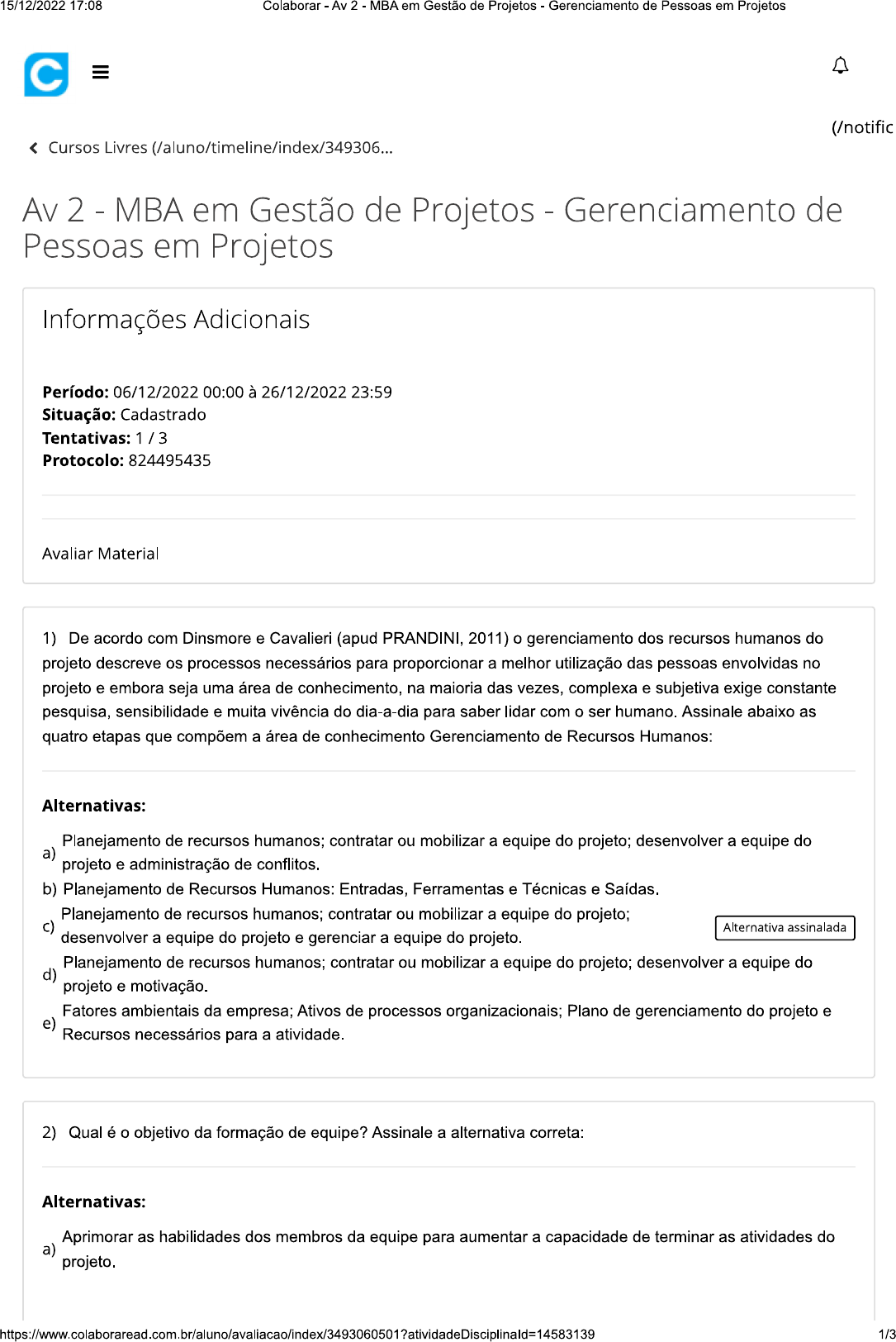 Av 2 - MBA em Gestão de Projetos - Gerenciamento de Pessoas em Projetos