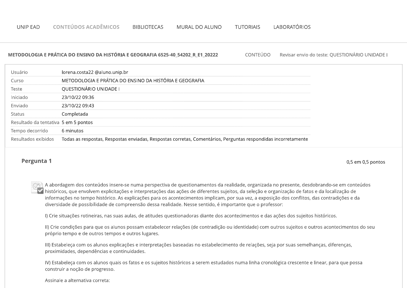 METODOLOGIA E PRÁTICA DO ENSINO DA HISTÓRIA E GEOGRAFIA Questionario unidade II