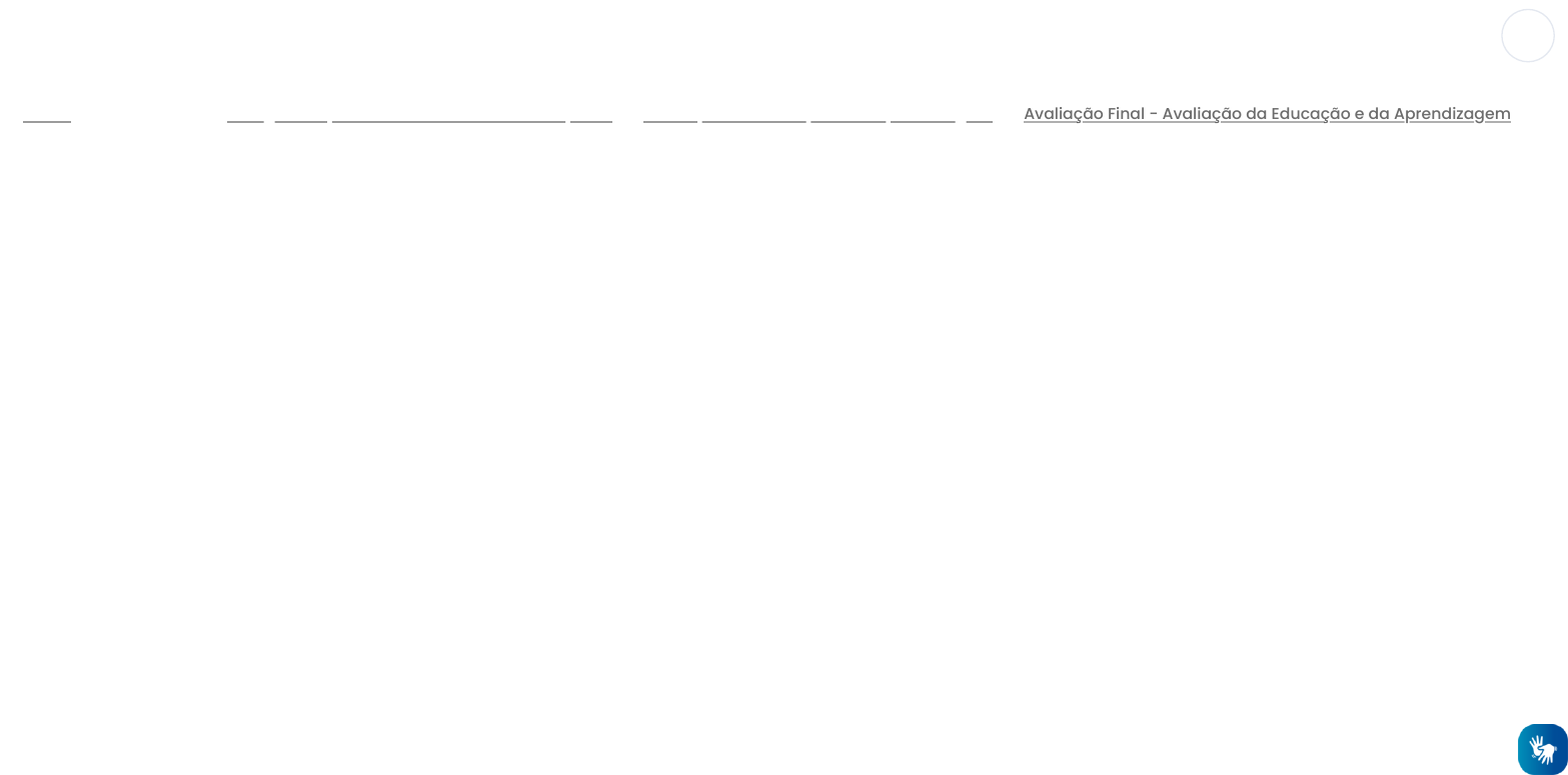 17/12/2022 20:46 Avaliação Final - Avaliação da Educação e da Aprendizagem: Revisão da tentativa https://ava.faculdadefocus.edu.br/mod/quiz/review.php?attempt=141771&cmid=1393 1/6 - Meus cursos - - - Painel Pós-graduação em Docência do Ensino Superior Avaliação da Educação e da Aprendizagem Avaliação Final - Avaliação da Educação e da Aprendizagem https://ava.faculdadefocus.edu.br/my/ https://ava.faculdadefocus.edu.br/course/view.php?id=22 https://ava.faculdadefocus.edu.br/course/view.php?id=22§ion=13 https://ava.faculdadefocus.edu.br/mod/quiz/view.php?id=1393 17/12/2022 20:46 Avaliação Final - Avaliação da Educação e da Aprendizagem: Revisão da tentativa https://ava.faculdadefocus.edu.br/mod/quiz/review.php?attempt=141771&cmid=1393 2/6 Iniciado em sábado, 17 dez 2022, 20:30 Estado Finalizada Concluída em sábado, 17 dez 2022, 20:45 Tempo empregado 15 minutos 24 segundos Avaliar 9,0 de um máximo de 10,0(90%) Questão 1 Incorreto Atingiu 0,0 de 1,0 (ENADE-2005) Um trabalhador de 42 anos matriculou-se no curso noturno de Educação para Jovens e Adultos de uma escola perto de sua casa. Na infância, estudou por três anos consecutivos e saiu da escola na 2.a série. Hoje, sente dificuldade para compreender o que lê, reproduzindo o que aconteceu naquela época. O pedagogo desta escola preparou os docentes para o trabalho com situações de ensino com foco na aprendizagem efetiva dos alunos. Dentro desta perspectiva, o professor de Português propôs as seguintes atividades abrangendo situações de aprendizagem e de avaliação: I. Diagnóstico para identificação do conhecimento de leitura do aluno como ponto de partida para o trabalho; II. Tarefas que o aluno realiza mais ou menos no tempo gasto pelos colegas; III. exercícios para o aluno apreender vocabulário, conceitos e normas básicas da escrita e da leitura; IV. Auto e heteroavaliação permanentes, para confrontar a percepção do aluno sobre seu aproveitamento escolar com a avaliação do professor. Atendem à proposta do pedagogo e às necessidades do aluno: a. II e III, apenas. b. I e III, apenas. c. I e IV, apenas. d. I, III e IV apenas. e. I, II e IV, apenas. Questão 2 Correto Atingiu 1,0 de 1,0 A avaliação diagnóstica pode ser considerada como a avaliação inicial. A avaliação formativa se fundamenta também na ideia de avaliação como contínua e processual e na intenção de reajustar o trabalho do professor, tendo como premissa básica um processo ininterrupto de reflexão e reorganização do planejamento e da didática do professor. A avaliação somativa, também denominada terminal acumulativa, está focada no final do processo e tem uma função certificativa, que objetiva obter uma visão geral sobre o desempenho dos alunos. Sobre as três avaliações citadas, é correto afirmar que a. são avaliações que possuem a mesma função, não sendo necessário utilizá-las em conjunto. b. são avaliações diferentes, e uma anula a outra. Deve-se permanecer com a avaliação formativa, que é mais completa. c. são avaliações diferentes, com funções diferentes; porém, não são incompatíveis e sim complementares entre si. d. são avaliações que não podem ser analisadas em conjunto devido ao distanciamento de objetivos pelo qual cada uma se caracteriza. e. são avaliações fundamentadas em concepções diferentes, não havendo relação entre elas. Questão 3 Correto Atingiu 1,0 de 1,0 17/12/2022 20:46 Avaliação Final - Avaliação da Educação e da Aprendizagem: Revisão da tentativa https://ava.faculdadefocus.edu.br/mod/quiz/review.php?attempt=141771&cmid=1393 3/6 (ENADE-2011) A escola delimita espaços. Servindo-se de símbolos e códigos, ela afirma o que cada um pode (ou não pode) fazer. Ela separa e institui. Informa o "lugar" dos pequenos e dos grandes, dos meninos e das meninas. Através dos seus quadros, crucifixos, santas ou esculturas, aponta aqueles/as que deverão ser modelos e permite, também, que os sujeitos se reconheçam (ou não) nesses modelos [...] Currículos, normas, procedimentos de ensino, teorias, linguagem, materiais didáticos, processo de avaliação são, seguramente, loci das diferenças de gênero, sexualidade, etnia, classe - são constituídos por essas distinções e, ao mesmo tempo, seus produtores. Todas essas dimensões precisam, pois, ser colocadas em questão. É indispensável questionar não apenas o que ensinamos, mas o modo como ensinamos e que sentidos nossos/as alunos/as dão ao que aprendem. Atrevidamente é preciso, também, problematizar as teorias que orientam nosso trabalho (incluindo, aqui, até mesmo aquelas teorias consideradas "críticas"). Temos de estar atentas/os, sobretudo, para nossa linguagem, procurando perceber o sexismo, o racismo e o etnocentrismo que ela frequentemente carrega e institui. (LOURO, G. L. Gênero, sexualidade e educação: uma perspectiva pós- estruturalista. 7. ed. Petrópolis: Vozes, 1997, p. 58 e 64.) Com base no texto acima, avalie as afirmações que se seguem. I. A escola define os espaços que cada um deve ocupar socialmente, visto que reproduz modelos e condiciona os alunos a segui-los. II. Os espaços delimitados pela escola representam a sala de aula em si, visto que é o ambiente predominante em que acontece o processo de aprendizagem. III. A delimitação de espaços pela escola só acontece no espaço escolar, visto que o(a) aluno(a) o ignora nos momentos em que não está inserido no contexto educacional. IV. Os espaços delimitados pela escola representam a rotulação e o estabelecimento de papéis e padrões de comportamento. É correto apenas o que se afirma em a. II e III. b. II, III e IV. c. I e IV. d. I e II. e. I, III e IV. Questão 4 Correto Atingiu 1,0 de 1,0 A Lei de Diretrizes e Bases da Educação Brasileira (Lei 9.394, de 20 de janeiro de 1996) estabelece cinco critérios sobre a verificação do rendimento escolar. Assinale a alternativa correspondente a ess