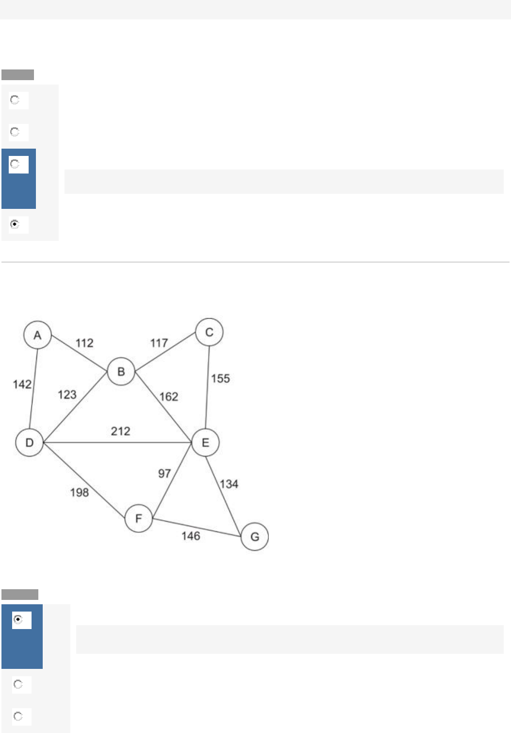 Nota: 90 Disciplina(s): Pesquisa Operacional Questão 1/10 - Pesquisa Operacional Na teoria dos jogos, a estratégia dominante consiste em: Nota: 0.0 A Derrotar o adversário sem dar chances a ele. B Assumir o controle do jogo e das tomadas de decisão. C Ter a melhor estratégia que não depende da ação escolhida pelo outro jogador. A estratégia dominante é a que gera os melhores benefícios sem depender das decisões alheias. D Ter sempre a melhor solução para os problemas. Questão 2/10 - Pesquisa Operacional O diagrama a seguir apresenta a localização de algumas das cidades de uma determinada região e as respectivas distâncias entre elas, em quilômetros. Qual deve ser o trajeto escolhido para que um viajante, partindo da cidade A percorra a menor distância possível para chegar até a cidade G? Nota: 10.0 A A-B-E-G Você acertou! Dentre diversas possibilidades, o caminho mínimo entre A e G é A-B-E-G. B A-D-F-G C A-D-E-G D A-D-F-E-G Questão 3/10 - Pesquisa Operacional Atualmente muitas empresas utilizam um sistema formal baseado em cálculos matemáticos e em computação para criar ou imitar processos reais com o objetivo de realizar testes e verificar a eficiência ou não, além de possibilitar a construção de teorias e estudar o comportamento desses processos. Esse sistema é conhecido como: Nota: 10.0 A Programação Matemática B Simulação Você acertou! A simulação é um importante processo que consiste em, a partir de um modelo matemático, representar um fenômeno real. Para que possamos analisar o comportamento de um problema real por meio da simulação, precisamos de dados referentes ao problema real de modo que o modelo matemático esteja o mais próximo possível da realidade. Em muitos casos, a simulação está relacionada a temas da estatística, tais como distribuição de probabilidades. C Pesquisa Operacional D Teoria dos Jogos Questão 4/10 - Pesquisa Operacional Determine a árvore mínima que interliga todos os pontos do grafo abaixo. Nota: 10.0 A A-B, A-C, C-D B A-B, A-C, B-C C B-C, C-D, B-D D A-C, B-D, B-C Você acertou! Conexões: A-C B-D B-C Total: 200 Questão 5/10 - Pesquisa Operacional Uma transportadora, localizada no ponto A do diagrama abaixo, precisa efetuar uma entrega no ponto E. Considerando os sentidos das vias e as distâncias em quilômetros entre os pontos de referência que estão sendo considerados, determine qual é o trajeto mais curto a ser considerado. Nota: 10.0 A A-E B A-C-E C A-B-E D A-B-D-E Você acertou! Dentre diversas possibilidades, o caminho mínimo entre A e E é A-B-D-E. Questão 6/10 - Pesquisa Operacional A figura a seguir apresenta as localizações das residências de um condomínio fechado e as respectivas distâncias, em metros. Um sistema de segurança será implantado e todas as casas devem ficar conectadas, formando uma árvore. Determine quais ligações devem ser feitas para que a árvore formada seja a menor possível. Nota: 10.0 A A-C, C-E, A-F, B-C, D-E B A-B, C-E, A-F, B-C, E-F C A-B, C-E, A-F, B-C, D-E Você acertou! Conexões: A-B C-E A-F B-C D-E Total: 1600 D A-B, C-E, A-F, B-D, D-E Questão 7/10 - Pesquisa Operacional A inteligência computacional está relacionada a técnicas computacionais baseadas em fenômenos naturais. Podemos destacar I. Redes neurais II. Sistemas especialistas III. Algoritmos genéticos IV. Lógica fuzzy Dentre as alternativas apresentadas, são corretas apenas Nota: 10.0 A II e IV B II, III e IV C I, II, III e IV Você acertou! Quando falamos em inteligência computacional, pensamos em técnicas computacionais baseadas em fenômenos naturais, tais como redes neurais, sistemas especialistas, algoritmos genéticos e lógica fuzzy. D I, II e IV Questão 8/10 - Pesquisa Operacional O diagrama a seguir apresenta a localização de algumas das cidades de uma determinada região e as respectivas distâncias entre elas, em quilômetros. Qual deve ser o trajeto escolhido para que um viajante, partindo da cidade D percorra a menor distância possível para chegar até a cidade C? Nota: 10.0 A D-E-C B D-B-C Você acertou! Dentre diversas possibilidades, o caminho mínimo entre D e C é D-B-C. C D-A-B-C D D-F-E-C Questão 9/10 - Pesquisa Operacional Qual é o fluxo máximo da seguinte rede de distribuição de petróleo? Nota: 10.0 A 40 B 43 Você acertou! Capacidades dos arcos: 1 2 18 1 3 30 2 3 10 2 4 20 3 4 25 Fluxo máximo: 43 C 45 D 48 Questão 10/10 - Pesquisa Operacional Obtenha a árvore mínima que interliga todos os pontos do seguinte grafo. Nota: 10.0 A 1-3; 2-3; 2-5; 3-4; 4-5; 6-7 B 1-5; 2-3; 2-4; 3-5; 5-7; 6-7 Você acertou! Conexões: 1-5 2-3 2-4 3-5 5-7 6-7 Total: 346 C 1-5; 2-3; 2-6; 3-4; 4-5; 5-7 D 1-2; 1-3; 2-4; 3-6; 3-7; 5-6