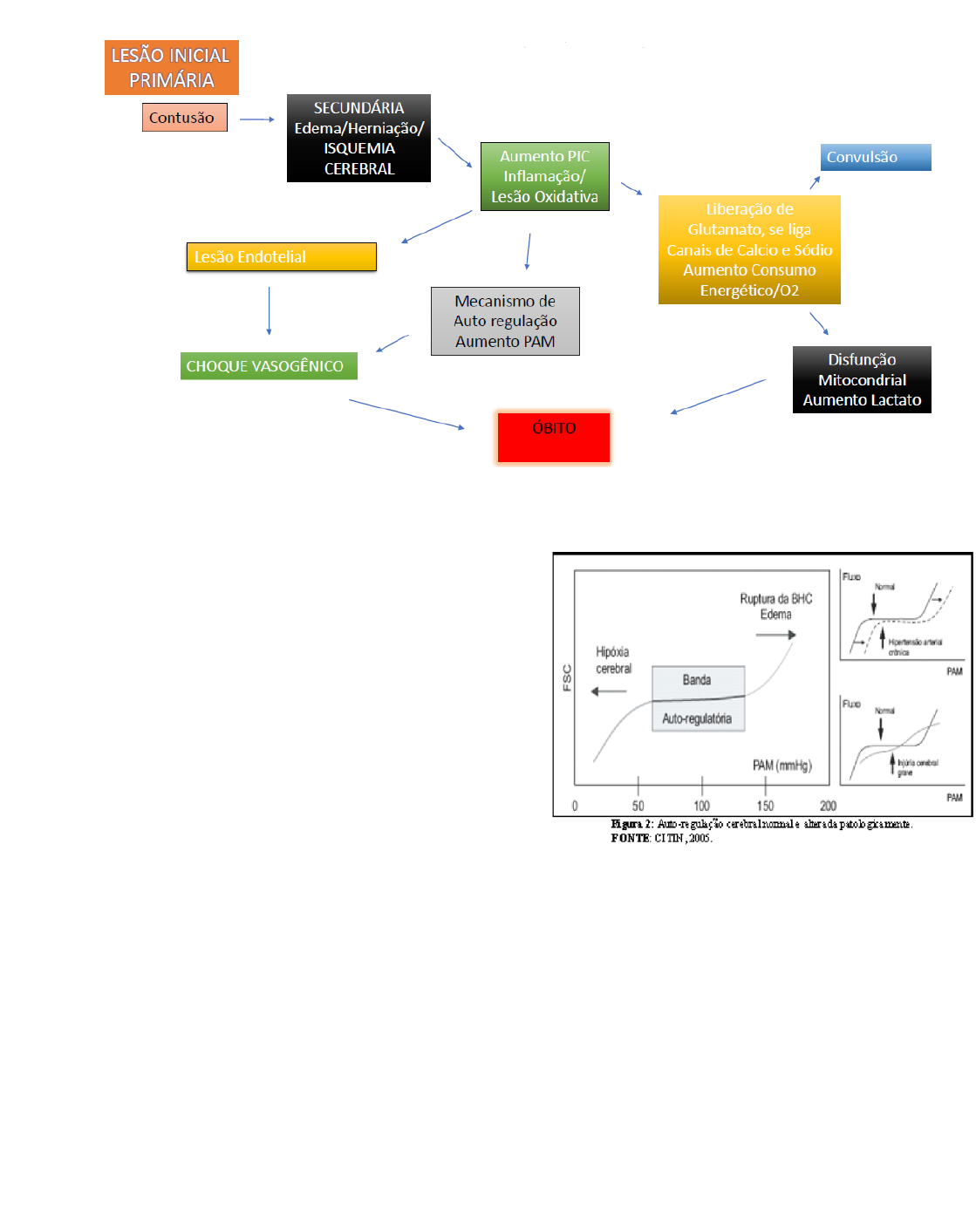 Traumatismo Cranioencefálico Fisiologia do TCE – O cérebro pode ter lesões tardias Contusão = processo inflamatório localizado (lesão por pancada por exemplo) Concussão = várias lesões em várias regiões no cérebro Herniação do cérebro = o cérebro aumenta tanto de tamanho que começa a sair da calota craniana ➜ entra em processo de isquemia cerebral Canais de sódio e cálcio = atuam na transmissão do impulso nervoso Choque vasogênico = diminuição da pressão pois o paciente perdeu a capacidade de fazer vasoconstrição periférica; *TCE sem hemorragia não precisa de prova de carga e sim de vasopressor •Triade de Cushing: mecanismos compensatórios que o paciente tem para manter a perfusão cerebral; • Hipertensão • Bradicardia • Dispneia Se você tem em um paciente hipertensão com bradicardia significa que ele está muito grave; a PIC passou da capacidade do cérebro se autorregular; nesse caso você tenta diminuir a pressão intracraniana usando manitol e hipertônica (diuréticos osmóticos) •Monroe Kelly: “doutrina”; • 80% volume cerebral • 10% volume sanguíneo • 10% líquor Manitol no paciente com TCE = diminuição do líquor; diminui o líquido dentro da calota craniana e consequentemente diminui a pressão; age também nos radicais livres dessa inflamação, podendo diminuir o edema da massa cerebral Avaliação – •ABC – D (o D é de avaliação neurológica) – você precisa de uma classificação inicial para pode acompanhar a evolução do paciente depois •Avaliação Neurológica •NIVEL DE CONSCIÊNCIA o Glasgow > 16 ótimo o Glasgow < 10 aumento PIC •Avalição Perfusão o PPC: PAM - PIC •Avaliação eletrólitos, glicemia e lactato *não é todo paciente com TCE que recebe manitol, só aqueles que tiverem sinais neurológicos e alterações no nível de consciência Existem maneiras de avaliar a pressão intracraniana, mas na veterinária isso ainda não é muito aplicável: (pressão de perfusão cerebral = pressão arterial média – pressão intracraniana) Pressão intracraniana: você coloca um cateter e faz a perfuração na calota craniana e o cateter mensura a pressão de dentro do crânio, porém aparelho e cateter muito caro Sinais clínicos – •Opistótono com hiperextensão de todos quatro membros é sugestivo de rigidez descerebrada ou dano cerebral. •Flexão e extensão variáveis dos membros posteriores é como lesão cerebelar •Resposta adequada a Luz indicam função adequada do tronco cerebral rostral, quiasma óptico, nervos ópticos e retina. •Pupilas mióticas indicam lesão difusa do prosencéfalo •A progressão para a midríase pode indicar hérnia cerebral. Os sinais clínicos sugerem o grau de gravidade e aonde está a lesão Região de tronco encefálico = sai a maior parte dos nervos cranianos Pupilas – Anisocoria: ocorre quando as pupilas assumem tamanhos desiguais (lesão mais leve) Miose: é uma condição que ocorre quando as pupilas permanecem contraídas, não respondendo à quantidade de luz que chega aos olhos (lesão mais central, um pouco mais grave) Midríase: é uma dilatação que a pupila sofre em decorrência de causas não fisiológicas (lesão mais importante) Tratamento – •MANTER PERFUSÃO → IDENTIFICAR HEMORRAGIAS (primeira coisa é identificar uma hemorragia) → REANIMAÇÃO VOLÊMICA se necessário → PAM >65 mmHg PAS > 100 mmHg •PIC → TERAPIA OSMÓTICA → Fluido: •Manitol 0,5 –1g kg em 15 – 20 minutos •Hipertônica 7 ou 3,5%: 4-6ml kg em 2–5 minutos *nunca fazer manitol em pacientes com pressão baixa •OXIGENIOTEPIA (não pode passar sonda nasal, tem que usar máscara ou outro meio) •CONTROLE DE CONVULSÕES → Glasgow abaixo de 8 (tem indicação de intubar para proteger vias aéreas) → Se convulsão: Loading de Fenobarbital (3 doses de fenobarbital em 30min-1h) •HIPOTERMIA → 36 a 37 C → Febre faz com que tenha maior consumação de oxigênio e energia Neuroproteção – ➤Elevação da cabeça 30/45° (inclinar todo o corpo; facilitar o retorno venoso e fluxo cerebral) ➤Controle glicêmico ➤Controle eletrólitos ➢ Sódio ➢ Balanço hídrico (quantidade de líquido/urina que o paciente está produzindo) – não pode deixar o paciente desidratar ➤Mudança de decúbito (a cada 4 horas) ➤Controle temperatura corporal ➤Avaliação CO2 (pode causar vasodilatação e a pressão cair) ➤Avaliação do Glasgow Evitar – •Agitação/Stress •Compressão de jugular (tentar colher sangue da jugular sem garrote ou colher de outro local) •Evitar náusea e tosse •Evitar Aspiração •Rotação de pescoço •Hipotensão •Hipo/Hiperventilação •Posição de trendelemburg (evitar - cabeça abaixo da linha do corpo) E se tiver convulsão?? •Status: Crises epiléticas com + de 5 minutos ou ausência de recuperação entre as crises em 24hs •Cluster: 2 ou + crises em 24hs com recuperação da consciência *medicar e tratar a convulsão Neurológicos - Avaliação constante do CO2: •Alterações relacionadas ao CO2: •Acidose respiratória •Vasodilatação •Aumento PIC •Diminui perfusão Cerebral •Aumenta consumo de O2 cerebral •Taquipneia compensatória •Hipoxemia ATENÇÃO o que NÃO fazer: ➜Uso da furosemida não tem comprovação ➢ Risco de hipovolemia ➜Uso de corticoide está contraindicado ➢ Aumento mortalidade ➢ Hiperglicemia ➢ Imunossupressão ➢ Risco de ulcerações e catabolismo ➜Uso de Manitol está contraindicado em pacientes HIPOVOLÊMICOS ➜Uso de Solução Hipertônica está contraindicado em paciente com hiponatremia