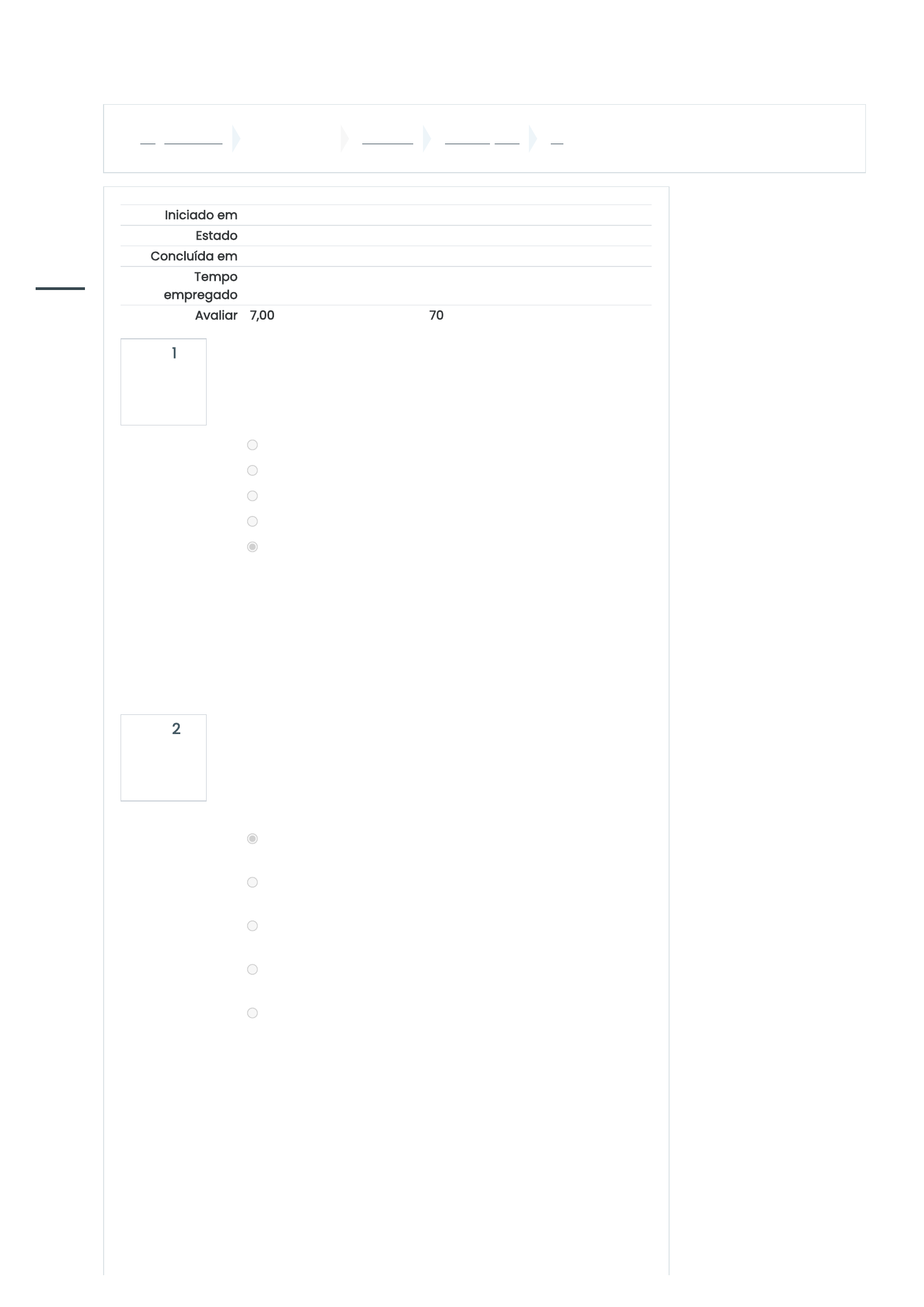 28/09/2020 V1 https://ead.universo.edu.br/mod/quiz/review.php?attempt=421472&cmid=150648 1/4 Página inicial Meus cursos 50963N1 AVALIAÇÕES V1 Questão 1 Correto Atingiu 1,00 de 1,00 Questão 2 Correto Atingiu 1,00 de 1,00 Iniciado em quarta, 23 Set 2020, 18:15 Estado Finalizada Concluída em quarta, 23 Set 2020, 20:28 Tempo empregado 2 horas 12 minutos Avaliar 7,00 de um máximo de 10,00(70%) Não é um efeito terapêutico da PEEP: Escolha uma: a. Diminuir o shunt intrapulmonar b. Melhorar a complacência Pumonar c. Aumentar a relação V/Q d. Otimizar higiene brônquica e. Deslocar ponto de igual pressão mais para periferia pulmonar Sua resposta está correta. A resposta correta é: Deslocar ponto de igual pressão mais para periferia pulmonar. Qual das técnicas listadas abaixo não expande o pulmão pela pressão expiratória : Escolha uma: a. Breath Stacking b. PEEP c. PEP d. Frenolabial e. EPAP Sua resposta está correta. A resposta correta é: Breath Stacking. https://ead.universo.edu.br/ https://ead.universo.edu.br/course/view.php?id=5245 https://ead.universo.edu.br/course/view.php?id=5245#section-3 https://ead.universo.edu.br/mod/quiz/view.php?id=150648 javascript:void(0); https://ead.universo.edu.br/user/index.php?id=5245 https://ead.universo.edu.br/badges/view.php?type=2&id=5245 https://ead.universo.edu.br/admin/tool/lp/coursecompetencies.php?courseid=5245 https://ead.universo.edu.br/grade/report/index.php?id=5245 https://ead.universo.edu.br/ https://ead.universo.edu.br/my/ https://ead.universo.edu.br/calendar/view.php?view=month&course=5245 javascript:void(0); https://ead.universo.edu.br/user/files.php 28/09/2020 V1 https://ead.universo.edu.br/mod/quiz/review.php?attempt=421472&cmid=150648 2/4 Questão 3 Correto Atingiu 1,00 de 1,00 Questão 4 Incorreto Atingiu 0,00 de 1,00 Questão 5 Correto Atingiu 1,00 de 1,00 Qual das técnicas abaixo otimiza mais o controle sobre a dinâmica frênica: Escolha uma: a. Inspiração profunda b. Expiração abreviada c. Inspiração Fracionada d. Apneuse e. Soluços inspiratórios Sua resposta está correta. A resposta correta é: Soluços inspiratórios . Sobre incentivo inspiratório responda a alternativa correta: Escolha uma: a. Os incentivadores inspiratórios promovem expansão pulmonar por aumento da pressão alveolar e aumento da pressão transpulmonar b. Os incentivadores inspiratórios promovem expansão pulmonar por queda da pressão pleural e diminuição da pressão transpulmonar c. Os incentivadores inspiratórios promovem expansão pulmonar por aumento da pressão pleural e aumento da pressão transpulmonar d. Os incentivadores inspiratórios promovem expansão pulmonar por queda da pressão pleural e aumento da pressão transpulmonar e. Os incentivadores inspiratórios promovem expansão pulmonar por aumento da pressão alveolar e diminuição da pressão transpulmonar Sua resposta está incorreta. A resposta correta é: Os incentivadores inspiratórios promovem expansão pulmonar por queda da pressão pleural e aumento da pressão transpulmonar . Qual destas técnicas empilha ar utilizando musculatura da língua e da faringe : Escolha uma: a. Air Stacking b. Breath Stacking c. EPAP d. Incentivador volumétrico e. Respiração Glossofaríngea Sua resposta está correta. A resposta correta é: Respiração Glossofaríngea. javascript:void(0); https://ead.universo.edu.br/user/index.php?id=5245 https://ead.universo.edu.br/badges/view.php?type=2&id=5245 https://ead.universo.edu.br/admin/tool/lp/coursecompetencies.php?courseid=5245 https://ead.universo.edu.br/grade/report/index.php?id=5245 https://ead.universo.edu.br/ https://ead.universo.edu.br/my/ https://ead.universo.edu.br/calendar/view.php?view=month&course=5245 javascript:void(0); https://ead.universo.edu.br/user/files.php 28/09/2020 V1 https://ead.universo.edu.br/mod/quiz/review.php?attempt=421472&cmid=150648 3/4 Questão 6 Incorreto Atingiu 0,00 de 1,00 Questão 7 Incorreto Atingiu 0,00 de 1,00 Questão 8 Correto Atingiu 1,00 de 1,00 Qual efeito fisiológico da apneuse no pulmões: Escolha uma: a. Hiperdistender áreas mais complacêntes b. Hiperdistender áreas colapsadas c. Equalizar as pressões dentro do pulmão d. Distribuir o ar para áreas mais complacentes e. Distribuir o ar de forma Heterogênea nos pulmões Sua resposta está incorreta. A resposta correta é: Equalizar as pressões dentro do pulmão. Qual das Técnicas listadas abaixo é melhor indicada para expansão pulmonar em paciente polineuropata com perfil degenerativo que não obtem controle sobre a musculatura laringofaríngea; Escolha uma: a. Incentivador volumétrico b. Breath Stacking c. Respiração Glossofaríngea d. Air Stacking e. EPAP Sua resposta está incorreta. A resposta correta é: Air Stacking. Qual das técnicas listadas abaixo apresenta curtos períodos de apneuse durante sua execução : Escolha uma: a. Inspiração Fracionada b. Expiração abreviada c. Soluços inspiratórios d. Exercício respiratório de Inspiração máxima e. Apneuse Sua resposta está correta. A resposta correta é: Inspiração Fracionada . javascript:void(0); https://ead.universo.edu.br/user/index.php?id=5245 https://ead.universo.edu.br/badges/view.php?type=2&id=5245 https://ead.universo.edu.br/admin/tool/lp/coursecompetencies.php?courseid=5245 https://ead.universo.edu.br/grade/report/index.php?id=5245 https://ead.universo.edu.br/ https://ead.universo.edu.br/my/ https://ead.universo.edu.br/calendar/view.php?view=month&course=5245 javascript:void(0); https://ead.universo.edu.br/user/files.php 28/09/2020 V1 https://ead.universo.edu.br/mod/quiz/review.php?attempt=421472&cmid=150648 4/4 Questão 9 Correto Atingiu 1,00 de 1,00 Questão 10 Correto Atingiu 1,00 de 1,00 As atelectasias são alterações pulmonares frequentes em unidades de cuidados intensivos e salas de recuperação pós- cirúrgicas, podendo determinar piora do quadro clínico com predisposição à complicações infecciosas e necessidade de maio 