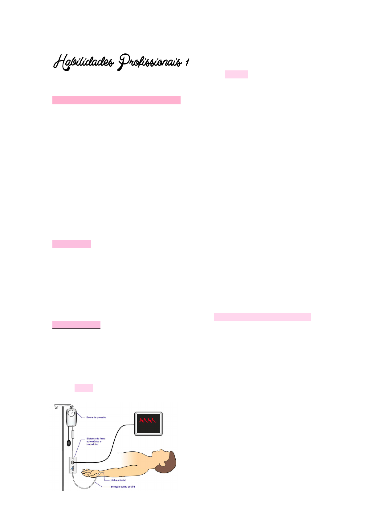 Bibliografia: Exame Clínico, Porto & Porto, 8ª Edição, Celmo Celeno Porto; – Porto e “Portinho” (versão menor). Higiene das Mãos e Sinais Vitais - SP1 Técnica para higienização das mãos: 1. Palmas 2. Dorso 3. Entre os dedos 4. Partes proximais, mediais e distais dos dedos 5. Polegares 6. Pontas dos dedos e unhas 7. Pulsos 8. Enxaguar em direção ao cotovelo Link de vídeo mostrando o passo a passo: https://youtu.be/ErLIEZuP_4g Sinais Vitais – Quais são os sinais vitais? ● Pressão Arterial ● Frequência Cardíaca ● Frequência Respiratória ● Temperatura Corporal ● Saturação de Oxigênio - Oximetria de pulso Pressão Arterial Pressão arterial é a força exercida pelo sangue sobre as paredes dos vasos; ↪ medida em mmHg Métodos: - Direto: Intra-arterial – PA invasiva - Indireto – PA não invasiva Esfigmomanômetro e Estetoscópio Método Auscultatório - Método Palpatório Pressão arterial – pressão sistólica (sístole) e pressão diastólica (diástole) ➔ A pressão arterial sofre influências: ◆ Posição do indivíduo (deitado, sentado ou de pé) ● Posição deitado → níveis pressóricos mais elevados ◆ Atividades diárias (refeições, atividade física e sexual, trabalho, estresse) ◆ Ritmo circadiano (vigília x sono) ● Descenso noturno (sono) – queda fisiológica em torno de 10% ● Elevação fisiológica nas primeiras horas da manhã (ao despertar/acordar) ➢ PA NORMAL: 120/80 mmHg - Hipotensão Arterial = PA < 90x60 mmHg (*bradicardia) - Hipotensão Postural ou Ortostática - Variação PAS (pressão arterial sistólica) 20 mmHg e/ou; - Variação PAD (pressão arterial diastólica) 10 mmHg. - Hipertensão Arterial = PA ≥ 140x90 mmHg Preparação para aferição da PA: ● O paciente deve estar tranquilo e relaxado sentado na cadeira, encostando o dorso na cadeira e com os pés no chão, por no mínimo 5 minutos ● Sem cafeína, bebida alcóolica, cigarro e atividade física ● Sem vontade alguma de ir ao banheiro ● Não se deve falar ● Remover todas as roupas do local ● Aparelho deve ser adequado para o braço do paciente, nem muito grande (subestima a medida) nem muito pequeno (superestima em até 30/10 mmHg, por exemplo: PA real 130x80 mmHg → PA inadequadamente estimada em até 160x90 mmHg) Semiotécnica 1. Explicar o procedimento ao paciente, solicitando que não fale durante o procedimento 2. Remover roupas do braço no qual será colocado o manguito. Posicionar o braço na altura do coração (nível do ponto médio do esterno = 4º espaço intercostal), apoiado, com a palma da mão voltada para cima e o cotovelo ligeiramente fletido 3. Colocar o manguito, sem deixar folgas, 2-3 cm acima da fossa cubital 4. Centralizar o manguito sobre a artéria braquial Método palpatório: 5. Estimar o nível de pressão sistólica – palpar o pulso radial inflar o manguito até seu desaparecimento 6. Desinflar rapidamente e aguardar 1 minuto antes da medida Método auscultatório: 7. Palpar a artéria braquial na fossa cubital (achar pelo tendão do músculo bíceps da fossa braquial). Posicionar a campânula/diafragma do estetoscópio sobre a artéria 8. Inflar o manguito 20 a 30 mmHg acima do nível estimado da pressão sistólica (visto no método palpatório acima) 9. Deflação lenta do manguito (velocidade de 2 a 4 mmHg/s) ➔ Primeiro som: sistólica – fase 1 de Korotkoff (fluxo sanguíneo voltando para dentro do vaso) 10. Aumentar a velocidade da deflação para 5 a 6 mmHg para evitar a congestão venosa e desconforto para o paciente ➔ Último som: diastólica – fase 5 de Korotkoff (desaparece som) * Esfigmo precisa estar calibrado! (normalmente, a cada um ano) ⚠ 11. Auscultar 20 a 30 mmHg abaixo do último som para confirmar seu desaparecimento e depois proceder à deflação rápida e completa 12. Repetição das medidas - Desinsuflar completamente o manguito e aguardar 1-3 minutos. Como informar e documentar: ● Avisar o paciente sobre os valores ● Escrever no prontuário: PA (valor/valor) mmHG MSE ou MSD (membro superior esquerdo/direito) * Fases de Korotkoff: - Resultado do fluxo turbulento na artéria; - Insuflação do manguito = colabamento da artéria; Desinsuflação do manguito = retorno da passagem do sangue pela artéria antes colabada → Fluxo turbulento → Ruídos → Sons de Korotkoff → Classificados em 5 fases; - Nos casos em que os ruídos persistirem até o total esvaziamento da câmara ↪ Considerar a pressão diastólica a fase IV de Korotkoff (abafamento dos sons); - Registrar valores: 150 × 70 × 0 mmHg; Hiato Auscultatório Trata -se do desaparecimento dos sons, durante a última parte da fase I e na fase II; - Pode cobrir uma faixa de 30 a 40 mmHg; - Subestimar o nível da PAS ou superestimar o nível da PAD; ⚠ Como evitá-lo? Realizar sempre o método palpatório antes do auscultatório!!! → Fonte comum de erro na medida da pressão arterial, principalmente em idosos! Frequência Cardíaca Métodos: - Ausculta Cardíaca - Frequência de Pulso ● Frequência de pulso é uma medida indireta da frequência cardíaca! - Análise do Pulso Arterial Radial - Alternativas: Pulso Carotídeo ou Pulso Femoral Características: Frequência, Amplitude, Ritmo; Frequência cardíaca e de pulso frequência: 1 minuto ● Normal: 60 - 100 bpm (normocardio) ● Bradicardia: < 60 bpm ● Taquicardia: > 100 bpm (normocárdico, bradicárdico, taquicárdico) Ritmo: 1 minuto ● Regular ou irregular(= arritmia cardíaca) ● Cuidados: fibrilação atrial e extrassistolia – podem gerar déficit de pulso → batimentos não conduzidos até o pulso periférico (número de pulsações menor que a frequência cardíaca) Amplitude: ● Cheio x filiforme Frequência Respiratória Contagem de ventilações: - Utilizar a inspiração - Paciente não pode perceber - Visualização do tórax ou do abdômen Unidade: Incursões (respiratórias) por minuto (ipm) Características: ↱consider