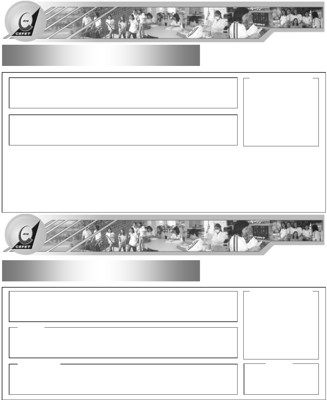 TÉCNICO ADMINISTRATIVOCONCURSO PÚBLICO Reservado ao CEFET-RN ELETRICISTA 21/MAIO/2006 Use apenas caneta esferográfica azul ou preta. Escreva o seu nome e o número do seu CPF no espaço indicado nesta folha. Confira, com máxima atenção, a prova, observando se há defeito(s) de encadernação e/ou impressão que venha(m) dificultar a sua leitura. Em havendo falhas, dirija-se ao fiscal responsável dentro do prazo destinado previamente. Assine esta folha e o seu cartão de respostas. A prova terá duração máxima de quatro horas. Boa sorte! Reservado ao CEFET-RN ELETRICISTA _ _ _._ _ _._ _ _-_ _ CPF Nome Assinatura TÉCNICO ADMINISTRATIVOCONCURSO PÚBLICO CONCURSO PÚBLICO – ELETRICISTA EDITAL 02/2006/GDRH/CEFET-RN 1 1. A corrente elétrica em um fio de cobre é formada a) por um fluxo de elétrons livres e seu sentido real é do terminal com falta de elétrons (terminal positivo) para o terminal com excesso de elétrons (terminal negativo), enquanto o sentido convencional da corrente elétrica é do terminal negativo para o terminal positivo. b) por um fluxo de elétrons livres e seu sentido real é do terminal com excesso de elétrons (terminal positivo) para o terminal com falta de elétrons (terminal negativo), enquanto o sentido convencional da corrente elétrica é do terminal negativo para o terminal positivo. c) por um fluxo de elétrons livres e seu sentido real é do terminal com falta de elétrons (terminal negativo) para o terminal com excesso de elétrons (terminal positivo), enquanto o sentido convencional da corrente elétrica é do terminal positivo para o terminal negativo. d) por um fluxo de elétrons livres e seu sentido real é do terminal com excesso de elétrons (terminal negativo) para o terminal com falta de elétrons (terminal positivo), enquanto o sentido convencional da corrente elétrica é do terminal positivo para o terminal negativo. 2. São materiais isolantes: a) a mica e a prata. b) a madeira e a porcelana. c) o vidro e o mercúrio. d) a borracha e o ferro. 3. Certos cristais, como o quartzo, os sais de Rochelle e a turmalina ficam com átomos ionizados, quando são submetidos a pressões mecânicas. Trata-se do fenômeno conhecido como: a) fotoeletricidade. b) termoeletricidade. c) piezoeletricidade. d) eletrização por indução. 4. A corrente elétrica que passará pelo filamento de uma lâmpada cuja resistência é de 20 Ω, se ela for ligada aos terminais de um gerador de 220V, é de: a) 11 A. b) 11 1 A. c) 11 A. d) 112 A. 5. Em uma lâmpada de 100W, se aplicarmos uma tensão contínua de 220V, a corrente elétrica pelo filamento da lâmpada será de: a) 11 5 A. b) 5 11 A. c) 55 A. d) 5,5 A. 6. A resistência elétrica de um fio é a) inversamente proporcional ao seu comprimento, diretamente proporcional à área de sua secção reta e depende do material que constitui o fio. b) diretamente proporcional ao seu comprimento, inversamente proporcional à área de sua secção reta e depende do material que constitui o fio. c) diretamente proporcional ao seu comprimento e à área de sua secção reta e depende do material que constitui o fio. d) inversamente proporcional ao seu comprimento e à área de sua secção reta e depende do material que constitui o fio. 7. Em uma linha de transmissão de energia elétrica, a tensão é elevada para que a) a corrente elétrica seja alta e as perdas por efeito Joule sejam baixas. b) a corrente elétrica seja baixa e as perdas por efeito Joule sejam altas. c) a corrente elétrica e as perdas por efeito Joule sejam baixas. d) a corrente elétrica e as perdas por efeito Joule sejam altas. 8. As tensões de contato são mais perigosas entre mãos e pés. Se estivermos apoiados na terra e tocarmos com as mãos em partes energizadas, então circulará uma corrente através das artérias e veias do corpo e, desta forma, esta corrente passará pelo coração. Em tal caso, 30 mA já são perigosos. Assim, para crianças em que a resistência do corpo é de cerca de 2kΩ, uma tensão entre mãos e pés é considerada perigosa a partir de: a) 30V. b) 110V. c) 60V. d) 220V. CONCURSO PÚBLICO – ELETRICISTA EDITAL 02/2006/GDRH/CEFET-RN 2 9. No circuito a seguir, a resistência equivalente entre os pontos A e B é de: a) 250 Ω. b) 400 Ω. c) 300 Ω. d) 200 Ω. 10. Uma bateria de automóvel apresenta, sem carga, uma tensão entre seus bornes de 12V. Suponha que a resistência interna dessa bateria é de 0,4 Ω. Qual deve ser o valor da tensão nos bornes dessa bateria quando ela está conectada a uma carga que solicita uma corrente de 6 A? a) 12 V. b) 14,4 V. c) 2,4 V. d) 9,6 V. 11. No pátio de obras de uma construção, verificou-se que no alojamento dos pedreiros e serventes, que ficava afastado da linha de distribuição, as lâmpadas estavam acendendo muito fracas. A solução mais adequada para corrigir esse problema é: a) mudar o alojamento para uma posição mais distante da linha de distribuição. b) substituir a fiação que leva a energia elétrica ao alojamento por fios com maior resistividade. c) colocar as lâmpadas em série. d) substituir a fiação que leva a energia elétrica ao alojamento por fios do mesmo material, mas com maior bitola (secção reta). 12. Um gerador elétrico exige uma potência mecânica de 5 HP (1 HP corresponde a 746W) para fornecer 3200 W de energia elétrica. O rendimento deste gerador é de aproximadamente: a) 80%. b) 75%. c) 85%. d) 70%. 13. A ponte de Wheatstone (figura abaixo) é usada para a medição de uma resistência desconhecida X quando está em equilíbrio, ou seja, quando o galvanômetro G indica corrente elétrica nula. No circuito elétrico abaixo, em que a ponte de Wheatstone está em equilíbrio, o valor da resistência X é de: a) 40 Ω. b) 50 Ω. c) 70 Ω. d) 90 Ω. 14. Para a medição da voltagem e da corrente em uma carga elétrica, utilizamos um voltímetro e um amperímetro, respectivamente. As principais características desses equipamentos e as 