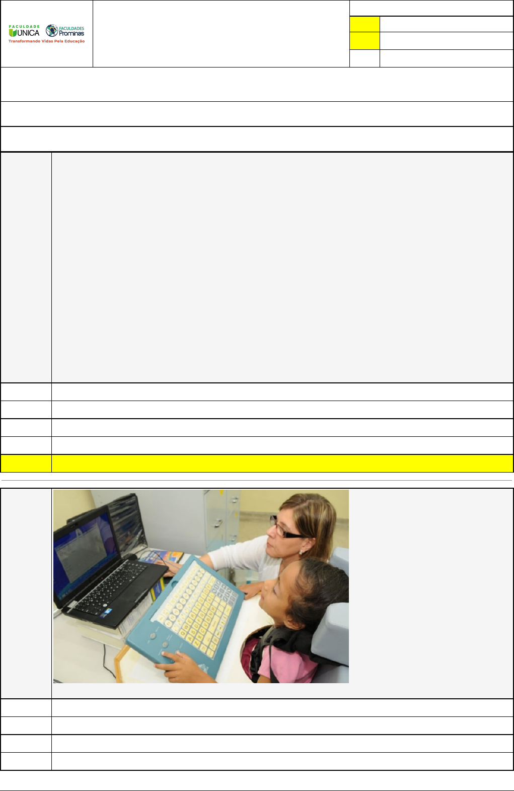 Pincel Atômico - 26/12/2022 18:51:49 1/3 Exercício Caminho do Conhecimento - Etapa 30 (18421) Atividade finalizada em 26/12/2022 18:42:22 (635417 / 1) LEGENDA Resposta correta na questão # Resposta correta - Questão Anulada X Resposta selecionada pelo Aluno Disciplina: PRÁTICA PEDAGÓGICA INTERDISCIPLINAR: ATENDIMENTO EDUCACIONAL ESPECIALIZADO NA SALA DE RECURSOS MULTIFUNCIONAIS [779746] - Avaliação com 8 questões, com o peso total de 1,11 pontos [capítulos - 3] Turma: Segunda Graduação: Segunda Graduação 6 Meses - Licenciatura em Educação Especial - Grupo: FPD-FEV2022 - SGegu0A181222 [80112] Aluno(a): 91386855 - JARDIEL JOSÉ DE LIMA - Respondeu 2 questões corretas, obtendo um total de 0,28 pontos como nota [357827_1369 04] Questão 001 Sobre os recursos para a aprendizagem de alunos com surdocegueira e deficiências múltiplas, relacione a segunda coluna de acordo com a primeira. (1) Objetos de referência. (2) objetos de referência das atividades. (3) caixas de antecipação. (4) Calendários. ( ) São objetos que têm significados especiais, os quais têm a função de substituir a palavra e, assim, podem representar pessoas, objetos, lugares, atividades ou conceitos associados a eles. ( ) Instrumentos úteis no desenvolvimento da comunicação, no ensino de conceitos temporais abstratos e na ampliação do vocabulário. ( ) Devem ser utilizadas com crianças que ainda não têm nenhum sistema formal de comunicação. ( ) Permitem conhecer os primeiros objetos de referência que anteciparão as atividades e o conhecimento das primeiras palavras. Representam e antecipam as atividades do dia. X 1, 2, 3, 4. 3, 4, 2, 1. 1, 2, 4, 3. 4, 3, 2, 1. 1, 4, 3, 2. [357827_1016 96] Questão 002 A imagem retrata o uso de Nenhuma das alternativas. Tecnologia X Informática Tecnologia aplicada a informática Pincel Atômico - 26/12/2022 18:51:49 2/3 Tecnologia Assistiva [357828_1016 97] Questão 003 Avalie as afirmações a seguir. I. O DUA propõe metodologias, estratégas alternativas e eficazes que respondem às necessidades dos estudantes II. A cultura de aprendizagem com base na diversidade das pessoas envolvidas no processo de ensino aprendizagem, motivam os alunos a aprender e demonstrar o conhecimento apreendido. III O DUA apresenta os progressos realizados pela tecnologia e metologias individualizadas. É CORRETO apenas o que se afirma em I, III. X II, III. I e II. III. I, II, III. [357829_1017 00] Questão 004 Avalie as asserções a seguir e a relação proposta entre elas. I. o desenho universal trasnforma as práticas e excludentes em inlusivas, PORQUE II. o sujeito passa a ter direito sobre suas ações e constrói sua autonomia ecidadania, por meio da equidade em oportunidades. As asserções I e II são proposições falsas. X As asserções I e II são proposições verdadeiras, e II é uma justificativa correta da I. A asserção I é uma proposição falsa, e a II é uma proposição verdadeira. A asserção I é uma proposição verdadeira, e a II é uma proposição falsa. As asserções I e II são proposições verdadeiras, mas a II não é uma justificativa correta da I. [357828_1016 98] Questão 005 Avalie as afirmações a seguir: I. Ensinar na diversidade requer que os professores promovam um clima de aprendizado em sala de aula e planejem atividades que permitam que todas as crianças se sintam seguras, respeitadas e valorizadas pelo que elas têm a contribuir. II. Tecnologia educacional e diversidade, destaca-se o papel positivo desempenhado pelas ferramentas tecnológicas para atender às necessidades dos alunos. III. Tecnologia assistiva, realiza adaptações para pessoas com deficiências sensoriais, cognitivas e físicas através de software, dispositivos, recursos. É CORRETO apenas o que se afirma em X I e II. II, III. I, II, III. III. I, III. Pincel Atômico - 26/12/2022 18:51:49 3/3 [357827_1369 01] Questão 006 (IDECAN - 2019 - IF-PB - Professor EBTT - Matemática) A Matemática inclusiva, de acordo com a Política Nacional de Educação Especial na Perspectiva da Educação Inclusiva considera que a educação inclusiva é uma ação política, cultural, social e pedagógica, desencadeada em defesa do direito de todos os alunos de estarem juntos, aprendendo e participando. Nesse sentido, o Atendimento Educativo Especializado (AEE), previsto na referida política, tem como uma de suas características: o Atendimento Educativo Especializado seja ofertado somente em escolas específicas para crianças com deficiências. as crianças com necessidades educativas especiais sejam incluídas apenas em institutos de atendimentos especiais. X o atendimento educacional especializado tem como função identificar, elaborar e organizar recursos pedagógicos e de acessibilidade que eliminem as barreiras para a plena participação dos alunos, considerando suas necessidades específicas. a escolarização da pessoa com necessidades educacionais especiais na educação básica, com prioridade. o atendimento preferencial em escolas especiais. [357828_1016 99] Questão 007 Avalie as afirmações a seguir: I. Por meio da tecnologia, os materiais de aprendizagem podem ser instantaneamente transformados em formatos mais apropriados para cada aluno individualmente. II. A tecnologia aplicada à educação e a tecnologia assistiva, somadas aos princípios do DUA, permitem uma personalização mais fácil e eficiente do currículo dos alunos, reduzindo barreiras. III.O DUA não permite a personalização das práticas pedagógicas. É CORRETO apenas o que se afirma em I, II, III. X II, III. III. I e II. I, III. [357827_1369 05] Questão 008 Sobre o atendimento educacional especializado de estudantes com deficiência intelectual, assinale a alternativa correta. A gestão dos processos de aprendizagem consiste na organização de situações de aprendizagem nos diferentes espaços acadêmicos, como salas de recurso multifuncional e sala de aula regular. O professor especi