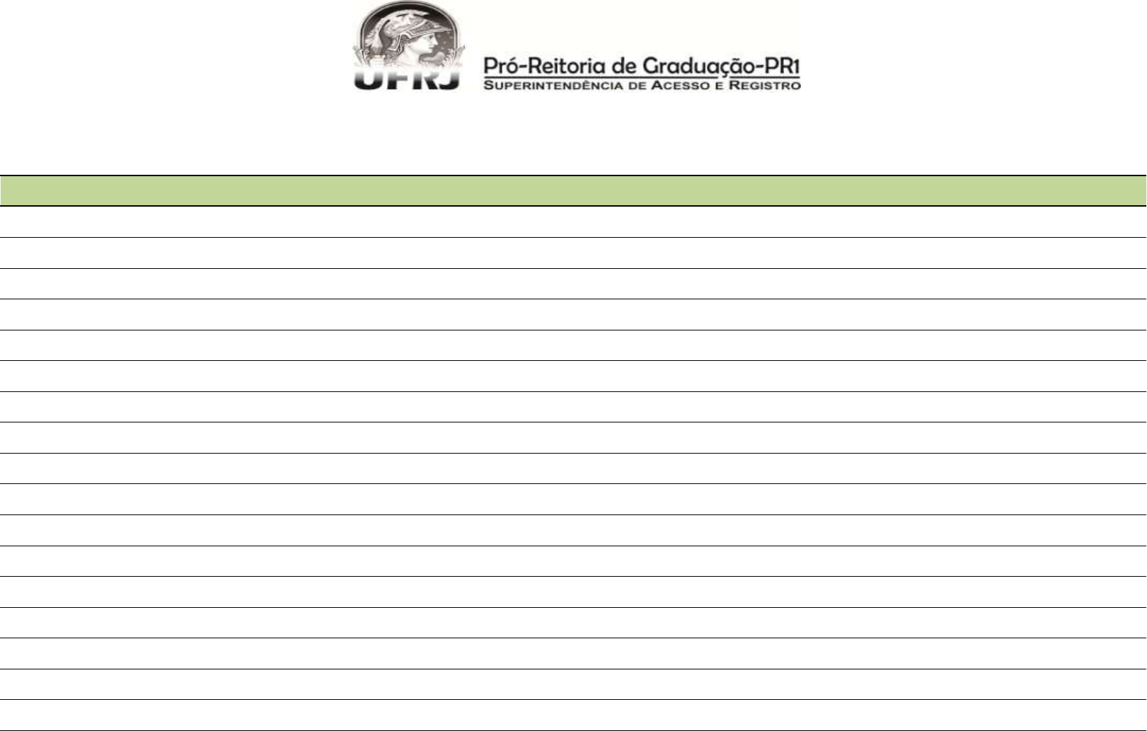 CURSO FORMAÇÃO CAMPUS TURNO NOME INSCRIÇÃO ENEM NOTA MODALIDADE (ver legenda) POSIÇÃO ABI - CIÊNCIAS BIOLÓGICAS Área Básica de Ingresso (ABI) Cidade Universitária Integral MAYRA VITORIA SANTOS GAMA 211018977754 488.84 2 1 ABI - CIÊNCIAS BIOLÓGICAS Área Básica de Ingresso (ABI) Cidade Universitária Integral KARLA PRISCILA DOS SANTOS COSTA 211010824475 434.52 2 2 ABI - CIÊNCIAS BIOLÓGICAS Área Básica de Ingresso (ABI) Cidade Universitária Integral MANUELLE DOS SANTOS SILVA 211015094710 563.48 4 1 ABI - CIÊNCIAS BIOLÓGICAS Área Básica de Ingresso (ABI) Cidade Universitária Integral ERICA STEPHANNIE SANTOS DA CONCEICAO 211011060194 544.04 4 2 ABI - CIÊNCIAS BIOLÓGICAS Área Básica de Ingresso (ABI) Cidade Universitária Integral NATALIA BIANCA SANTOS PEREIRA 211007253787 539.48 4 3 ABI - CIÊNCIAS BIOLÓGICAS Área Básica de Ingresso (ABI) Cidade Universitária Integral REBECA AMARAL SILVA 211008452776 535.17 4 4 ABI - CIÊNCIAS BIOLÓGICAS Área Básica de Ingresso (ABI) Cidade Universitária Integral GIULIA ESTER DA SILVA MARCHESANO 215001146905 527.93 4 5 ABI - CIÊNCIAS BIOLÓGICAS Área Básica de Ingresso (ABI) Cidade Universitária Integral GIULIA VITORIA LOUREIRO PIMENTEL BARBOZA 211004052851 505.23 4 6 ABI - CIÊNCIAS BIOLÓGICAS Área Básica de Ingresso (ABI) Cidade Universitária Integral TALITA ABRANTES DA SILVA 215000805733 500.79 4 7 ABI - CIÊNCIAS BIOLÓGICAS Área Básica de Ingresso (ABI) Cidade Universitária Integral THAIS DE ARAUJO MONTEIRO 211021088961 411.46 4 8 ABI - CIÊNCIAS BIOLÓGICAS Área Básica de Ingresso (ABI) Cidade Universitária Integral ANNA CLARA MAIZA DELFINA CORREA DE ANDRADE 211033985279 492.89 6 1 ABI - CIÊNCIAS BIOLÓGICAS Área Básica de Ingresso (ABI) Cidade Universitária Integral PEDRO HENRIQUE PEREIRA OLIVEIRA DA SILVA 211032917216 488.67 6 2 ABI - CIÊNCIAS BIOLÓGICAS Área Básica de Ingresso (ABI) Cidade Universitária Integral ADNA BATISTA DE JESUS MACHADO 211014436805 481.56 6 3 ABI - CIÊNCIAS BIOLÓGICAS Área Básica de Ingresso (ABI) Cidade Universitária Integral LARISSA TUANY SANTOS CAMPOS 211001347783 424.93 6 4 ABI - CIÊNCIAS BIOLÓGICAS Área Básica de Ingresso (ABI) Cidade Universitária Integral CAROLINA MARTINS DOS SANTOS 211000209216 560.89 8 1 ABI - CIÊNCIAS BIOLÓGICAS Área Básica de Ingresso (ABI) Cidade Universitária Integral AGNNYS LAYNE VICTORIA SANTOS SILVA 211007568861 548.03 8 2 ABI - CIÊNCIAS BIOLÓGICAS Área Básica de Ingresso (ABI) Cidade Universitária Integral GIULIA FERNANDES DE SENA 211029697177 533.93 8 3 CANDIDATOS QUE RESTARAM AGUARDANDO VAGA APÓS A QUARTA CHAMADA DA LISTA DE ESPERA CONCURSO SISU/MEC - EDIÇÃO 2022/2 Página: 1 / 252 Preparado por Superintendência de Acesso e Registro - SuperAR/PR-1/UFRJ em 14/09/2022. CURSO FORMAÇÃO CAMPUS TURNO NOME INSCRIÇÃO ENEM NOTA MODALIDADE (ver legenda) POSIÇÃO CANDIDATOS QUE RESTARAM AGUARDANDO VAGA APÓS A QUARTA CHAMADA DA LISTA DE ESPERA CONCURSO SISU/MEC - EDIÇÃO 2022/2 ABI - CIÊNCIAS BIOLÓGICAS Área Básica de Ingresso (ABI) Cidade Universitária Integral JOAO PEDRO RAMOS COSTA 211033989396 505.56 8 4 ABI - CIÊNCIAS BIOLÓGICAS Área Básica de Ingresso (ABI) Cidade Universitária Integral JULIANE NASCIMENTO DA COSTA 211006634623 502.35 8 5 ABI - CIÊNCIAS BIOLÓGICAS Área Básica de Ingresso (ABI) Cidade Universitária Integral GISELLE VIANNA DE MOURA 211011338798 659.95 9 1 ABI - CIÊNCIAS BIOLÓGICAS Área Básica de Ingresso (ABI) Cidade Universitária Integral LUIZA GUEDES DAS CHAGAS ASSUMPCAO 211019525453 658.98 9 2 ABI - CIÊNCIAS BIOLÓGICAS Área Básica de Ingresso (ABI) Cidade Universitária Integral VERONICA ROSA LOPES ARAGAO 211012081686 658.53 9 3 ABI - CIÊNCIAS BIOLÓGICAS Área Básica de Ingresso (ABI) Cidade Universitária Integral CAROLINA RODRIGUES PASQUIN 211015252748 658.43 9 4 ABI - CIÊNCIAS BIOLÓGICAS Área Básica de Ingresso (ABI) Cidade Universitária Integral KAMILE FRANKLIN LOPES DE MIRANDA 211012794130 653.43 9 5 ABI - CIÊNCIAS BIOLÓGICAS Área Básica de Ingresso (ABI) Cidade Universitária Integral ALEC JUSTINIANO PEREIRA GOMES LEMOS 211010236712 647.4 9 6 ABI - CIÊNCIAS BIOLÓGICAS Área Básica de Ingresso (ABI) Cidade Universitária Integral LUCAS QUIREZA CAMPOS MORGADO 211007433942 640.38 9 7 ABI - CIÊNCIAS BIOLÓGICAS Área Básica de Ingresso (ABI) Cidade Universitária Integral JOANA LIBERATO TENDA LEITE 211001714784 638.13 9 8 ABI - CIÊNCIAS BIOLÓGICAS Área Básica de Ingresso (ABI) Cidade Universitária Integral LAURA MARTINS FELIX 211021313674 628.62 9 9 ABI - CIÊNCIAS BIOLÓGICAS Área Básica de Ingresso (ABI) Cidade Universitária Integral RODRYGO ADRIANO DA COSTA NUNES BARBOSA 211040722830 620.52 9 10 ABI - CIÊNCIAS BIOLÓGICAS Área Básica de Ingresso (ABI) Cidade Universitária Integral MAYSA D AGRELA ROCHA 211019780140 617.56 9 11 ABI - CIÊNCIAS BIOLÓGICAS Área Básica de Ingresso (ABI) Cidade Universitária Integral YASMIN VITORIA HORACIO DA COSTA 211012516756 614.91 9 12 ABI - CIÊNCIAS BIOLÓGICAS Área Básica de Ingresso (ABI) Cidade Universitária Integral LUANA GONCALVES DA SILVA 211021568269 611.87 9 13 ABI - CIÊNCIAS BIOLÓGICAS Área Básica de Ingresso (ABI) Cidade Universitária Integral MARCELLE MACIEL DE ARAUJO BARBOSA 211039429561 610.32 9 14 ABI - CIÊNCIAS BIOLÓGICAS Área Básica de Ingresso (ABI) Cidade Universitária Integral JOYCE CAROLINE AMARO SOARES 211008453105 598.97 9 15 Página: 2 / 252 Preparado por Superintendência de Acesso e Registro - SuperAR/PR-1/UFRJ em 14/09/2022. CURSO FORMAÇÃO CAMPUS TURNO NOME INSCRIÇÃO ENEM NOTA MODALIDADE (ver legenda) POSIÇÃO CANDIDATOS QUE RESTARAM AGUARDANDO VAGA APÓS A QUARTA CHAMADA DA LISTA DE ESPERA CONCURSO SISU/MEC - EDIÇÃO 2022/2 ABI - CIÊNCIAS BIOLÓGICAS Área Básica de Ingresso (ABI) Cidade Universitária Integral LETICIA MACIEL GOULART VIEIRA 211034343890 585.7 9 16 ABI - CIÊNCIAS BIOLÓGICAS Área Básica de Ingresso (ABI) Cidade Universitária Integr