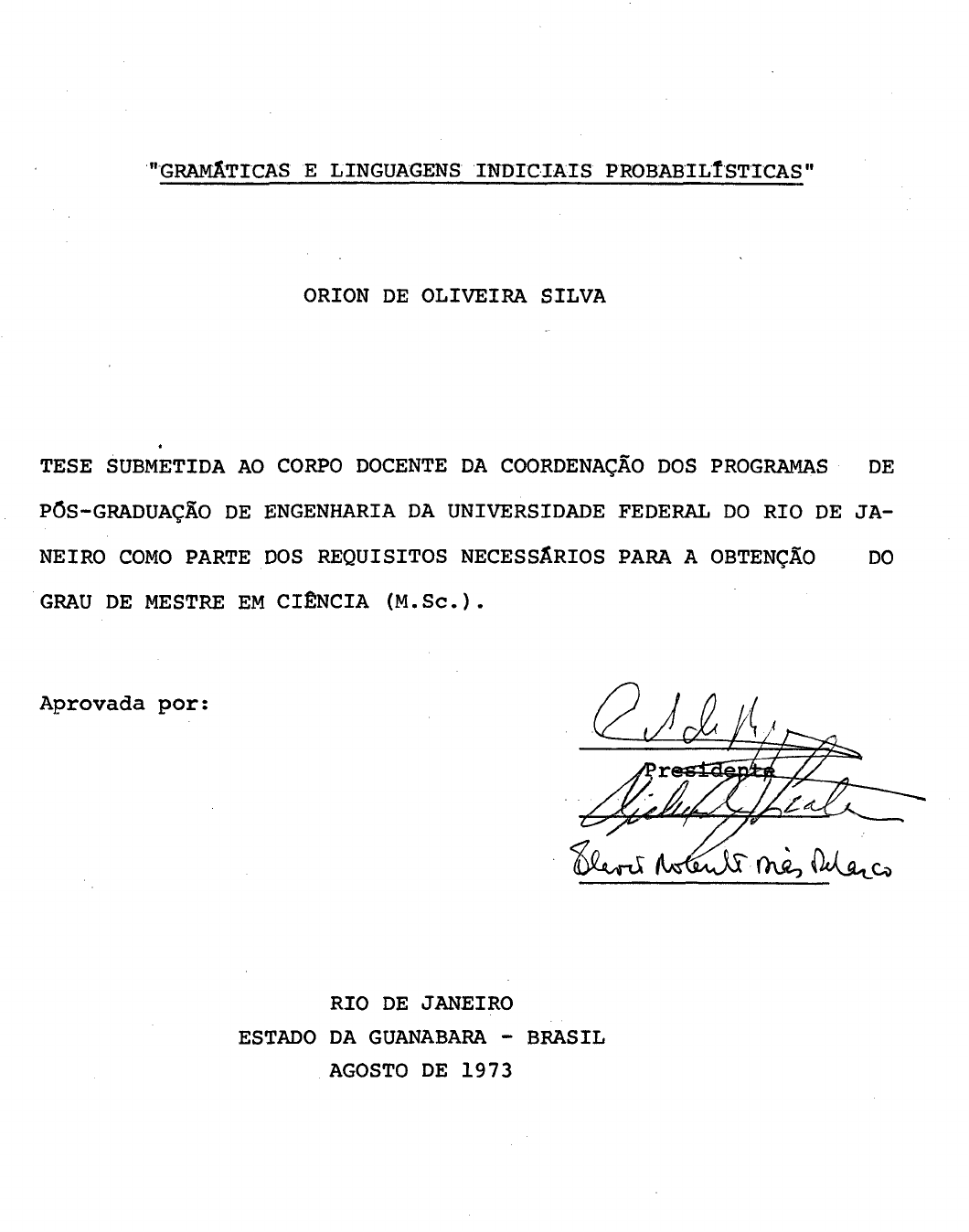 TESE SUBMETIDA AO CORPO DOCENTE DA COORDENAÇÃO DOS PROGRAMAS DE