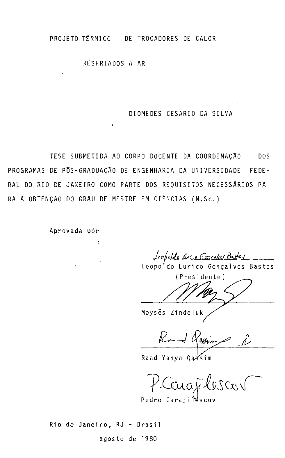 PROJETO TtRMICO DE TROCADORES DE CALOR RESFRIADOS A AR DIOMEDES CESARIO DA SILVA TESE SUBMETIDA AO CORPO DOCENTE DA COORDENAÇAO DOS PROGRAMAS DE PÕS-GRADUAÇAO DE ENGENHARIA DA UNIVERSIDADE FEDE- RAL DO RIO DE JANEIRO COMO PARTE DOS REQUISITOS NECESSARIOS PA- RA A OBTENÇAO DO GRAU DE MESTRE EM CitNCIAS (M.Sc.) Aprovada por Leopofdo Eurico Gonçalves Bastos Moyses Zindeluk Pedro Caraj i ,< Rio de Janeiro, RJ - Brasil agosto de 1980 i i SILVA, DIOMEDES CES~RIO DA Projeto Térmico Ar (Rio de Janeiro) 1980. de Trocadores de Calor Resfriados a xi, 86p. 29,7 cm (COPPE-UFRJ), M.Sc. Engenharia Mecânica, 1980) Tese - Universidade Federal do Rio de Janeiro. Facul- dade de Engenharia l. Assunto!. COPPE/UFRJ II. Titulo (Sêrie) i ; i Dedicatõria "A Lígia e Lia a meus pais, João e Mafalda i V Agradecimentos Ao professor Leopoldo pelo estimulo na preparaçao deste trabalho. A PETROBRAS onde os conhecimentos que possibili- taram esta tese foram, no dia a dia,adquiridos. V RESUMO A escassez e os custos de tratamento de ãgua de res- friamento, em industrias de petróleo e petroquimica, tem levado ã utilização crescente dos trocadores de calor resfriados a ar. No projeto destes equipamentos sao comumente utiliza- dos os métodos estimativo e global de cãlculo. Neste trabalho sao mostrados os métodos existentes e é apresentado o método pa~ so-a-passo que considera o feixe tubular dividido em pequenos s~ gmentos e, utilizando os recursos de computação, efetua os cál- culos partindo das temperaturas de saida do fluido de trabalho e de entrada do ar e das dimensões do equipamento. O método passo-a-passo é mais rigoroso e permite con- siderar nos cálculos diversos fatores como velocidades não uni- formes de ar na entrada do feixe, variações das propriedades ff sicas do fluidos com a temperatura e mudança do regime de escoa mento do fluido no interior dos tubos. Para os equipamentos examinados, operando com vãrios fluidos de trabalho como óleo pobre, gasóleo leve, nafta leve, querosene, verificou-se que para aqueles cujas propriedades fi- vi sicas variavam sensivelmente com a temperatura, notadamente a viscosidade, os resultados obtidos pelos dois mêtodos apresen- tam diferenças sensíveis. Tais discrepâncias são ainda maiores se for usado um perfil de velocidade de ar não uniforme. Em situações onde o fluido de processo apresenta um regime de escoamento variãvel, foram obtidas diferenças razoã- veis na quantidade de calor trocado. Para a ãgua, os valores dos dois métodos sao aproxim~ damente iguais, mesmo para perfis nao uniformes de velocidades de ar. O método passo-a-passo é mais preciso e possibilita uma visualização da troca térmica e da perda de carga ao longo do feixe tubular sendo assim um poderoso instrumental para o projeto e anãlise do desempenho de trocadores resfriados a ar. Vi i Abstract The scarcity and the treatment costs of the water cooling, in the petroleum and petrochemical industries, are increasing the use of the air cooled heat exchangers. Exchangers designing usualy utilize the estimate and global methods. This paper shows these methods and presents a new approach for this design, called "stepping method'', which consi der the tube bundl e di vi ded i n small segments and uti li zi ng the computer recourses, excutes the calculations starting from the exit process fluid temperature, inlet air temperature and equipment dimensions. The stepping method is more rigorous and permits to consider in the calculations the nonuniformities in the facial air velocities, ~hysical properties variations with temperature and change in tube side flow. ln the equipments analysed, operating with various fluids like pioor oil,light gasoil, light naphta, kerosene, are verified that the fluids whose properties change greatly with the temperature specially the viscosity the results obtained by viii the two methods present great differences. This discreppance is still greater if a nonuniform air velocity distribution is used. In situations where the process fluid presents a variation in the pattern flow the duties difference is also considerable. The results obtained are practically equals, when the fluid is water, even for nonuniform air distribution. The stepping method is more rigorous and make possible a visualization of the heat transfer and pressure drop along tube bundle, being then a powerful method for the designing and performance analysis of the air cooled heat exchangers. i X TNDICE I - Introdução I. l Generalidades Sobre os Trocadores de Calor Resfria dosa Ar .................................. . I. 2 Descrição do Equipamento .................. . 4 II - Metodologia de Cãlculo II.1 Apresentação do Problema .................... 7 II.2 Método Estimativo ........................... io II.3 Método Global ............................... 15 II-3.1 Transferência de Calor ............... 16 II-3.2 Perda de Carga ...................... 18 Il.3.2.1 Perda de Carga no Interior dos Tubos ..................... 18 II.3.2.2 Perda de Carga no Lado do Ar . . . . . . . . . . . . . . . . . . . . . . . . . l 8 II.4 Método Passo-a-Passo II.4.1 Introdução ........................... 20 II.4.2 Balanço da Perda de Carga no Interior dos T~ bos em Gada Passe . . . . . . . . . . . . . . . . . . . . . . . 30 I I I X Cálculo dos Coeficientes de Transferência de Calor e Perdas de Carga Ill. l Introdução ................................... 35 III.2 O Coeficiente de Transferência de Calor no Inte- ri ar dos Tubos ............................... 36 III.3 A Perda de Carga no Interior dos Tubos ....... 39 III-3. l A Perda de Carga nos Bocais ......... 41 III-3.2 A Perda de Carga nos Retornos ....... 41 III.4 O Coeficiente de Transferência de Calor do Lado do A r . . . . . . . . . . . . . . . . . . . . . . . . . . . . . . . . . . . . . . . . . . . 4 3 III.5 A Perda de Carga do Lado do Ar ............... 45 IV Programas Computacionais IV.l Programa para Oimensionamento e S