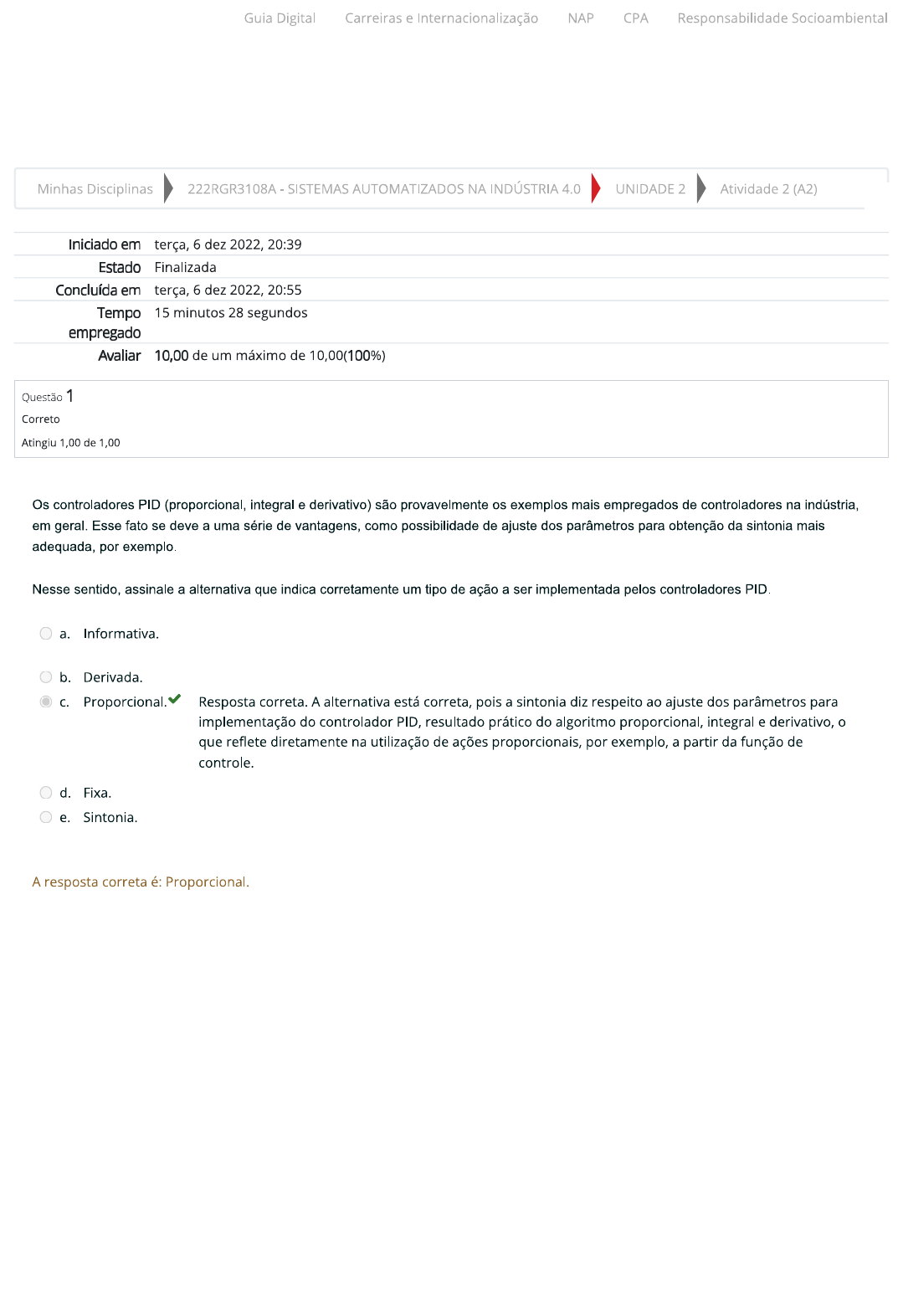 GRA1599 SISTEMAS AUTOMATIZADOS NA INDÚSTRIA 4 0 - ATIVIDADE A2