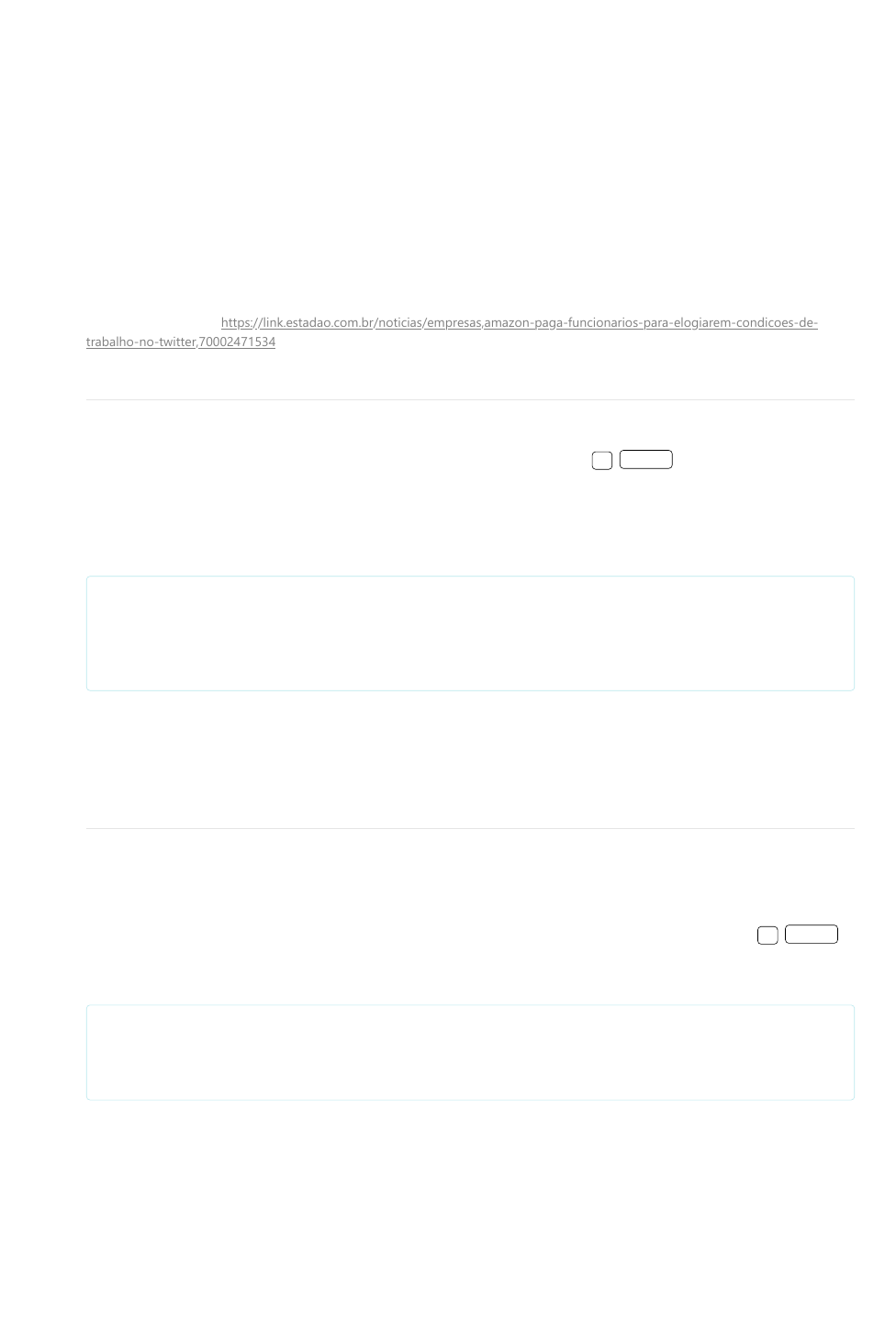 Gestão de comunicação e pessoas Professor(a): Daniela Atalla da Silva Ramos (Mestrado acadêmico) 1) 2) 3) Prepare-se! Chegou a hora de você testar o conhecimento adquirido nesta disciplina. A Avaliação Virtual (AV) é composta por questões objetivas e corresponde a 100% da média final. Você tem até cinco tentativas para “Enviar” as questões, que são automaticamente corrigidas. Você pode responder as questões consultando o material de estudos, mas lembre-se de cumprir o prazo estabelecido. Boa prova! Leia o trecho: “Algo estranho está acontecendo no Twitter: uma série de funcionários da Amazon estão publicando tweets dizendo que é muito bom trabalhar nos armazéns da empresa. Elogio gratuito? Robôs? O site TechCrunch revelou nesta sexta-feira, 24, que não é bem assim: existe um padrão entre as contas, e publicar os tweets faz parte do trabalho dos funcionários. Isso acontece ao mesmo tempo que a Amazon está na mira de críticas sobre a condição de trabalho em seus armazéns”. Fonte: Disponível em: <https://link.estadao.com.br/noticias/empresas,amazon-paga-funcionarios-para-elogiarem-condicoes-de- trabalho-no-twitter,70002471534>. Acesso em: 25 out. 2018. A partir da avaliação da situação acima, é correto afirmar que o gestor de RH deveria: Alternativas: Fazer uma pesquisa interna para identificar os motivos de insatisfação dos funcionários. CORRETO Premiar os funcionários que não fizeram críticas à empresa. Dar explicações ao Twitter. Atuar junto aos stakeholders para melhorar a imagem da empresa. Repreender os funcionários que fizeram críticas à empresa. Código da questão: 38981 Chamamos CPM - ou Método do Caminho Crítico – o método de programação de atividades de um projeto utilizando a duração dos mesmos. Por que ele é chamado de “crítico”? Alternativas: Porque mesmo calculando o prazo para conclusão das atividades elas podem atrasar. Porque mesmo calculando o prazo das atividades, ele não prevê folgas e se torna crítico para os colaboradores. Porque ele calcula o prazo máximo em que uma atividade das diversas mapeadas para o projeto pode ser concluída. CORRETO Porque ele calcula o prazo mínimo em que uma atividade das diversas mapeadas para o projeto pode ser concluída. Porque ele calcula o cronograma sem considerar a duração das atividades. Código da questão: 38982 “Um bom conhecimento do cenário político, econômico e social diante de uma organização também pode dizer muito em relação aos seus stakeholders e públicos. É neste ponto que se torna maior a visibilidade dos possíveis riscos e reações de públicos e stakeholders diante das decisões. Mas não se trata apenas disto. A comunicação constante com estes públicos e stakeholders pode ser decisiva no momento de mensurar riscos e, neste aspecto, se faz presente a função e importância das relações públicas no processo de gestão estratégica. Com base no trecho supracitado, selecione entre as alternativas abaixo aquelas que justificam pó rque a comunicação constante com os stakeholders é importante na gestão de projetos. Em seguida, assinale a alternativa correta: Resolução comentada: A empresa deveria identificar e corrigir, na medida do possível, os motivos de insatisfação. Reforços positivos sobre quem não reclama ou negativos sobre quem reclama só contribuiriam para mais críticas e descontentamento. Atuar com os stakeholders não evitaria novas críticas internas. Resolução comentada: A função do CPM é mostrar qual o prazo máximo de conclusão de cada atividade do projeto sem atrasar o conjunto de atividades. O “crítico” se refere ao mais tarde possível sem afetar o andamento do projeto como um todo. Cosmos · Cosmos https://kroton.platosedu.io/lms/m/aluno/disciplina/index/2693554/5058312 1 of 5 01/01/2023 17:04 https://link.estadao.com.br/noticias/empresas,amazon-paga-funcionarios-para-elogiarem-condicoes-de-trabalho-no-twitter,70002471534 https://link.estadao.com.br/noticias/empresas,amazon-paga-funcionarios-para-elogiarem-condicoes-de-trabalho-no-twitter,70002471534 https://link.estadao.com.br/noticias/empresas,amazon-paga-funcionarios-para-elogiarem-condicoes-de-trabalho-no-twitter,70002471534 https://link.estadao.com.br/noticias/empresas,amazon-paga-funcionarios-para-elogiarem-condicoes-de-trabalho-no-twitter,70002471534 4) 5) I. Porque pode ajudar a prever e minimizar crises. II. Porque os stakeholders influenciam as decisões das empresas e são influenciados por elas. III. Porque os stakeholders, ao se relacionarem com as empresas, deixam de criticá-las. IV. Porque as decisões são independentes da opinião dos stakeholders. V. Porque um problema de relacionamento com determinado público pode acarretar perdas financeiras e até o cancelamento de um projeto. Assinale a alternativa correta: Alternativas: Somente I está correta. As alternativas I e II estão corretas. As alternativas I, II e V estão corretas. CORRETO As alternativas III e V estão corretas. Somente IV está correta. Código da questão: 38949 Um banco privado aumentou a carga horária dos seus gerentes nas agências, mas sua Central de Atendimento por telefone recebeu várias reclamações sobre qualidade de atendimento. Além disso, a necessidade de recrutar novos gerentes aumentou, pois muitos estavam apresentando atestados de saúde e pedindo licença médica. O que a gestão de RH deveria fazer para elevar a satisfação dos clientes? Quais indicadores deveriam ser usados para reverter a situação? Alternativas: Índice de absenteísmo (IABs), Índice de turn-over (ITurn), pesquisa interna (motivação), pesquisa de satisfação com os clientes. CORRETO Índice de absenteísmo (IABs), pesquisa interna (motivação), Índice de treinamento (Itrein), cumprimento de prazos, cumprimento de orçamentos. Pesquisa interna (motivação), Índice de treinamento (Itrein), cumprimento de prazos, cumprimento de orçamentos. Pesq
