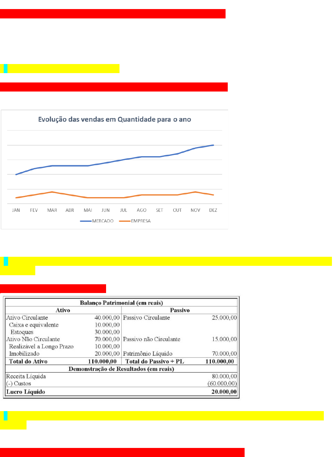 Gestão Orçamentária A propósito do orçamento empresarial, considere as seguintes afirmativas: I) As condições de incerteza podem ser um fator limitador devido a desvios nas projeções de cenários elaborados no orçamento II) As ações de cada área devem estar alinhadas com a estratégia da empresa, e não com as condições específicas de cada área. É correto o que se afirma em: ( E ) As duas assertivas são verdadeiras. Analise com atenção o gráfico abaixo que demonstra a evolução de vendas da Empresa Expert Ltda em relação ao mercado que ela participa: Com base no gráfico, podemos afirmar que: O indicador de tendência de vendas da empresa demonstra que a sua participação de mercado tem uma diminuição. ( B ) O indicador de tendência de vendas da empresa demonstra que a sua participação de mercado tem uma diminuição. Analise as demonstrações a seguir: Em relação aos dados apresentados, é verdadeiro afirmar que: ( E ) O Capital Circulante Líquido é positivo e sua importância para o orçamento é a projeção de liquidez da empresa Com base nos conceitos de inovação e na proposta de elaboração do orçamento para pesquisa e desenvolvimento, considere as afirmações a seguir: I. O orçamento em pesquisa e desenvolvimento é considerado como um investimento de capital de médio e longo prazo e seus benefícios podem ser para a elaboração de novos produtos, serviços ou ainda nos processos empresariais. II. A inovação pode ser uma escolha estratégica da empresa para se diferenciar e manter a sua sustentabilidade financeira, e, portanto, a sua decisão deve estar contemplada na elaboração do orçamento empresarial. III. O orçamento para pesquisa e desenvolvimento não é considerada em uma boa prática porque nem sempre os investimentos são recuperados, como por exemplo, quando não se consegue uma registrar uma patente para um produto e por consequência não se conseguir gerar receita a partir dele. As afirmações são verdadeiras em: ( D ) Somente as afirmativa I e II são verdadeiras Com relação ao planejamento de pessoas necessários na construção do orçamento empresarial, avalie o texto a seguir: O Plano de Recursos Humanos envolve o recrutamento, o treinamento e desenvolvimento do pessoal de todas as áreas. Os planos de salários, benefícios e outros programas como redução de acidentes, absenteísmo e turnover também está contemplado neste planejamento. A sua relação com orçamento é complementada vinculando o desempenho do negócio com remunerações variáveis aos colaborares envolvidos, com a intenção de atrair e manter motivados os talentos e suas competências na empresa. Considerando esse contexto, avalie as seguintes asserções e a relação proposta entre elas: I. Uma remuneração total proposta em um orçamento empresarial específico acima da média praticada por outras empresas do mesmo setor não implica necessariamente baixa competitividade da empresa devido aos seus custos serem mais elevados Porque II. Parte da remuneração total dos colaboradores podem estar vinculados com desempenho e meritocracia e portanto não impactando o resultado da empresa. Assinale a alternativa correta: ( D ) as duas são verdadeiras, e a segunda é uma justificativa correta da primeira; Com base nas premissas de Michael Porter e suas ferramentas analíticas para o ambiente competitivo, considere as seguintes afirmativas: I. O poder de negociação do cliente não influencia o desempenho das empresas. II. A concorrência acirrada não influencia negativamente o desempenho das empresas, pois possibilita as melhores ofertas para os clientes. III. A possibilidade de diversos fornecedores pode ser favorável para a empresa compradora. As afirmações são verdadeiras em: ( C ) Somente a afirmativa III. Em relação à análise dos pontos fortes e fracos das empresas, considere que: O ambiente interno é o nível de ambiente da organização que refere a variáveis que a própria empresa domina (ou não) e que normalmente tem implicação imediata e específica em sua administração. Considerando o contexto descrito, avalie as afirmações a seguir: I - A sazonalidade de vendas é um ponto forte para as empresas. II - A capacidade de investimento é considerada como uma variável interna para as empresas. III - A satisfação dos clientes é considerada como um ponto forte para as empresas. IV - A partir de uma avaliação das competências internas, a empresa pode orientar a sua estratégia e este posicionamento pode contribuir para evolução dos planos operacionais da empresa. É correto o que se afirma em: ( C ) II, III, e IV, apenas. Em relação aos conceitos planejamento de produção e de movimentação de materiais, considere as afirmações a seguir: I) A sazonalidade prevista na área comercial pode não ser coincidente com a sazonalidade de produção, que estabelece um planejamento de produção que considera a estocagem de produtos. II) De acordo com as modelos de produção atuais, a produção “empurra” para a área comercial as quantidades a serem vendidas pela empresa, evitando assim os estoques. III) Riscos para a estocagem como furtos, deterioração, obsolescência e queda nos preços de comercialização, além dos custos de capital podem ser diminuídos com o conceito de Just in Time. As afirmações são verdadeiras em: ( E ) as afirmativas I e III são verdadeiras. Em relação ao planejamento financeiro de curto prazo: A palavra caixa, em um primeiro entendimento refere-se apenas aos recursos existentes nas dependências da empresa, que estão liberados para depósitos bancários. Em orçamento, este termo tem um entendimento mais amplo, abrangendo também os saldos bancários de livre movimentação, incluindo o numerário em transito. (SOBANSKI, 2000). Em relação ao orçamento de caixa, é verdadeiro afirmar que: ( B ) O saldo projetado no orçamento de caixa pode indicar a necessidade de nova