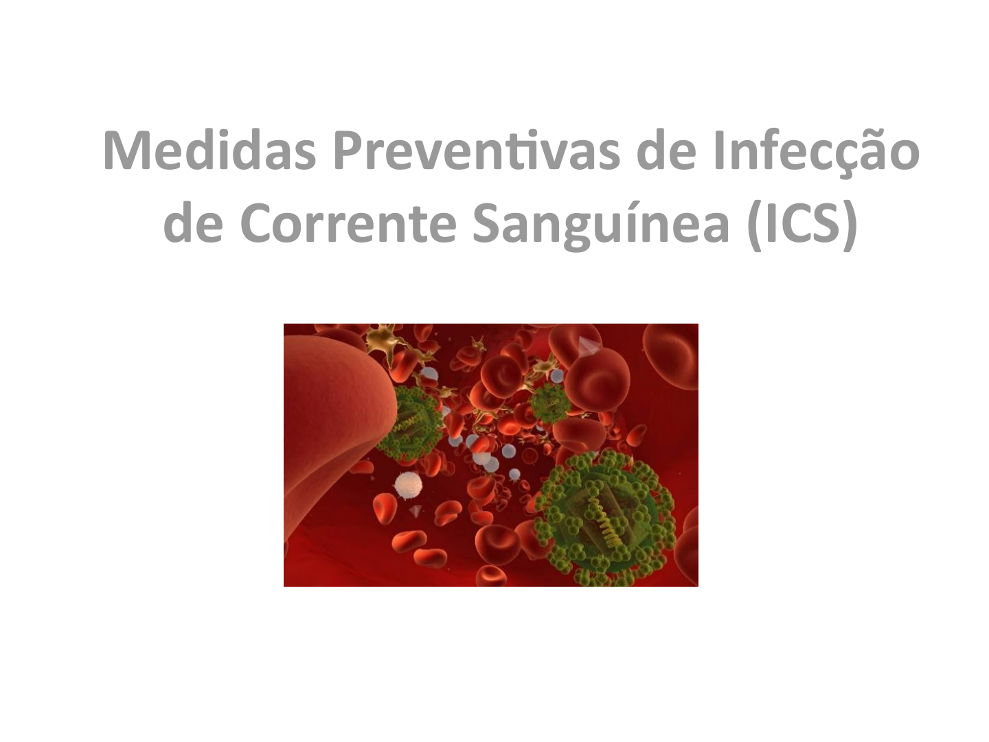 Medidas Preventivas de Infecção de Corrente Sanguínea (ICS) 1 Epidemiologia Estima-se que cerca de 60% das bacteremias sejam associadas a algum dispositivo intravascular. Estados Unidos 250.000 Infecção da corrente sangüínea (10% a 15%) 87% dos casos de infecção da corrente sangüínea relacionam-se ao acesso vascular Epidemiologia Aumento da morbidade – prolonga a hospitalização em média 12 dias Aumento da mortalidade – em até 35%, de acordo com a gravidade do paciente Aumenta os custos hospitalares – gasto extra de US$ 50.000,00 por episódio Fisiopatogenia Nas duas primeiras semanas, a colonização extraluminal predomina na gênese da IPCS. Isto é, as bactérias da pele ganham a corrente sanguínea após terem formado “biofilmes” na face externa do dispositivo. Após esse período, no entanto, e principalmente nos cateteres de longa permanencia, prevalece a colonizaçao da via intraluminal como fonte de bactérias para a ocorrencia da IPCS. Isso ocorre porque estes cateteres possuem mecanismos que coíbem a colonizaçao extraluminal. Outras vias menos comuns de IPCS sao a colonizaçao da ponta do dispositivo por disseminaçao hematogenica a partir de outro foco e a infusao de soluçoes contaminadas 4 Anotações: Nas duas primeiras semanas, a colonização extraluminal predomina na gênese da IPCS. Isto é, as bactérias da pele ganham a corrente sanguínea após terem formado “biofilmes” na face externa do dispositivo. Após esse período, no entanto, e principalmente nos cateteres de longa permanencia, prevalece a colonizaçao da via intraluminal como fonte de bactérias para a ocorrencia da IPCS. Isso ocorre porque estes cateteres possuem mecanismos que coíbem a colonizaçao extraluminal. Outras vias menos comuns de IPCS sao a colonizaçao da ponta do dispositivo por disseminaçao hematogenica a partir de outro foco e a infusao de soluçoes contaminadas 5 Infecções de Corrente Sanguínea As infecções primárias da corrente sanguínea (IPCS) são aquelas infecções de consequências sistêmicas graves, bacteremia ou sepse, sem foco primário identificável. Laboratorial Clínica Infecções de Corrente Sanguínea As infecções secundária da corrente sanguínea (IPCS) é a ocorrência de hemocultura positiva ou sinais clínicos de sepse, na presença de sinais de infecção em outro sítio Decorrente de um foco primario de infecção conhecido, atraves de disseminação hematogenica ou linfatica (foco urinario, pulmonar, ginecologico..) 7 Anotações: Decorrente de um foco primario de infecção conhecido, atraves de disseminação hematogenica ou linfatica (foco urinario, pulmonar, ginecologico..) Infecções de Corrente Sanguínea Infecções relacionadas ao acesso vascular (IAV) são infecções que ocorrem no sítio de inserção do cateter, sem repercussões sistêmicas. A maioria das infecções dessa natureza são infecções relacionadas ao acesso vascular central (IAVC), ou infecção relacionada a acesso vascular periférico (IAVP). Critérios para definição de ICS laboratorial 10 Critérios para definição de ICS Clínica ICS Infecção relacionada a acesso vascular periférico (IAVP): São definidas como a presença de sinais locais de infecção (secreção purulenta ou celulite), com ou sem a presença de cordão inflamatório em pacientes sem diagnóstico concomitante de IPCS. ICS Infecção primária de corrente sanguínea (IPCS) associada a cateter central: (notificação) infecção da corrente sanguínea em pacientes em uso de cateter central por um período maior que dois dias de calendário (sendo o D1 o dia de instalação do dispositivo) e que na data da infecção o paciente estava em uso do dispositivo ou este foi removido no dia anterior. IPCS laboratorialmente confirmada associada a cateter central Paciente acima de 28 dias com agente patogênico identificado em uma ou mais hemoculturas E O microrganismo identificado não está relacionado a outro foco infeccioso IPCS laboratorialmente confirmada associada a cateter central Paciente > 1 ano apresenta pelo menos um dos seguintes sinais ou sintomas: (Febre (>38°C) ∙ Calafrios ∙ Hipotensão (pressão sistólica ≤ 90 mmHg)) E Duas ou mais hemoculturas, coletadas em momentos distintos no mesmo dia ou no máximo no dia seguinte , positivas para agentes contaminantes de pele E O microrganismo identificado não está relacionado a outro foco infeccioso Hemoculturas Em geral, recomenda-se que sejam coletados dois frascos, um para aeróbios e outro para anaeróbios, por veia puncionada Em caso de presença de cateter central e de suspeita de ICSRC deve-se coletar amostras pareadas do cateter central e de veia periférica fresca, para comparação de tempo de positivação ou de crescimento quantitativo de uma só vez, os 40 a 60 ml de sangue Coleta de Hemocultura Coleta ponta do cateter Medidas Educativas Programas de educação continuada Capacitação dos profissionais de saúde Adesão às recomendações durante a inserção e manuseio dos cateteres Vigilância epidemiológica Avaliação dos resultados Estratégias de melhoria contínua Higiene das mãos Precauções de barreira máxima: uso gorro, máscara, avental e luvas estéreis e campos estéreis grandes que cubram o paciente. Preparo da pele com gluconato de clorexidina. Seleção do sítio de inserção de CVC: utilização da veia subclávia como sítio preferencial para CVC. Revisão diária da necessidade de permanência do CVC, com pronta remoção quando não houver indicação. Recomendações para Prevenção Cateter Periférico Higiene das mãos Recomendações para Prevenção Cateter Periférico Selecionar o cateter periférico com base no objetivo pretendido, na duração da terapia, na viscosidade do fluido, nos componentes do fluido e nas condições de acesso venoso ∙∙ Para atender a necessidade da terapia intravenosa devem ser selecionados cateteres de menor calibre e comprimento de cânul