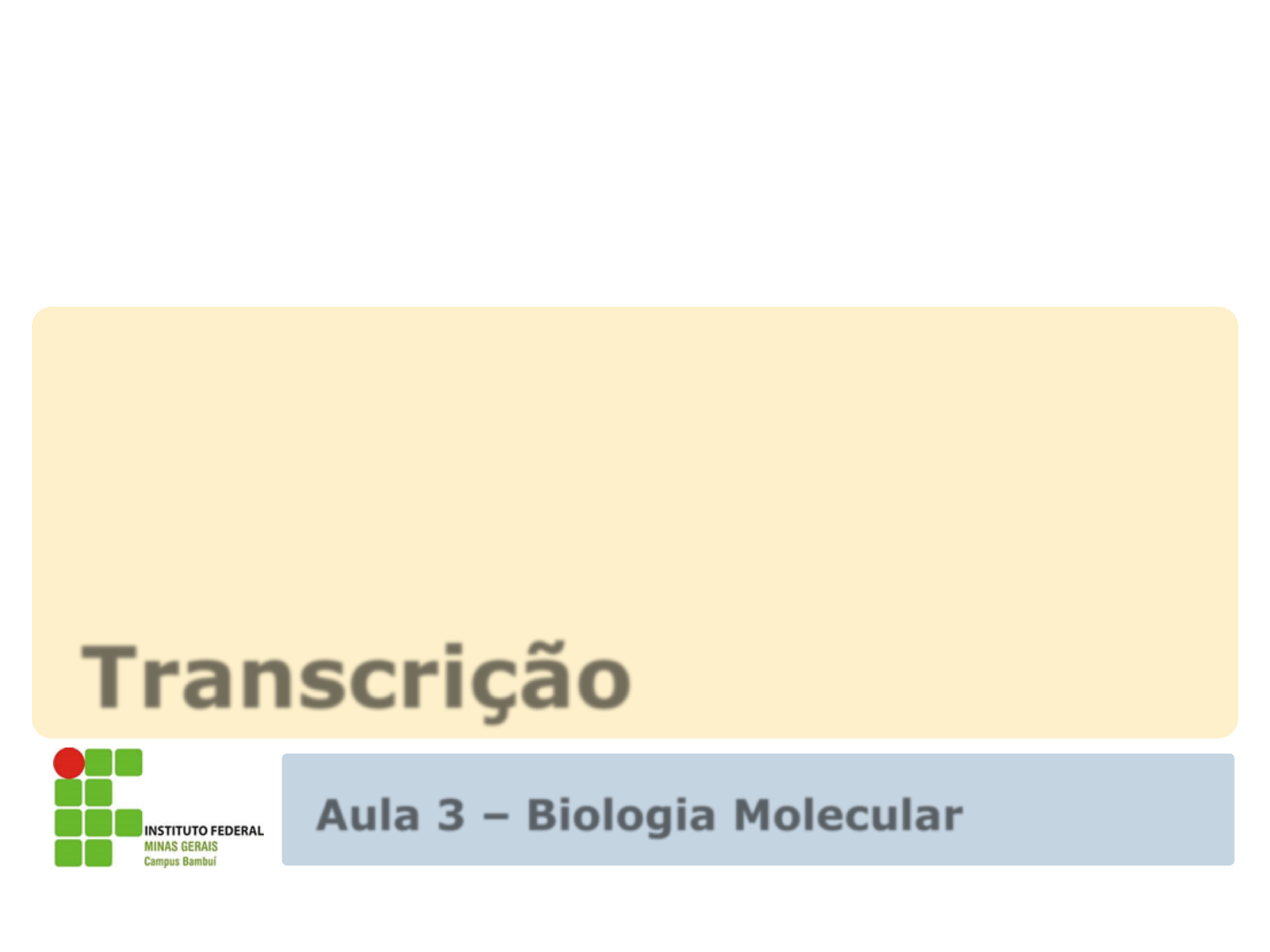Transcrição Aula 3 – Biologia Molecular Dogma central da genética molecular Os modelos para explicar os processos genéticos baseiam-se no dogma central da genética: Nos eucariotos, ocorre uma etapa intermediária de processamento do RNA chamada de splicing Estrutura do RNA Ribonucleotídeos são as unidades formadoras do RNA. São formadas por três unidades: Uma base nitrogenada Pode ser de 4 tipos (adenina, guanina, citosina e uracila) Uma pentose chamada ribose Um grupamento fosfato Estrutura do RNA RNAs informacionais e funcionais RNAs informacionais São os RNAs mensageiros (mRNAs) São cópias dos segmentos funcionais do DNA (genes) Nos procariotos o mRNA formado (transcrito primário) é utilizado diretamente no processo de síntese de polipeptídeos Nos eucariotos o transcrito primário passa por 3 processamentos Adição do CAP Adição da cauda poli-A Splicing ou remoção de íntrons RNAs informacionais e funcionais RNAs funcionais São os RNAs que nunca são traduzidos em proteínas Podem ser de 5 tipos: RNA transportador (tRNA) RNA ribossômico (rRNA) RNA nuclear pequeno (snRNA) RNA citoplasmático pequeno (scRNA) RNA de interferência (RNAi) Os procariotos apresentam apenas o tRNA e o rRNA, enquanto que os eucariotos apresentam os 5 tipos. Classificação do DNA na transcrição Na transcrição, apenas uma das fitas de DNA é utilizada como molde. Baseado neste critério elas são classificadas em: Filamento molde (anti-sense) Filamento utilizado como molde (transcrito) O sentido da cópia é sempre de 3’→ 5’ A seqüência do filamento molde é complementar ao mRNA Filamento não-molde (sense) Filamento não transcrito A seqüência do filamento não molde é similar ao mRNA Classificação do DNA na transcrição Fita não-molde Fita molde RNA polimerase É a enzima que cataliza a reação de ligação fosfodiéster entre um ribonucleotídeo livre e último da cadeia. Assim como DNA polimerase, necessita de um 3’-OH para realizar a ligação. Logo a transcrição é de 5’→ 3’. RNA polimerase Em procariotos, existe apenas um tipo de RNApol. Em eucariotos, existem três tipos de RNApol: RNA pol I: Sintetiza moléculas de rRNA RNA pol II: Sintetiza moléculas de mRNA RNA pol III: Sintetiza moléculas de tRNA, snRNA e scRNA O processo de transcrição Extensão e término A bolha de transcrição segue pela fita de DNA até encontrar seqüências que são sinais de término. A região de término contém cerca de 40 pb ricos em GC seguido de uma fileira de A. A transcrição desta região faz com que o RNA assuma a forma de uma alça, que é o sinal para a RNApol se soltar. Transcrição nos eucariotos As etapas da transcrição ocorrem no núcleo da célula O inicio da transcrição em eucariotos também é determinado por regiões promotoras. Transcrição nos eucariotos Após a ligação da RNApol e alongamento da cadeia, o mRNA passa por 3 processamentos: Adição do CAP Adição da cauda poli-A Splicing Adição do CAP O CAP é um revestimento da ponta 5’ da cadeia de RNA composto por uma molécula de 7-metil guanosina (7- MG). Ele é adicionado quando o RNA tem aproximadamente 30 bases Funções do CAP: Reconhecimento do mRNA por proteínas envolvidas na tradução Proteção contra degradação por endonucleases Adição da cauda Poli-A Ao final do alongamento, o transcrito primário é cortado num ponto específico da sua ponta 3’. Existe uma seqüência no final que é reconhecida por endonucleases que cortam o DNA de 11 a 30 bases após esta sequencia. Após a clivagem a enzima poli(A) polimerase adiciona uma “cauda” com cerca de 200 As. Adição da cauda Poli-A Recomposição ou splicing As seqüências codificantes (exons) são intercaladas por seqüências não-codificantes (introns). O mRNA assim que é alongado (transcrito primário) é composto por exons e introns. O primeiro processamento que o mRNA sofre é a remoção dos introns. O processo é chamado de splicing. Recomposição ou splicing Recomposição ou splicing Existem regiões nas extremidades dos introns que são sinais para sua remoção. Splicing alternativo O padrão de remoção de um transcrito primário pode ser diferente entre as células de um organismo. Isto proporciona a geração de transcritos maduros diferentes (logo proteínas diferentes) a partir de uma única sequencia de DNA. Splicing alternativo