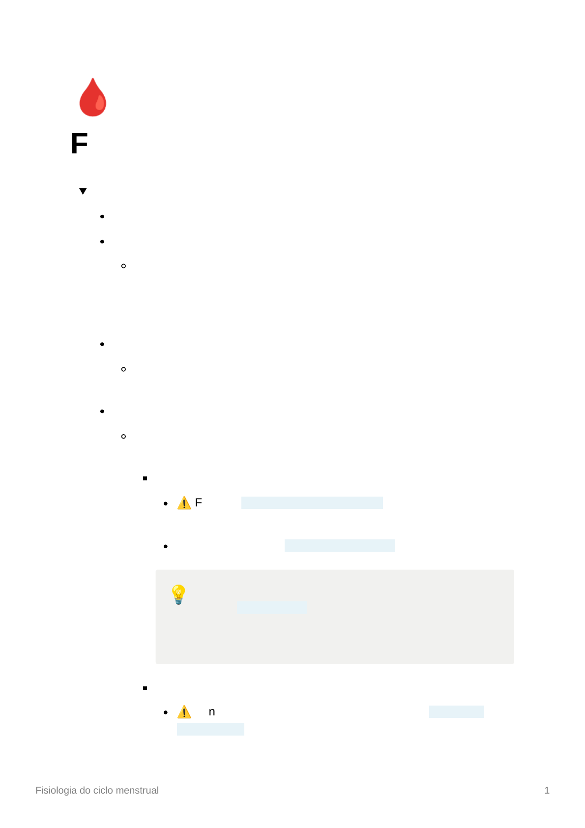 Fisiologia do ciclo menstrual 1 🩸 Fisiologia do ciclo menstrual Eixo Hipotálamo → Hipófise → Ovário → Endométrio Hipotálamo Região do SNC que produz o polipeptídeo GnRH (hormônio liberador de gonadotrofinas que cai na circulação porta-hipofisária para poder agir na hipófise anterior) que é secretado de forma pulsátil (se for cte! a hipófise não responde!) Hipófise anterior (adenohipófise) Quando o GnRH chega na hipófise anterior e ela produz gonadotrofinas → FSH (hormônio folículo estimulante) e LH (hormônio luteinizante) Ovários As gonadotrofinas vão agir sobre os ovários e eles vão responder produzindo 2 hormônios: Estrogênios ⚠ Função: Proliferação endometrial na via final do ciclo menstrual (estimula mitose) Estriol - placentário, Estradiol - ovariano, Estrona - periférico 💡 CA de endométrio: o FR isolado mais IPC na gênese do CA é a OBESIDADE! Porque a paciente obesa tem mais tecido adiposo → produz mais estrona → maior proliferação endometrial → hiperplasia → CA Progesterona ⚠ Função: Prepara o útero para a gestação → secreção endometrial para receber o ovo fecundado Fisiologia do ciclo menstrual 2 Endométrio O corpo prepara o endométrio para que a mulher engravide Feedbacks do estradiol Negativo sobre o FSH → quanto mais estradiol o ovário produz, menos FSH a hipófise libera Positivo sobre o LH → quando mais estradiol o ovário produz, mais LH a hipófise libera Fases do ciclo menstrual Fisiologia do ciclo menstrual 3 A média é de 28 dias A primeira fase é a proliferativa ou folicular, ela começa no primeiro dia da menstruação Ação predominante do estradiol → mitose celular Pode variar entre as mulheres! A segunda fase começa no 14° dia que é a fase secretora ou lútea, o último dia dessa fase antecede a próxima menstruação Acontece a ovulação → fase secretora → o endométrio estabiliza e se torna secretor → ação predominante da progesterona Ela é fixa! A paciente começa o ciclo menstrual com níveis altos de FSH O FSH recruta 8-10 folículos ovarianos → eles começam a crescer e se desenvolver → a medida que vão crescendo e aumentando de tamanho eles vão produzindo +++ estradiol (estimula o endométrio a proliferar) → feedback negativo → FSH diminui No final da fase proliferativa desses 8-10 folículos, só 1 deles vai ser destinado a ovular (folículo dominante), agora como você só tem 1 folículo ele produz³ → eles faz um pico de estradiol e depois não aguenta mais produzir sozinho 🧐No final da fase proliferativa existe um pico de estradiol que só acontece porque ela começou o ciclo com FSH alto Logo após o pico de estradiol eu tenho que ter, por feedback positivo, o pico de LH → rompe a superfície do folículo → oócito → ovulação O que fica do folículo ele se transforma em corpo lúteo O corpo lúteo continua produzindo estradiol, só que ele produz progesterona em grandes quantidades (prepara o endométrio) para receber o ovo fecundado ⚠ Tem um tempo de vida de 14 dias ⚠ Porque ele sofre luteólise → diminui sua produção de estrogênio e progesterona → feedback negativo → FSH começa a subir no final da fase secretora O endométrio não prolifera na fase secretora porque a progesterona bloqueia o receptor de estrogênio Fisiologia do ciclo menstrual 4 Se tiver fecundação: O embrião começa a se desenvolver já na tuba uterina e vai gerar o sinciciotrofoblasto → produz o B-HCG → hormônio que segura o corpo lúteo e vai manter o CL produzindo progesterona para segurar essa gestação até mais ou menos 8 semanas de gestação, que é o tempo da placenta assumir sua função endócrina de produzir progesterona Existe outro hormônio que inibe o FSH → Inibina Na fase proliferativa a inibina B vai subir e ela bloqueia o FSH ajudando o estradiol Na fase secretora a inibina A vai subir na fase secretora bloqueando o FSH 💡 PRIMEIRO SOBE A INIBINA B E DEPOIS SOBE A INIBINA A Ciclo menstrual normal Frequência: 24 a 38 dias Duração 4,5 a 8 dias Fluxo 5 a 80ml