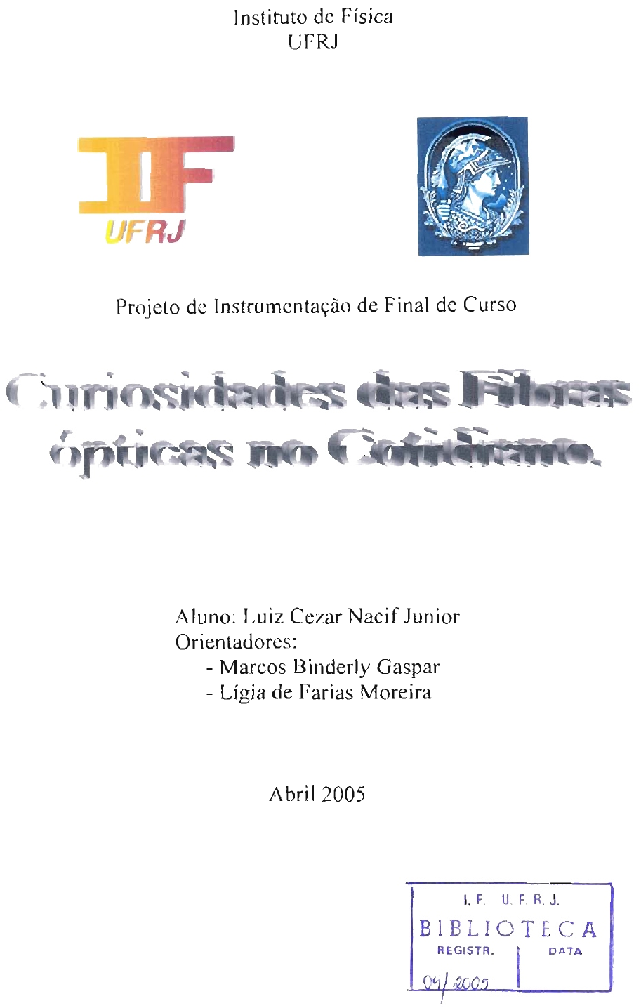Instituto de Física UFRJ Projeto de Instrumentação de Final de Curso Aluno: Luiz Cezar Nacif Junior Orientadores: - Marcos Binderly Gaspar - Lígia de Farias Moreira Abril 2005 I I . F . U.F.R.J. I B I B L I O T E C A AGRADECIMENTOS Agradeço primeiramente a Deus que me deu muita força para continuar o curso de Física, quando surgiam dificuldades aparentemente insolúveis e logo após agradeço do fundo do meu coração a minha maravilhosa família que sempre me apoiou nos períodos mais complicados da minha vida, me cercando de amor e carinho. Um muito obrigado a minha mãe, Ingrid Salgado Nacif, a meu pai, Luiz Cezar Nacif e a minha irmã, Karinne Salgado Nacif. Agradeço aos meus avós maternos, Corina e João Batista e avós paternos, Emma e Chaquib e os amigos Flávio Cardoso, Carlos Maia, Édson Alan, Fabiano e a todos os amigos que contribuíram direta ou indiretamente para a conclusão do meu curso de Física. Agradeço especialmente aos meus orientadores Marcos Binderly Gaspar e Lígia de Farias Moreira que sempre acreditaram na minha capacidade, sempre me motivando e me ajudando para a conclusão do presente trabalho. Agradeço aos professores do curso de Física: Francisco Cordeiro, Vitorvani Soares, André Penna, Wilma Machado, Erich Meyer, cujos ensinamentos foram o pilar da minha formação, além de revelarem o verdadeiro e grandioso sentido da alegria e da satisfação no aprendizado da Física. Agradeço ao professor Arthur Chaves, coordenador da Licenciatura, pela paciência e dedicação aos alunos. E finalmente agradeço a Universidade Federal do Rio de Janeiro pela minha excelente formação acadêmica, ao C O M e a DAE pela infra-estrutura oferecida a mim para a conclusão do curso. RESUMO Este trabalho tem como proposta uma maneira alternativa de apresentação dos conceitos sobre o tema reflexão interna total (Óptica), mostrando como este é aplicado no nosso cotidiano através das fibras ópticas. A monografia destina-se aos alunos do Ensino Médio, aos do curso de Licenciatura em Física e também para professores de Física do Ensino Médio. O trabalho baseia-se nas recomendações dos PCN. O conteúdo do trabalho conta algumas curiosidades das fibras ópticas e o conceito teórico físico da mesma sob a forma de uma atividade cwricular complementar. Fizemos, inicialmente uma breve apresentação da história da óptica ligada aos conceitos de reflexão, seguida dos aspectos gerais, complementando com alguns experimentos simples, encerrando com as aplicações atuais das fibras ópticas. 1 Introdução .......................................................................................... 1 2 Método do Desenvolvimento do Trabalho .................................................... 3 3 Atividade curricular complementar - aspectos gerais------------------------------------- 4 3.1 Introdução ................................................................................ 4 3 2 As Fibras Ópticas ........................................................................ 5 3 -3 Mão de Obra ............................................................................ 1 o . . 3 -4 Mercado Brasilelro ...................................................................... 11 3.5 Regulamentação-------------------------------------------------------------------------- 1 1 3.6 Rápido como a luz, não é necessário tantas vezes se o assunto é contínuo------1 1 3.7 Cabos Submarinos----------------------------------------------------------------------- 14 4 pundamentos Teóricos---------------------------------------------------------------------------- 15 4.1 Breve Histórico das Comunicações Opticas 15 4.2 Teoria ............................................................................. --------- 18 5 Tecnologia das Fibras Ópticas .................................................................. 27 5.1 Tipos de Fibras ópticas------------------------------------------------------------------ 27 6 Experimentos . . . . . . . . . . . . . . . . . . . . . . . . . . . . . . . . . . . . . . . . . . . . . . . . . . . . . . . . . . . . . . . . . . . 3 7 6.1 Experiência 1 - Condutores de luz .................................................... 37 6.2 Experiência 2 - Propagação da Luz ................................................... 37 6.3 Experiência 3 - Constnllndo uma Fibra óptica ...................................... 3 8 7 Aplicações .......................................................................................... 3 9 7.1 Vantagens do Uso das Fibras Óptica 3 9 . . 7.2 Uso de Fibras ópticas na Medicina-- .................................................. 42 7.3 Fibras ópticas na I n s t ~ e n t a ç ã o ...................................................... 43 ' I 7.4 Uso de Fibras Optlcas nas Telecomunicações ....................................... 45 7.5 Termômetro a Fibra Óptica para uso em ambientes com microondas------------ 47 7 6 As Pinças ópticas ......................................................................... 47 . . 7.7 Aplicações Mllltares--------------------------------------------------------------------- 48 7.8 0 Chip do Fuw------------------------------------------------------------------------ 48 As aplicações da óptica cercam o cotidiano do nosso tempo. Desde os simples espelhos planos que usamos para refletir nossa imagem aos pentearmos nossos cabelos, aos telescópios ultrarnodernos usados para observar o espaço. O ensino da Física, na escola média, deve contribuir para a formação de uma cultura científica efetiva, que permita ao indivíduo a interpretação dos fatos, fenômenos e processos naturais, situando e dimensionando a interação do ser humano com a natureza como parte da própria natureza em transformação. O conhecimento da Física "em si mesmo" não basta como objetivo, mas deve ser entendido sobretudo como um meio, um instrumento para a compreensão do mundo, podendo ser prá