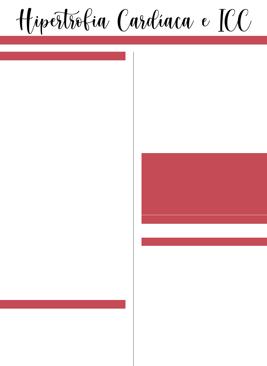 APG 03 – MYRELLA TURBANO HIPERTROFIA CARDÍACA É um mecanismo adaptativo do coração, em resposta a um aumento de sua atividade ou de sobrecarga funcional. O resultado desse aumento de trabalho do coração traduz-se num aumento de massa cardíaca devido ao crescimento dos miócitos e/ou do estroma conjuntivo. Essa resposta se dar em resposta a: a) Aumento de necessidade metabólica que impõe um aumento do débito cardíaco. É observada em exercício físico, indução hormonal ou de debito alto como observadas na anemia e fistulas arteriovenosas; b) Aumento de carga pressórica ou de volume, condição observada como resposta adaptativa a condições patológicas como a hipertensão arterial, estenose ou coartação de aorta, etc. (sobrecarga pressórica), ou lesões orovalvulares ou congênitas como a insuficiência aórtica, comunicação interatrial, etc. (sobrecarga de volume); c) Resultante de mecanismos intrínsecos de natureza genética, tais como as hipertrofias idiopáticas que podem ocorrer mesmo na ausência de sobrecargas. TIPOS DE HIPERTROFIAS HIPERTROFIA CONCÊNTRICA: ocorre aumento de massa ventricular decorrente de aumento da espessura da parede e redução dos diâmetros cavitários. Tal condição surge em decorrência de um aumento de resistência à ejeção ou à sobrecarga de pressão. A adição de sarcômeros, em paralelo, permite o aumento da secção transversa das células. HIPERTROFIA EXCÊNTRICA: ocorre um aumento de massa ventricular e da espessura da parede ventricular, mas com aumento dos diâmetros cavitários. Esta condição surge em decorrência de sobrecarga de volume. Na hipertrofia concêntrica a redução dos diâmetros cavitários permite ao ventrículo desenvolver maior pressão. A adição de sarcômeros, em serie, permite que a célula aumenta de comprimento. LEI DE LAPLACE: descreve a relação entre a tensão transmural, a pressão, o raio e a espessura da parede do vaso. Quanto maior for a pressão de dentro do vaso, maior a tensão da parede. De outro modo, o espessamento do vaso diminui sua tensão transmural. Quanto maior o raio, maior a tensão. P=T/R. HIPERTROFIA PATOLÓGICA COMPLICAÇÕES A NÍVEL TECIDUAL SUPRIMENTO INADEQUADO: O mais importante é que a hipertrofia de miócitos não é acompanhada por um aumento proporcional do número de capilares. Como resultado, o suprimento de oxigênio e nutrientes para o coração hipertrofiado, particularmente aquele que está com sobrecarga de pressão, é mais tênue do que para o coração normal. AUMENTO DA DEMANDA POR OXIGÊNIO: No mesmo momento, o consumo de oxigênio pelo coração hipertrofiado está elevado devido ao aumento da carga de trabalho que controla o processo. MYRELLA TURUBANO – T12 PROCESSO FIBROSO: A hipertrofia também é frequentemente acompanhada pela deposição de tecido fibroso (fibrose intersticial). REPROGRAMAÇÃO CELULAR: Hipertrofia corresponde a uma alteração no metabolismo celular. Para que tal mudança ocorra, ainda que fatores neuro-hormonais interfiram, o papel principal é do estímulo mecânico, que é de algum modo convertido em sinais bioquímicos. Diante dessa sobrecarga hemodinâmica prolongada, nas células ocorre reprogramação, levando a expressão coordenada de genes envolvidos na síntese dos demais componentes do sistema contrátil, de modo semelhante ao que ocorre na vida fetal (contração mais lenta e prolongada e aumento do metabolismo anaeróbico). COMPLICAÇÕES A NÍVEL FUNCIONAL AUMENTO DO TRABALHO CARDÍACO: A hipertrofia cardíaca está associada à maior demanda metabólica devido ao aumento da massa, frequência cardíaca e contratilidade (estado inotrópico ou força de contração), todos os quais aumentam o consumo de oxigênio pelo coração. Como resultado dessas alterações, o coração hipertrofiado é vulnerável à descompensação relacionada à isquemia, que pode evoluir para insuficiência cardíaca e, por fim, levar à morte. INSUFICIÊNCIA CARDÍACA As alterações moleculares e celulares nos corações hipertrofiados que inicialmente medeiam a função aumentada podem contribuir para o desenvolvimento da insuficiência cardíaca devido à: metabolismo anormal do miocárdio (aumento do demanda e pouco fornecimento de nutrientes), alterações na utilização dos íons cálcio (aumento das contrações), apoptose de miócitos (infarto) e reprogramação da expressão gênica, que pode ocorrer, em parte, através de alterações na expressão de pequenos RNAs não codificantes que inibem a expressão gênica. A falência do coração geralmente é denominada insuficiência cardíaca congestiva (ICC). A maioria dos casos de insuficiência cardíaca resulta de disfunção sistólica — função contrátil inadequada do miocárdio, caracteristicamente consequência da cardiopatia isquêmica ou da hipertensão. Por outro lado, a ICC também pode resultar de disfunção diastólica — incapacidade do coração de relaxar e se encher de modo adequado, como ocorre na hipertrofia maciça do ventrículo esquerdo, na fibrose do miocárdio, na deposição de amiloide e na pericardite constritiva. De fato, a insuficiência cardíaca observada em idosos, diabéticos e mulheres resulta com frequência de disfunção diastólica. Por fim, a insuficiência cardíaca também pode resultar de disfunção valvar ou ocorrer em coração normal subitamente exposto a uma sobrecarga. MYRELLA TURUBANO – T12 A ICC surge quando o coração não consegue produzir débito suficiente para satisfazer as demandas metabólicas dos tecidos ou apenas consegue satisfazê-las sob pressões de enchimento superiores às normais; em pequeno número de casos, a insuficiência cardíaca pode ser consequência de aumento significativo das demandas dos tecidos, como ocorre no hipertireoidismo, ou de capacidade insuficiente de transportar oxigênio, como na anemia. Na ICC, o coração em falência não consegue mais bombear de modo eficiente o sang