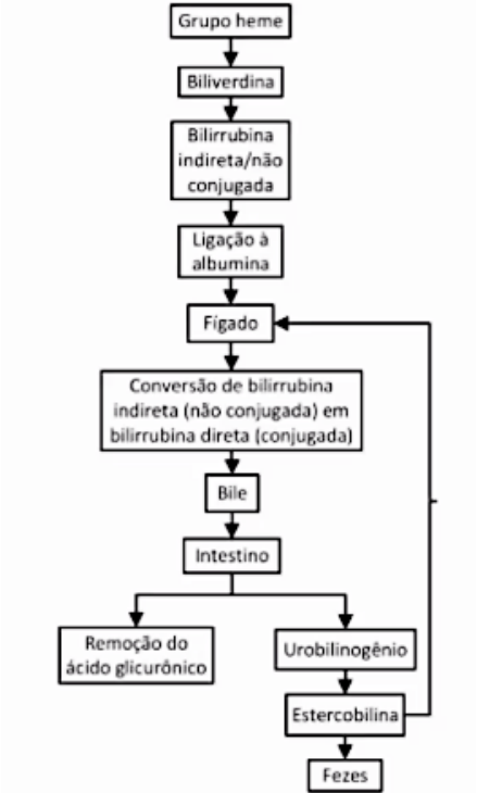 ICTERÍCIA NEONATAL INTRODUÇÃO A hiperbilirrubinemia é a patologia mais frequente no período neonatal. A bilirrubina indireta, também denominada não conjugada, aumenta principalmente quando há hemólise de glóbulos vermelhos. Já a bilirrubina direta (ou conjugada), em geral, tem seus níveis aumentados por alterações hepáticas. As manifestações clínicas ocorrem quando os níveis sanguíneos de bilirrubina indireta ultrapassam 5 a 7 mg/dL. Tendo em vista que entre 60 e 70% dos recém-nascidos desenvolvem níveis séricos de BI superiores a 5mg, é muito comum visualizaremos a coloração amarelada da pele nesse grupo. A etiologia é multifatorial e o tratamento dependerá da intensidade e evolução do quadro. Fatores de risco • Grupo sanguíneo (mãe O, com RN A ou B) • Fator Rh (mãe Rh-, com 2º filho Rh+) o Risco de eritroblastose fetal • Retardo do clampeamento do cordão umbilical o O clampeamento do cordão umbilical deve ocorrer de 1 a 3 minutos em condições habituais. Nos casos de retardo, como quando o bebê nasce em casa ou na ambulância, ele apresenta uma quantidade muito grande de glóbulos vermelhos, aumentando a hemólise e evoluindo com icterícia. • Tipo de parto (fórceps, pélvico, cesáreo) • Drogas maternas (diazepam, ocitócicos) o Alteram a metabolização hepática da bilirrubina no recém-nascido Etiologias da hiperbilirrubinemia indireta • Destruição de eritrócitos imaturos recém- formados: considerando que o bebê nasce com uma quantidade maior de eritrócitos, há maior hemólise. • Degradação da hemoglobina na medula óssea • Degradação de heme livre no fígado • Aumento da circulação êntero-hepática • Anemias hemolíticas e polictemias • Destruição ou redução da atividade da enzima glicuroniltransferase (deficiência genética, hipóxia ou infecção) o A enzima glucoroniltransferase é importante para a conversão e excreção da bilirrubina. Nos casos em que há deficiência dessa enzima, toda a fisiologia da bilirrubina será alterada FISIOLOGIA DA BILIRRUBINA A fisiologia da bilirrubina pode ser dividida em cinco passos: (1) transporte; (2) captação e conjugação; (3) excreção; (4) degreadação e (5) progressão anatômica. Resumidamente, distúrbios como o aumento na produção, redução da captação e conjugação e diminuição da excreção, atrapalham a fisiologia da bilirrubina, cursando com níveis aumentados desse produto. Transporte A degradação da hemoglobina na forma lipossolúvel origina a bilirrubina indireta (ou não conjugada), a qual é transportada pela albumina até o fígado do indivíduo. Alguns fatores interferem na formação desse complexo, tais como: • pH Geovana Sanches, TXXIV • Idade gestacional • Substâncias presentes no soro (sulfas, furosemida e cefalosporinas) o As cefalosporinas competem com a bilirrubina indireta pelo sítio da albumina. Por isso, a mãe não pode tomar essa medicação, pois ela é passada para o bebê. Captação e conjugação A bilirrubina indireta é carregada pela albumina até o fígado. A partir disso, ela é captada pelos hepatócitos e se desliga da albumina. No retículo endoplasmático, através da enzima glicoroniltransferase, há transformação (conjugação) da bilirrubina indireta em bilirrubina direta. Excreção A bilirrubina direta (ou conjugada) é mandada para o intestino, sendo excretada pela urina ou pelas fezes na forma de urobilina ou estercobilina, respectivamente. Uma pequena quantidade da BD é hidrolisada novamente em bilirrubina indireta pela enzima beta-glicuronidase, sendo reabsorvida através da circulação êntero- hepática. Algumas mães têm grande quantidade dessa enzima no leite materno, de forma que seus bebês ficarão mais ictéricos. Degradação A degradação ocorre no TGI, sobre ação da betaglicuronidase (aumento da circulação êntero- hepática) e por ação das bactérias, com formação do urobilinogênio. Progressão A progressão da icterícia é definida pelas zonas de Kramer, a qual segue o princípio de que a distribuição da gordura no bebê é céfalo-caudal (eles apresentam mais gordura na região da cabeça, de forma que o rosto é o primeiro a se mostrar amarelo). • Zona de Kramer 1: estende-se até o pescoço • Zona de Kramer 2: estende-se até o umbigo • Zona de Kramer 3: estende-se até a raiz das coxas • Zona de Kramer 4: estende-se por todo o corpo, com exceção da palma das mãos e planta dos pés • Zona de Kramer 5: estende-se por todo o corpo, inclusive na palma das mãos e na planta dos pés Há uma relação direta entre a zona de Kramer e os níveis de bilirrubina séricas no paciente. Podemos considerar que a cada zonam há um aumento de aproximadamente 5mg de bilirrubina: zona 1 (5mg); zona 2 (10mg); zona 3 (15mg); zona 4 (20mg); zona 5 (25mg). Tabela 1: Estimativa do valor sérico de bilirrubina, de acordo com as regiões cutâneas acometidas Tabela 2: Níveis de bilirrubina sérica, de acordo com as zonas de Kramer CLASSIFICAÇÃO DA HIPERBILIRRUBINEMIA É a partir dessa classificação que se iniciam as suspeitas diagnósticas acerca de uma icterícia fisiológica ou patológica. Início • Precoce: ocorre antes das primeiras 24h de vida • Tardio: ocorre com mais de 24h de vida Progressão • Rápida • Gradual ICTERÍCIA FISIOLÓGICA A icterícia fisiológica é muito frequente nos prematuros, mas também pode ocorrer nos recém-nascidos a termo. Caracteriza-se por início tardio, ou seja, sempre após as primeiras 24h de vida, tornando-se visível clinicamente no 2º ou 3º dia de ida, com pico entre o 5º e o 7º dia e diminuição posterior. Ela desaparece em torno do 10º dia de vida. Além disso, há aumento gradual da bilirrubina indireta, com taxas inferiores a 5 mg/dL em 24 horas. Ela raramente atinge valores de BI superiores a 10 ou 12 mg/dL. Geovana Sanches, TXXIV Em geral, não se faz necessária uma intervenção, bastando o a