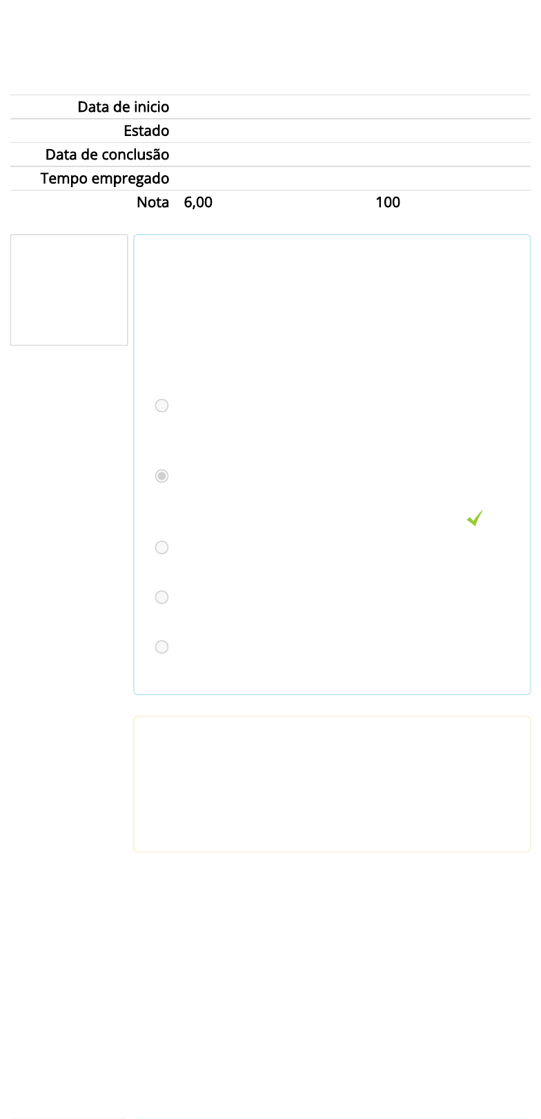 Questão 1 Correto Atingiu 0,60 de 0,60 Psicologia da Aprendizagem e do Desenvolvimento ► AVALIAÇÃO ► PROVA Data de inicio quinta, 12 Jan 2023, 14:36 Estado Finalizada Data de conclusão quinta, 12 Jan 2023, 15:10 Tempo empregado 33 minutos 41 segundos Nota 6,00 de um máximo de 6,00(100%) O animismo é uma das características vivenciadas entre os dois e seis anos de idade, aproximadamente. Sobre esse termo, leia as alternativas a seguir e assinale a alternativa correta: Escolha uma: a. A incapacidade de ter empatia, ou seja, de colocar-se no lugar do outro e compreender o seu ponto de vista. b. O animismo refere-se à vida que a criança dá as coisas ao seu redor. Bonecas, carrinhos e brinquedos possuem uma “alma humana”. c. O animismo é a consequência da incapacidade de elaborar sínteses. d. Nenhuma das alternativas anteriores está correta. e. O animismo se refere ao fato de criança ser animada e ser alegre. Sua resposta está correta. A resposta correta é: O animismo refere-se à vida que a criança dá as coisas ao seu redor. Bonecas, carrinhos e brinquedos possuem uma “alma humana”.. https://moodle.universoead.com.br/course/view.php?id=231 https://moodle.universoead.com.br/mod/quiz/view.php?id=3682 Questão 2 Correto Atingiu 0,60 de 0,60 Um dos conceitos desenvolvidos por Freud refere- se ao inconsciente. Sobre este termo, leia as alternativas a seguir e assinale a alternativa correta: Escolha uma: a. Refere-se ao que está latente, é regulado pelo princípio do prazer e é constituído por desejos em busca da satisfação. b. Formado por conteúdos e lembranças que se tornam conscientes pelo sujeito sem grande di�culdade. c. Funciona como censura, afastando da consciência determinados conteúdos desprazerosos emanados do inconsciente. d. Formado por ideias, pensamentos e percepções da realidade. e. Nenhuma das alternativas anteriores está correta. Sua resposta está correta. A resposta correta é: Refere-se ao que está latente, é regulado pelo princípio do prazer e é constituído por desejos em busca da satisfação.. Questão 3 Correto Atingiu 0,60 de 0,60 A segunda teoria do aparelho psíquico proposta por Freud abrange três instâncias: id, ego e superego. Sobre o id, leia as alternativas a seguir e assinale a alternativa correta: Escolha uma: a. Refere-se às informações que obtemos e mantemos em nossa lembrança, ou seja, os sentimentos e pensamentos dos quais temos consciência, o conhecimento imediato, e que fazem parte de nosso cotidiano. b. Funciona como instância crítica, controlando conteúdos provenientes do id, não aceitáveis no plano da consciência. Emerge do ego, não é consciente e surge em virtude da introjeção de normas e valores existentes na família e na cultura às quais o sujeito pertence. Tenta regular o con�ito de forças entre o id e o ego. c. Relacionado à consciência. Sua existência está conectada ao sistema perceptivo, recebe in�uência do mundo externo e das forças provenientes do id. Uma parte do ego é consciente (uma pequena parte) e outra é movida pela in�uência do inconsciente. d. Possui uma atividade inconsciente, é regido pelo princípio do prazer e impulsionado pela busca de satisfação. Instância psíquica menos acessível ao sujeito. e. Nenhuma das alternativas anteriores está correta. Sua resposta está correta. A resposta correta é: Possui uma atividade inconsciente, é regido pelo princípio do prazer e impulsionado pela busca de satisfação. Instância psíquica menos acessível ao sujeito. . Questão 4 Correto Atingiu 0,60 de 0,60 Uma das dimensões de análise da Psicologia do Desenvolvimento é a cognitiva. Sobre essa dimensão, leia as alternativas a seguir e assinale a alternativa correta: Escolha uma: a. São considerados o modo como o sujeito interage em sociedade, com seus pares. b. São considerados os afetos e modo como o sujeito se relaciona, emocionalmente com as demais pessoas. c. Nenhuma das alternativas anteriores está correta. d. São consideradas o modo como o sujeito aprende e pensa. e. São consideradas as características hereditárias, o crescimento físico e o desenvolvimento neuro�siológico. Sua resposta está correta. A resposta correta é: São consideradas o modo como o sujeito aprende e pensa. . Questão 5 Correto Atingiu 0,60 de 0,60 A teoria de Skinner foi amplamente utilizada na área da educação. Sobre a implicação da teoria de Skinner no mundo escolar, leia as alternativas a seguir e assinale a alternativa correta: Escolha uma: a. Educar é estabelecer comportamentos que serão vantajosos para o indivíduo em um tempo futuro. b. A educação e a cultura não mantém relação estreita na concepção de Skinner. c. Para Skinner, a aprendizagem ocorre de modo espontâneo ou natural. d. Nenhuma das alternativas anteriores está correta. e. A educação não é retratada na teoria de Skinner. Sua resposta está correta. A resposta correta é: Educar é estabelecer comportamentos que serão vantajosos para o indivíduo em um tempo futuro.. Questão 6 Correto Atingiu 0,60 de 0,60 Questão 7 Correto Atingiu 0,60 de 0,60 O surgimento do behaviorismo, enquanto teoria fundamenta-se em três bases fundamentais. Quais são essas bases? Leia as alternativas a seguir e assinale a alternativa correta: Escolha uma: a. Tradição Filosó�ca Objetivista e Mecanicista, Psicologia Animal e Psicologia Funcional. b. Psicologia Introspectiva, Tradição Filosó�ca Objetivista e Mecanicista e Psicologia Comportamental. c. Psicologia Animal; Psicologia Comportamental e Psicologia Funcional. d. Psicologia Comportamental, Psicologia Funcional e Psicologia Introspectiva. e. Nenhuma das alternativas anteriores está correta. Sua resposta está correta. A resposta correta é: Tradição Filosó�ca Objetivista e Mecanicista, Psicologia Animal e Psicologia Funcional.. A Psicologia do Desenvolvimento Humano considera o desenvolvimento do home, a partir, principal