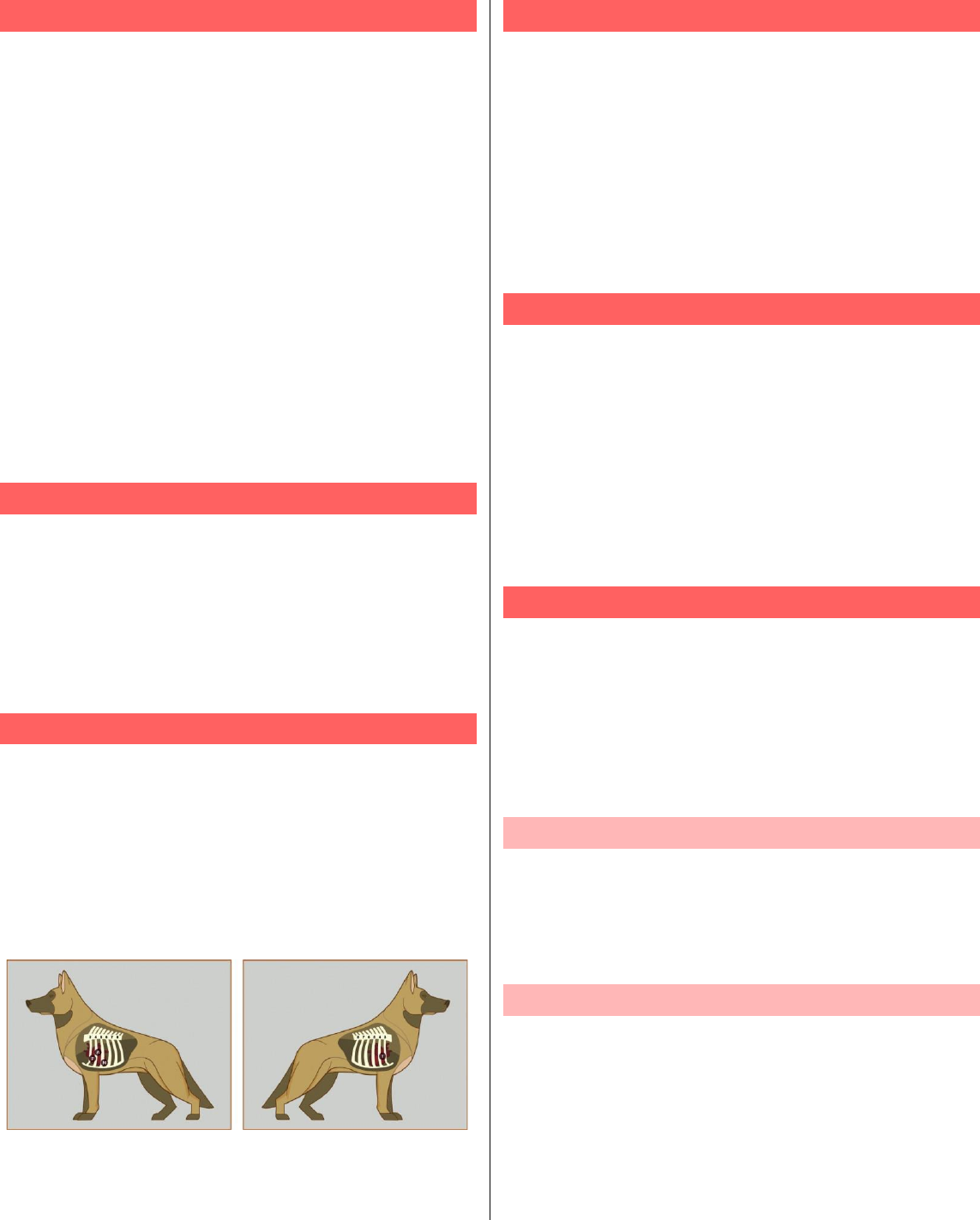 Módulo I Aula 3 @bgs_isa6 Semiologia do Sistema Cardiocirculatório ANAMNESE ❖ Identificação do animal: idade – filhotes (alterações congênitas), procedência – viagens, histórico ❖ Queixa principal: intolerância ao exercício, síncope, edema (ascite), dispneia e tosse ❖ Exame do estado geral: inspeção respiratória, escore de condição corpórea (ECC), alterações de postura e locomoção (andar arqueado), nível de consciência (oxigenação insuficiente), aumento abdominal (ascite) ❖ Exame das funções vitais: alterações em FC e FR ❖ Exame de mucosas: hipercoradas, hipocoradas (dependendo do grau de circulação do animal) EXAME DO CORAÇÃO ❖ Inspeção direta: pulsação cardíaca através do tórax ❖ Inspeção indireta: radiografia, ultrassom, ecocardiograma ❖ Palpação EXAMINAR ❖ Pulsação cardíaca: avaliar intensidade e posição ❖ Sensibilidade da região cardíaca: avaliar dor ou líquido na cavidade ❖ Frêmitos cardíacos: ruído + vibração. Avaliar se há vibração junto da respiração (pericardite e sopros) ALTERAÇÕES DE POSIÇÃO DO CHOQUE CARDÍACO ❖ Deslocamento cranial: ascite, massas ou neoplasias abdominais, fase final da gestação ❖ Deslocamento caudal: neoplasia no mediastino ❖ Deslocamento à direita: pneumotórax, abscessos, Dextrocardia congênita ❖ Deslocamento dorsal: abscessos ALTERAÇÕES DE INTENSIDADE DO CHOQUE CARDÍACO ❖ Diminuição real: insuficiência cardíaca ❖ Diminuição virtual: edema, enfisema subcutâneo, obesidade, derrame ❖ Aumento real: intoxicação digitálica, hipertensão arterial ❖ Aumento virtual: caquexia PERCUSSÃO ❖ Usar o método dígito-digital em pequenos animais ❖ É produzido um som maciço ❖ Serve para examinar se há aumento e posição cardíaca Aumento da área de percussão ❖ Real: hipertrofia, dilatação, pericardite ❖ Virtual: hepatização, tumores e abscessos no pulmão Diminuição da área de percussão ❖ Virtual: aumento da área pulmonar por enfisema Módulo I Aula 3 @bgs_isa6 RUÍDOS CARDÍACOS – SOPROS INTENSIDADE Características do sopro Grau 1 Sopro muito leve e identificado após longo tempo de ausculta Grau 2 Sopro suave, auscultando no foco/origem valvar Grau 3 Sopro de intensidade leve a moderada Grau 4 Sopro de intensidade moderada a grave e não há presença de frêmito Grau 5 Sopro evidente com presença de frêmito palpável. Não é identificado quando afastamos o estetoscópio do tórax Grau 6 Sopro grave com presença de frêmito detectável. É identificado mesmo quando o estetoscópio está longe do tórax Sopro: ❖ Ruído anormal produzido pelo coração. ❖ Resultado da passagem do sangue em uma região de menor diâmetro do orifício cardíaco Causas: ❖ Aumento da velocidade do fluxo sanguíneo ❖ Diminuição da viscosidade do sangue, devido à perda de células sanguíneas (anemia) ❖ Alteração no diâmetro do orifício EXAME DO SISTEMA VENOSO ❖ Em um estado normal, não há pulso intenso nas veias. Portanto, se houver a identificação de pulso em alguma veia, há alguma alteração ❖ Em cães de grande porte: veia cefálica é a melhor para coleta, já em gatos é indicada a veia jugular EXAME DO SISTEMA ARTERIAL ❖ Ocorre a dilatação da artéria durante a sístole ❖ Para pequenos animais: artéria femoral EXAME DO ESTADO CIRCULATÓRIO PERIFÉRICO ❖ Avaliação do tempo de preenchimento capilar (TPC) → deve-se considerar anemias e estado hídrico do paciente Módulo I Aula 3 @bgs_isa6 PERGUNTAS 1) Considerando a semiologia do sistema cardiovascular, identifique como verdadeiras (V) ou falsas (F) as seguintes afirmativas: I) A formação de uma depressão após a aplicação de pressão digital sobre uma área de tecido que apresenta aumento de volume é denominada sinal de Godet positivo e está relacionada a edema tecidual II) A cianose é um sinal patognomônico dos distúrbios respiratórios III) O pulso venoso jugular pode ser positivo (patológico) ou negativo (fisiológico) a) V – F – V b) V – F – F c) F – V – F d) F – F – V 2) Os seguintes sinais/sintomas podem ser causados pela endocardiose de mitral em cães, EXCETO: a) Intolerância ao exercício b) Sopro cardíaco diastólico c) Sincope d) Taquicardia 3) A ausculta cardíaca é um dos principais momentos do exame clinico cardiovascular. Para que seja bem realizada é necessário o uso de estetoscópio sensível, ambiente silencioso e cooperação do paciente e do tutor. Sobre o uso correto do estetoscópio e técnica de ausculta é INCORRETO afirmar que: a) O uso do diafragma atenua ruídos de baixa frequência, selecionando a transmissão de ruídos de alta frequência b) O posicionamento do animal deve ser o mais confortável possível para que ele se torne mais cooperante, ou seja, em estação, deitado ou sentado c) O foco mitral está localizado no cão no 5° espaço intercostal esquerdo abaixo da junção costocondral d) O lado de auscultação não influencia os focos de análise, podendo ser utilizado tanto o lado direito quanto o lado esquerdo para a auscultação dos focos mitral e tricúspide 4) Sabe-se que o sopro é um ruído anormal produzido pelo coração, resultando da passagem do sangue em uma região de menor diâmetro do orifício cardíaco, como uma válvula, por exemplo. Com base nessas informações e em seus conhecimentos, assinale a alternativa INCORRETA quanto às causas do sopro cardíaco: a) Aumento da velocidade do fluxo sanguíneo b) Diminuição da viscosidade do sangue, devido à perda de células sanguíneas como anemia c) Alteração no diâmetro do orifício por onde o sangue é conduzido d) A percussão é um método de diagnostico de sopro cardíaco em pequenos animais, sendo muito utilizado na rotina do atendimento clinico Módulo I Aula 3 @bgs_isa6 5) Para o exame do sistema venoso/arterial em cães e gatos, leia as alternativas e assinale a INCORRETA: a) Em um estado nor