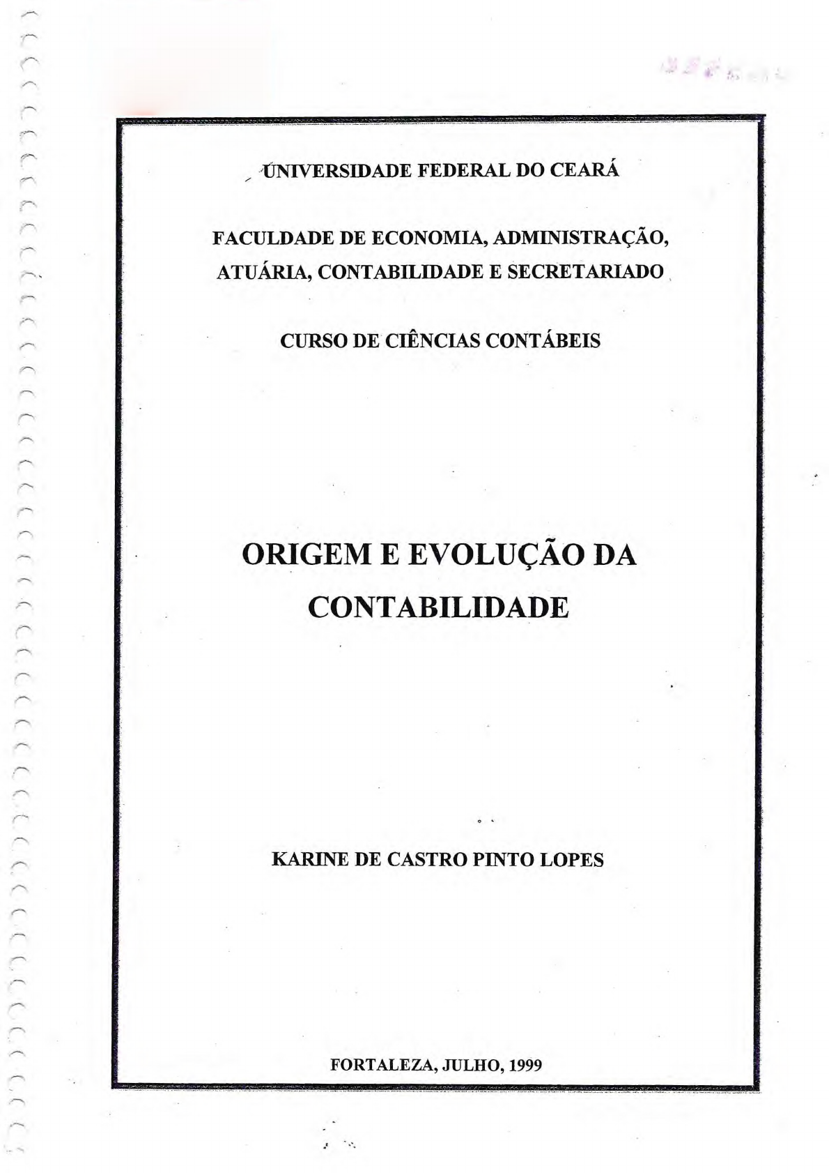 tNIVERSIDADE FEDERAL DO CEARÁ FACULDADE DE ECONOMIA, ADMINISTRAÇÃO, ATUÁRIA, CONTABILIDADE E SECRETARIADO CURSO DE CIÊNCIAS CONTÁBEIS ORIGEM E EVOLUÇÃO DA CONTABILIDADE KARINE DE CASTRO PINTO LOPES FORTALEZA, JULHO, 1999 ORIGEM E EVOLUÇÃO DA CONTABILIDADE KARINE DE CASTRO PINTO LOPES Orientadora: M a DAS GRAÇAS ARRAIS DE ARAÚJO / Monografia apresentada à Faculdade de Economia, Administração, Atuária, Contabilidade e secretariado, para obtenção do grau de Bacharel em Ciências Contábeis. FORTALEZA — CE 1999 i Esta monografia foi submetida à Coordenação do Curso de Ciências Contábeis, como parte dos requisitos necessários à obtenção do título de Bacharel em Ciências Contábeis, outorgado pela Universidade Federal do Ceará — UFC e encontra-se à disposição dos interessados na Biblioteca da referida Universidade. A citação de qualquer trecho desta monografia é permitida, desde que feita de acordo com as normas de ética científica. Karine de Castro Pinto Lopes Maria das Graças Arrais de Araújo Prof. Orientadora Membro dai Banca Examinadora Membro da Banca Examinadora Monografia aprovada em )0 de de s c( AGRADECIMENTOS À Deus, que sempre me ajuda e me guia. Aos meus pais, nos quais me espelho por sua honestidade e sabedoria. Aos meus amigos, e em especial a minha amiga Esther, que muito me apoiou. À todos os meus professores, principalmente, a minha orientadora e professora M a das Graças Arrais Araújo, por sua paciência e confiança. SUMÁRIO AGRADECIMENTOS I SUMÁRIO II RESUMO III INTRODUÇÃO 01 1. DIVISÃO DA HISTÓRIA DA CONTABILIDADE 03 1.1 Fundamentos da divisão dos períodos 03 1.2 Períodos principais da história da contabilidade 03 1.3 Imprecisão das datas 04 1.4 Outras classificações dos períodos 05 2. A CONTABILIDADE NA ANTIGUIDADE 07 2.1 Considerações Gerais 07 2.2 Suméro-babilônios 07 2.3 Os Elemitas 08 2.4 Os Egípcios 09 2.5 Os Cretenses 10 2.6 Os Gregos 11 2.7 Os Romanos 12 3. IDADE MÉDIA 15 3.1 Considerações Gerais 15 3.2 Método das Partidas Simples 16 4. MÉTODO DAS PARTIDAS DOBRADAS 17 4.1 Considerações Gerais e Sistematização do Método 17 5. PERÍODO MODERNO 19 5.1 Aspectos Gerais 19 5.2 Características do Período Pré-Científico 20 5.3 Contribuições. Relevantes 20 5.4 A Fase Final do Período Pré-Científico 23 6. PERÍODO CIENTÍFICO 25 6.1 Introdução à Ciência 25 6.2 A História das Principais Doutrinas, Escolas e Correntes e suas Metodologias 25 6.2.1 0 Material Substancial 26 6.2.2 Personalismo 27 6.2.3 0 Controlismo 27 6.2.4 O Reditualismo 28 6.2.5 O Aziendalismo 29 6.2.6 O Patrimonialismo 30 7. ATUALIDADE 32 7.1 Uma Visão Crítica 32 7.2 0 Futuro e os Computadores 32 8. O BRASIL E A CONTABILIDADE 34 8.1 Considerações Gerais 34 8.2 As Faculdades de Ciências Contábeis 34 8.3 Perspectivas da profissão Contábil no Brasil 35 CONCLUSÃO 36 REFERÊNCIAS BIBLIOGRÁFICAS 37 RESUMO A Contabilidade nasceu com a civilização e jamais deixará de existir em decorrência dela; talvez, por isso, seus progressos quase sempre tenham coincidido com aqueles que caracterizam os da própria evolução do ser humano. A História da Contabilidade divide-se, pois, em nítidos períodos, cada um servindo de base para demarcar as evoluções, embora a maior parte do saber se tenha situado, apenas, no campo dos que a humanidade atribuiu à escrita, como arte, e ao poder de memória gravado que ela ofereceu como fonte de evidência, controle, base de decisão e prova. Como em todos os ramos do conhecimento humano, também, na Contabilidade, a ciência construiu-se de teorias, portanto, não se pode negar a relevante formação de doutrinas, escolas matrizes e escolas derivadas, tão como de correntes que somam às escolas dentro de uma unidade de pensamentos. Entre as principais, destacam-se, a partir do Contismo, as seguintes: Materialismo substancial, Personalismo, Controlismo, Reditualismo, Aziendalismo e o Patrimonialismo. Todas essas tendências do pensamento contábil preocuparam-se em situar a verdadeira matéria de estudos da Contabilidade e a classificação desta no mundo científico: Diversos fatores trouxeram expressivas transformação no conhecimento contábil, influindo sobre a história da Contabilidade, no século XX. Entre outros, temos os seguintes: o advento da Informática e da Telemática, paralelamente ao grande progresso tecnológico; a dilatação do estudo contábil, a aceleração expressiva da pesquisa, a utilização do ensino universitário, etc. Tal história continua sendo construída e seu futuro célere, cada vez mais evidenciando a utilidade de tal conhecimento. INTRODUÇÃO A palavra CONTABILIDADE vem do termo latino COMPUTABILIS, que significa contábil, calculável, computável, orçamentável. Não é descabido afirmar que a noção de conta e, portanto, de Contabilidade seja, talvez, tão antiga quanto a origem do Homo Sapiens. Alguns historiadores fazem remontar os primeiros sinais objetivos da existência de contas aproximadamente a 4.000 anos a.C. Entretanto, antes disto, o homem primitivo, ao inventariar o número de instrumentos de caça e pesca disponíveis, ao contar seus rebanhos, já estava praticando uma forma rudimentar de Contabilidade. Na invenção da escrita, a representação dos números normalmente tem sido uma precedência histórica. Logo, é possível localizar os primeiros exemplos completos de Contabilidade, seguramente no quarto milênio antes de Cristo, entre a civilização sumério- babilônica. Mas é possível que algumas formas rudimentares de contagens de bens tenham sido realizadas bem antes disto, talvez por volta do sexto milênio antes de Cristo. É claro que a Contabilidade teve evolução relativamente lenta até o aparecimento da moeda. Na época da troca pura e simples de mercadorias, os negociantes anotavam as obrigações, os direitos e os bens perante terceiros, porém, obviamente, tratava-se de um mero elenco de inventário fis