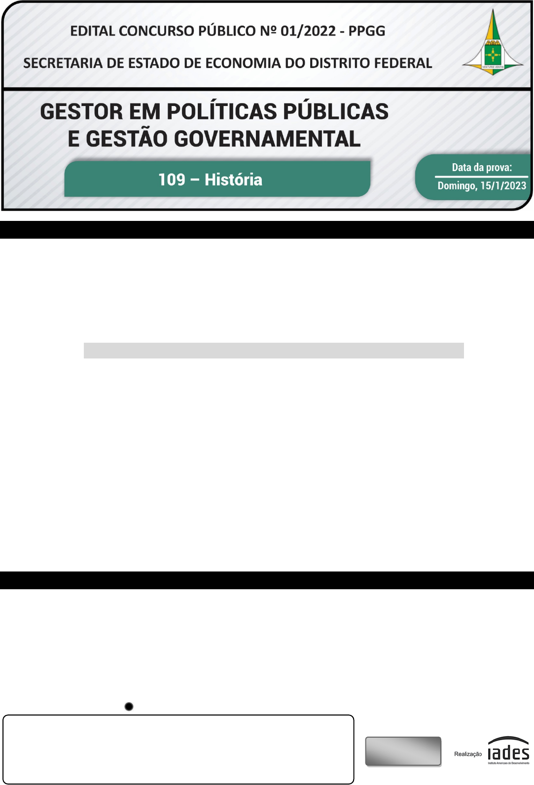 PR OV A A PL IC AD A Tipo “U” I N S T R U Ç Õ E S Você receberá do fiscal: o 1 (um) caderno de questões das provas objetiva e discursiva contendo 60 (sessenta) questões de múltipla escolha, com 5 (cinco) alternativas de resposta cada uma e apenas 1 (uma) alternativa correta, e 1 (uma) questão discursiva; o 1 (uma) folha de respostas personalizada da prova objetiva; e o 1 (uma) folha de texto definitivo da prova discursiva. Quando autorizado pelo fiscal do IADES, no momento da identificação, escreva no espaço apropriado da folha de respostas da prova objetiva, com a sua caligrafia usual, a seguinte frase: Para viajar basta existir. Verifique se estão corretas a numeração das questões e a paginação do caderno de questões, bem como a codificação da folha de respostas da prova objetiva e da folha de texto definitivo da prova discursiva. Você dispõe de 4 (quatro) horas e 30 (minutos) para fazer as provas objetiva e discursiva e deve controlar o tempo, pois não haverá prorrogação desse prazo. Esse tempo inclui a marcação da folha de respostas da prova objetiva e o preenchimento da folha de texto definitivo da prova discursiva. Somente 1 (uma) hora após o início da prova, você poderá entregar sua folha de respostas da prova objetiva, a folha de texto definitivo da prova discursiva e o caderno de questões, bem como retirar-se da sala. Você somente poderá retirar-se do local de aplicação das provas levando o caderno de questões quando faltar 1 (uma) hora para o final do tempo destinado à realização das provas objetiva e discursiva. Após o término da prova, entregue ao fiscal do IADES a folha de respostas da prova objetiva, devidamente assinada, e a folha de texto definitivo da prova discursiva. Deixe sobre a carteira apenas o documento de identidade e a caneta esferográfica de tinta preta, fabricada com material transparente. Não é permitida a utilização de nenhum aparelho eletrônico ou de comunicação. Não é permitida a consulta a livros, dicionários, apontamentos e (ou) apostilas. Você somente poderá sair e retornar à sala de aplicação de provas na companhia de um fiscal do IADES. Não será permitida a utilização de lápis em nenhuma etapa da prova. I N S T R U Ç Õ E S P A R A A S P R O VA S O B J E T I V A E D I S C U R S I V A Verifique se os seus dados estão corretos na folha de respostas da prova objetiva e na folha de texto definitivo da prova discursiva. Caso haja algum dado incorreto, comunique ao fiscal. Leia atentamente cada questão e assinale, na folha de respostas da prova objetiva, uma única alternativa. A folha de respostas da prova objetiva e a folha de texto definitivo da prova discursiva não podem ser dobradas, amassadas, rasuradas ou manchadas e nem podem conter nenhum registro fora dos locais destinados às respostas. O candidato deverá transcrever, com caneta esferográfica de tinta preta, as respostas da prova objetiva para a folha de respostas e o texto definitivo da prova discursiva para a folha de texto definitivo. A maneira correta de assinalar a alternativa na folha de respostas da prova objetiva é cobrir, fortemente, com caneta esferográfica de tinta preta, o espaço a ela correspondente. Marque as respostas assim: PR OV A A PL IC AD A PÁGINA 2/18 GESTOR EM POLÍTICAS PÚBLICAS E GESTÃO GOVERNAMENTAL 109 – HISTÓRIA – TIPO “U” CONCURSO PÚBLICO – PPGG P R O V A O B J E T I V A CONHECIMENTOS GERAIS Questões de 1 a 30 LÍNGUA PORTUGUESA Questões de 1 a 10 Texto para responder às questões de 1 a 3. As narrativas críticas construídas para a judicialização da saúde 1 4 7 10 13 16 19 22 25 28 31 34 37 40 43 46 47 A repercussão que a judicialização da saúde alcançou em âmbito político e institucional se reflete no âmbito acadêmico. São numerosas e variadas as reflexões e pesquisas acadêmicas acerca do tema, de forma que há considerável produção tanto no aspecto quantitativo quanto no aspecto qualitativo, o que transparece na dedicação consistente de alguns pesquisadores ao tema ao longo de vários anos. As pesquisas acadêmicas têm recebido influência e têm influenciado iniciativas institucionais e a atividade adjudicativa. Os estudos acadêmicos a respeito da judicialização da saúde têm enfatizado, de forma mais constante, o lado negativo da judicialização da saúde. Entre os efeitos negativos destacados, estão: o comprometimento da governabilidade e da gestão da saúde; e o aprofundamento de iniquidades de acesso, em razão do privilégio obtido por segmentos e indivíduos com maior poder de reivindicação. De outro lado, tal visão seria temperada por outros pesquisadores, que reconhecem nas deficiências ou insuficiências do Sistema Único de Saúde (SUS) um fator que conduz à judicialização. Dessa forma, se reconhecia que o aumento da atuação do sistema de justiça, embora tenha repercussões na gestão e influencie tomadas de decisões, ao menos em parte era decorrência das deficiências da própria Administração Pública. Desde então, tem ganhado ainda mais força a visão de que há uma judicialização excessiva, e, assim, a ideia de judicialização da saúde foi sendo gradativamente reduzida para se referir, em geral, a uma distorção que tem duas principais faces: o excesso de ações e o descabido protagonismo da magistratura e do Poder Judiciário. Como bem destacou-se na preleção de abertura do 1o Encontro do Fórum Nacional da Saúde, vulgarizou-se a ideia de que “o Poder Judiciário estaria se metendo no que não deve”. Já naquele momento, chamava-se atenção para o fato de que a ideia de judicialização possui uma conotação mais ampla, como, por exemplo, a aplicação dos métodos ou modelos judiciais de solução de controvérsias. A crítica à judicialização da saúde, embora tenha se tornado a regra, não é uniforme em seus argumentos. Ademais, é raro encontrar quem rejeite peremptoriamente a importância 