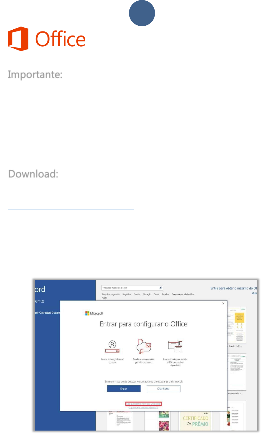 1 Download: Como instalar o Microsoft Office 2021 Pro Plus Importante: Havendo qualquer versão do Office instalado, será necessário a desinstalação. O download contendo a última versão é obrigatório, sua licença é exclusiva para essa versão. Sua licença é definitiva, individual e intransferível. A chave do produto é válida somente para um (1) dispositivo. Utilizando o link abaixo você será direcionado para o download do Microsoft Office Professional Plus 2021. Caso queira baixar no site oficial da Microsoft clique aqui, ou baixe no link abaixo https://microsoft.costlem.com/office21 Após instalação, digite Word no menu iniciar para abrir o Office. Instalação Clique no texto sublinhado em vermelho: “Não quero entrar nem criar uma conta” http://officecdn.microsoft.com.edgesuite.net/db/492350F6-3A01-4F97-B9C0-C7C6DDF67D60/media/pt-br/ProPlus2021Retail.img 2 Entre com a chave do produto no campo solicitado Após digitar a chave clique em Ativar o Office. Clique em, Aceitar e iniciar o Word 3 Com o Assistente aberto, marque a opção: Desejo ativar o software por telefone. OBS: Se a tela acima não surgir automaticamente, abra um novo documento no seu WORD, clique em Arquivo (Fica no canto superior esquerdo) , depois em conta. E clique em ativar Produto. Mantenha o Assiste aberto durante todo processo. Na (Etapa 2) do Assistente você encontra a ID de instalação. Siga o próximo passo para ativar no site Microsoft 4 Digite a ID da Etapa 2 no site abaixo: https://ativar.costlem.com Digitar a ID da Etapa 2 no site acima, confira se está digitando corretamente. https://ativar.costlem.com/ Line FreeText Digitar os numeros que aparecem no seu Office ! Este é só um exemplo ! Line Line 5 Após o processo acima seu Office estará ativado, reinicie o computador para que as alterações tenha efeito. OBS: Caso houver qualquer dificuldade nosso suporte técnico Está a disposição WhatsApp: 11 99591-1931