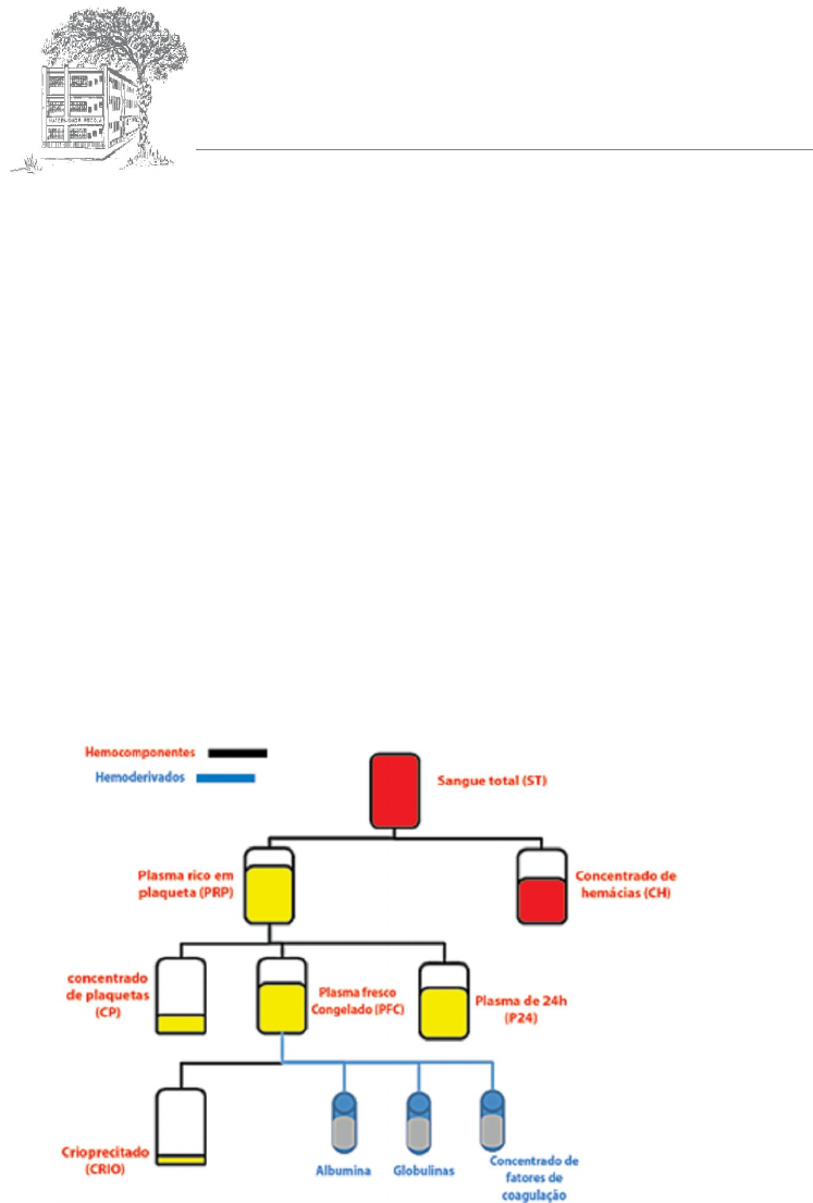 1 Hemocomponentes e hemoderivados são produtos distintos. Os produtos gerados um a um nos serviços de hemoterapia, a partir do sangue total, por meio de processos físicos (centrifugação, congelamento) são denominados hemocomponentes. Já os produtos obtidos em escala industrial, a partir do fracionamento do plasma por processos físico-químicos são denominados hemoderivados. A figura 1 apresenta os produtos originados a partir do sangue total. Existem duas formas para obtenção dos hemocomponentes. A mais comum é a coleta do sangue total. A outra forma, mais especifica e de maior complexidade, é a coleta por meio de aférese. O processamento é feito por meio de centrifugação refrigerada, por processos que minimizam a contaminação e proliferação microbiana, nos quais se separa o sangue total em hemocomponentes eritrocitários, plasmáticos e plaquetários. Figura 1 – Produtos originados do Sangue Total Fonte: Ministério da Saúde, 1998. ENFERMAGEM ROTINA DE HEMOCOMPONENTES Rotinas Assistenciais da Maternidade Escola da Universidade Federal do Rio de Janeiro 2 PREENCHIMENTO DA REQUISIÇÃO DE TRANSFUSÃO (Equipe Médica) A solicitação de hemocomponentes deverá ser realizada em formulário específico em duas vias, com letra legível, contendo obrigatoriamente o preenchimento dos seguintes espaços: o Nome completo do paciente sem abreviatura. o Número do prontuário do paciente. o Data de nascimento ou idade. o Sexo. o Localização completa (Posto ou andar, enfermaria e leito). o Peso. o Diagnóstico do paciente (Doença de base). o Indicação de transfusão. o Hemocomponentes solicitados (tipo e quantidade). o Tipo de transfusão*. o Exames. o História transfusional e antecedentes de importância para o ato transfusional. o Data e hora do pedido. o Assinatura e carimbo com nome e número legível do CRM do medido solicitante. O preenchimento destes campos de forma incompleto, inadequado ou ilegível não será aceito pelo Serviço de Hemoterapia, podendo retardar o atendimento ao paciente. TIPOS DE TRANSFUSÃO Rotina: a transfusão pode ocorrer dentro de um período de 24h. Reserva cirúrgica: necessidade de hemocomponentes à disposição para o procedimento a ser realizado. Programada: para determinado dia e hora. Urgência: quando a transfusão tem que ser iniciada num período de até 3 horas. Emergência: quando qualquer retardo na administração da transfusão pode acarretar risco para a vida do paciente. COLETA DA AMOSTRA DE SANGUE Etiqueta: Nome completo. Prontuário. Localização. Data. Identificação do coletor. Responsáveis pela coleta da amostra: Centro Obstétrico: equipe da obstetrícia e de enfermagem. Alojamento Conjunto: agência transfusional. Unidade Neonatal: neonatologia. Ambulatório: Laboratório Emergência Obstétrica: agência transfusional. 3 ADMINISTRAÇÃO DE HEMOCOMPONENTES (Equipe de Enfermagem) TEMPO DE ADMINISTRAÇÃO o O tempo para infusão de qualquer hemocomponente (hemácia, plaqueta, plasma, crioprecipitado) não deve exceder o prazo de quatro horas. Quando esse período for ultrapassado a transfusão deverá ser interrompida e a unidade descartada. o O tempo médio adequado para a administração da transfusão em pacientes hemodinamicamente estáveis é: Hemácia (pacientes estáveis): 90 - 120 minutos/unidade. Plaquetas: 30 - 60 minutos/unidade. Plasma e Crioprecipitado: 30 – 60 minutos/unidade. o O tempo para infusão do hemocomponente prescrito depende da condição individual de cada paciente, e deverá ser especificado na prescrição pelo médico solicitante, uma vez que a infusão rápida pode causar sobrecarga de volume em pacientes instáveis (especialmente pacientes pediátricos ou idosos). o Recomenda-se o início imediato da transfusão, pois existe o risco de proliferação bacteriana ou perda da função do hemocomponente. ADIÇÃO DE MEDICAÇÃO: o Nenhum medicamento pode ser adicionado à bolsa do hemocomponentes, nem ser infundido em paralelo (no mesmo acesso venoso). o Os CHs podem ser transfundidos em acesso venoso compartilhado, APENAS, com soro fisiológico 0,9%. o Exemplo: soluções de glicose 5% podem causar hemólise das hemácias, soluções de Ringer Lactato podem ocasionar formação de coágulos pela presença de cálcio. EQUIPO DE TRANSFUSÃO: o Para a transfusão de qualquer hemocomponente, é obrigatório o uso de equipos próprios para transfusão. Este equipo possui malha no seu interior (filtro para microagregado, com poros que variam de 170 a 260 micra de diâmetro), capazes de reter pequenas partículas (debris celulares) que se formam durante a estocagem do produto. o O equipo de transfusão deve ser preenchido com o próprio hemocomponente antes do início da transfusão. o Em pacientes adultos, são utilizados os equipos próprios para transfusão no paciente, via gravitacional. Em recém-nascidos, recomenda-se a filtragem do hemocomponente em equipo próprio para transfusão. Em seguida o hemocomponente é transferido para uma seringa e perfusor, a fim de que seja administrado por uma bomba de seringa. CONFERÊNCIAS ANTES DA INSTALAÇÃO DO HEMOCOMPONENTE o O profissional que irá administrar o hemocomponente é a ultima barreira para detecção de erros antes da transfusão. Uma vez identificada qualquer discrepância, o processo de instalação deve ser retardado e a transfusão não pode ser iniciada. o A identificação e as informações registradas na prescrição devem ser conferidas e os dados devem ser confrontados com o hemocomponente preparado. Nota: A transfusão de sangue para o paciente errado é o mais importante erro evitável da transfusão e tipicamente é resultado de erro feito durante a conferência à beira do leito. 4 CONFERÊNCIA NO POSTO DE ENFERMAGEM o Confrontar HEMOCOMPONENTE com PRESCRIÇÃO e REQUISIÇÃO DE TRANSFUSÃO. o Nome completo, prontuário, Tipo de componente, Nº de unidades (volume). o Observar alguns cuidados especiais (lavado, desle