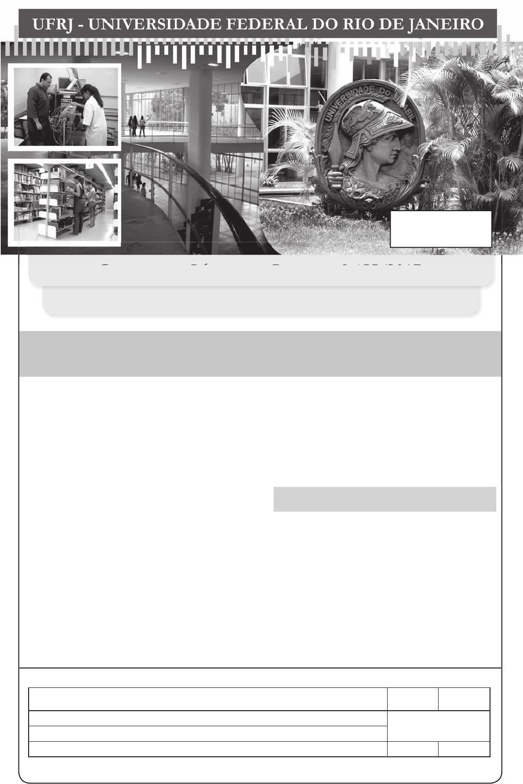 prova objetiva Técnico de Laboratório / Biotério Cronograma Previsto - Prova Objetiva Leia com atenção as Instruções 1. Você recebeu do fi scal um cartão de respostas da prova objetiva e este caderno de questões que contém 50 (cinquenta) questões objetivas. 2. É sua responsabilidade verifi car se o nome do cargo informado neste caderno de questões corresponde ao nome do cargo informado em seu cartão de respostas. 3. Você dispõe de 4 (quatro) horas para realizar a prova, incluindo o preenchimento do cartão de respostas. 4. Somente depois de decorrida uma hora do início da prova, o candidato poderá retirar-se da sala de prova em caráter defi nitivo, obrigatoriamente entregando ao fi scal de sala todo o material de prova recebido. 5. Somente será permitido ao candidato levar seu caderno de questões quando faltar uma hora para o término do tempo estabelecido para a prova. 6. É terminantemente vedado copiar respostas, em qualquer fase do concurso público. 7. Os 3 (três) últimos candidatos de cada sala somente poderão ser liberados juntos. 8. Se você precisar de algum esclarecimento, consulte o fi scal. Somente após autorização para o início da prova: 1. Verifi que, neste caderno de questões, se a numeração das questões e a paginação estão corretas. 2. Verifi que, no cartão de respostas, se existem espaços sufi cientes para a marcação das respostas de todas as questões objetivas existentes neste caderno de questões. 3. Transcreva a frase abaixo, utilizando letra cursiva, no espaço reservado no seu cartão de respostas. "O impossível não é um fato: é uma opinião." Mario Sergio Cortella Atividade Início Término Publicação das Provas Objetivas - Internet 05/02/2018 Publicação dos gabaritos preliminares das Provas Objetivas - Internet Interposição de Recurso contra os gabaritos preliminares das Provas Objetivas - Internet 06/02/2018 08/02/2018 Consulte o cronograma completo em http://concursos.pr4.ufrj.br Concurso Público - Edital nº 455/2017Concurso Público - Edital nº 455/2017 C-306 3 Concurso Público UFRJ - Edital 455/2017 C-306 | Técnico de Laboratório - Biotério LÍNGUA PORTUGUESA TEXTO 1 Conceição Lima nasceu em 1961, na ilha de São Tomé, em São Tomé e Príncipe, país africano de língua portuguesa que se tornou independente de Portugal em 1975, após 500 anos de colonização. Ela cresceu em meio às lutas políticas pela indepen- dência de seu país. Formada pelo King’s College de Londres, Conceição é jornalista e trabalha para a BBC. Conceição Lima Certos pequenos tiranos “A certos pequenos tiranos comove-os o enigma na pétala de uma orquídea e o langor1 da linha na palma da própria mão. Algures2, um estranho brinquedo falece na secretária onde existem. Por vezes articulam breves sentenças e estão sempre em atritos com o mesmo orçamento. Mas crêem no amparo de feitiços e amuletos e segregam uma teia de invencível apatia que tolhe as impressoras, as portas dos armários e contrai as linhas das quatro paredes. Porque os emociona a própria bondade tomam por amor a vénia3 dos vassalos4 os pequenos tiranos que publicam altos amigos como títulos de jornal e distribuem grãos de favor como quem outorga um foral. São meticulosos no arrumar dos papéis pois na simetria das coisas enterram a luz das ideias. Mortifica-os a idade, são hipocondríacos e só por distracção morrerão em África. (...)” 1 Languidez 2 Em algum Lugar 3 Reverência 4 Subordinado, submisso 1. Nesse belo poema, a autora são-tomense refere-se à: A) fragilidade, à superstição, à insegurança de jovens gestores. B) distração, à sensibilidade, à arbitrariedade dos gestores públicos velhos. C) grandeza, à estupidez, às contradições da administração pública. D) infantilidade, à inocência, à ingenuidade dos burocratas. E) arbitrariedade, ao anacronismo, à arrogância dos burocratas. 2. Assinale a alternativa com os versos que sinteti- zam a posição que tomam os burocratas no con- flito entre a estreiteza tacanha da burocracia e a generosidade do pensamento livre. A) “A certos pequenos tiranos / comove-os o enigma na pétala de uma orquídea”. B) “Mortifica-os a idade, são hipocondríacos / e só por distracção morrerão em África”. C) “Por vezes articulam breves sentenças / e estão sempre em atritos com o mesmo orça- mento”. D) “e distribuem grãos de favor como quem outor- ga um foral”. E) “São meticulosos no arrumar dos papéis / pois na simetria das coisas enterram a luz das ideias”. 3. Leia o trecho a seguir: “Porque os emociona a própria bondade tomam por amor a vénia dos vassalos” Nesses versos sobressai uma característica dos “certos pequenos tiranos”. Marque a alterna- tiva que apresenta tal característica. A) Vaidade. B) Bondade. C) Solidariedade. D) Sinceridade. E) Iniquidade. 4. Nessa mensagem poético-social de Conceição Lima há tinturas evidentes de ironia. Marque a alternativa em que elas NÃO aparecem: A) “Certos pequenos tiranos”. B) “… e só por distracção morrerão em África”. C) “… e estão sempre em atritos com o mesmo orçamento”. D) “… e segregam uma teia de invencível apatia”. E) “Porque os emociona a própria bondade”. 5. Leia o trecho a seguir: “A certos pequenos tiranos comove-os o enig- ma na pétala de uma orquídea e o langor da linha na palma da própria mão.” O termo em destaque nesses versos foi utiliza- do como um recurso de coesão textual e refere-se: A) ao enigma. B) ao langor da linha. C) a certos pequenos tiranos. D) a certos. E) à pétala de uma orquídea. 6. O texto adiante é um fragmento do romance Infância, de Graciliano Ramos, publicado em 1945. Leia-o e responda à questão proposta. 4 Concurso Público UFRJ - Edital 455/2017 C-306 | Técnico de Laboratório - Biotério TEXTO 2 “Poder ser alguém em uma sociedade, para mui- tas pessoas sempre esteve ligado ao fato de ter co- nheci
