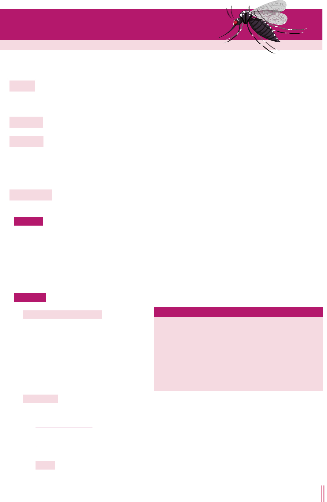 Vitória Farias ARBOVIROSES DENGUE, ZIKA, CHIKUNGUNYA Dengue ♥ Patógeno: Arbovírus do gênero Flavivírus, da família Flaviviridae, do qual existem quatro sorotipos: DEN-1, DEN-2, DEN-3 e DEN-4. O DENV- 2 é o sorotipo mais relevante no mundo, seguido pelo DENV-3, DENV-1 e DENV-4. A infecção por um deles confere proteção permanente para o mesmo sorotipo e imunidade parcial e temporária contra os outros três. ♥ Transmissão: Picada de mosquitos do gênero Aedes. No Brasil, duas espécies estão hoje instaladas: Aedes aegypti e Aedes albopictus. ♥ Sazonalidade: Sazonalidade se refere a uma época determinada do ano. E essas são doenças que sofrem bastante influência da sazona- lidade, porque com os períodos chuvosos e quentes, especialmente no verão, formam-se os reservatórios naturais, propícios para a multiplicação, para oviposição da fêmea, com o acúmulo de água. Com a temperatura mais quente, o ciclo pode ser reduzido em cinco dias, porque a temperatura ideal para a eclosão dos ovos é entre 25ºC e 29ºC. Então, nessa época, tem várias gerações do mosquito ao mesmo tempo. ♥ Espectro clínico: Pode ser assintomática ou sintomática, a qual varia de formas oligossintomáticas até quadros graves que pode levar a óbito. 1. FASE FEBRIL ▬ Febre alta (39ºC – 40ºC), com duração de 2-7 dias, início abrupto, associada à cefaleia, adinamia, mialgia, artralgia, dor retro- orbitária. ▬ Exantema predominantemente maculopapular, em face, tronco e membros, não poupando porção plantar e palmar, com ou sem prurido → Em geral, após a febre e em cerca de 50% dos casos. “Ilhas vermelhas em um mar branco” ▬ Anorexia, náusea e vômito, em alguns casos. ▬ Diarreia → Não é volumosa, fezes pastosas, frequência de 3-4 evacuações/dia – diagnóstico diferencial das gastroenterites. 2. FASE CRÍTICA: Começa com a defervêscência da febre entre 3º e 7º dia do início da doença, associada à sinais de alarme. 2.1. DENGUE COM SINAIS DE ALARME: A tempestade de citocinas, ativação do complemento, formação de anti- corpos contra o NS1 e viremia provocam uma intensa reação inflamatória, com consequente injúria endote- lial, o que leva ao aumento da permeabilidade vascular, com consequente extravasamento de plasma, o qual causa os sinais de alarme e marca o início do deterio- ramento clínico do paciente e sua possível evolução para o choque por extravasamento de plasma. 2.2. DENGUE GRAVE: O extravasamento de plasma pode levar ao choque e acúmulo de líquidos com desconforto respiratório, sangramento grave (plaquetopenia) ou sinais de disfunção orgânica como o coração, pulmões, rins, fígado, SNC. ▬ Derrame pleural + ascite: Clinicamente detectáveis, em função da intensidade do extravasamento e da quantidade excessiva de fluidos infundidos. ▬ Extravasamento plasmático: Gera aumento do hematócrito (quanto maior sua elevação maior será a gravidade), redução dos níveis de albumina e pode ser visto em exames de imagem. 2.2.1. CHOQUE: Ocorre entre 4º e 5º dia, quando um volume crítico de plasma é perdido através do extravasamento, é precedido por sinais de alarme. O período de extravasamento plasmático e choque leva de 24 a 48 horas, levando a rápidas alterações SINAIS DE ALARME » Dor abdominal intensa (referida ou à palpação) e contínua; » Vômitos persistentes (extravasamento plasmático → hipoperfusão do TGI → isquemia → ↓ motilidade GI) » Acúmulo de líquidos (ascite, derrame pleural, derrame pericárdico); » Hipotensão postural/lipotimia; » Hepatomegalia (>2cm do rebordo costal); » Sangramento de mucosa; » Letargia/irritabilidade; » Aumento do hematócrito (extravasamento plasmático → ↓ plasma + ↑ viscosidade devido à ↑ [hematócrito] Vitória Farias hemodinâmicas. O choque na dengue é de rápida instalação e tem curta duração. Podendo levar o paciente ao óbito em um intervalo de 12 a 24 horas ou a sua recuperação rápida, após terapia antichoque apropriada. O choque prolongado e a consequente hipoperfusão de órgãos resultam no comprometimento progressivo destes, bem como em acidose metabólica e coagulação intra- vascular disseminada. Isso, por sua vez, pode le- var a hemorragias graves, causando diminuição de hematócrito agravando ainda mais o choque. Podem ocorrer alterações cardíacas graves (in- suficiência cardíaca e miocardite), manifes- tando-se com redução de fração de ejeção e choque cardiogênico. Síndrome da angústia res- piratória, pneumonites e sobrecargas de volume podem ser a causa do desconforto respiratório. 2.2.2. HEMORRAGIAS GRAVES: Em alguns casos pode ocorrer hemorragia massiva sem choque prolongado e este sangramento mas- sivo é critério de dengue grave. Este tipo de hemorragia, quando é do aparelho digestivo, é mais frequente em pacientes com histórico de úlcera péptica ou gastrites, assim como também pode ocorrer devido a ingestão de AAS, AINEs e anticoagulantes. Estes casos não estão obrigatoriamente associados à trombocitopenia e hemoconcentração. A lesão hepática provocada pela replicação viral nos hepatócitos leva a um comprometimento dos fatores de coagulação, que associado à diminuição de plaquetas, pode ocasionar um quadro hemorrágico grave. 2.2.3. DISFUNÇÃO GRAVES DE ÓRGÃOS: O grave comprometimento orgânico, como hepatites, encefalites ou miorcardites pode ocor- rer sem o concomitante extravasamento plasmático ou choque. ▬ As miocardites por dengue são expressas principalmente por alterações do ritmo cardíaco (taquicardias e bradicardias), inversão da onda T e do segmento ST com disfunções ventriculares (diminuição da fração da ejeção do ventrículo esquerdo), podendo ter elevação das enzimas cardíacas. ▬ Elevação de enzimas hepáticas de pequena monta ocorre em até 50% dos pacientes, podendo nas formas graves evoluir para comprometimento severo d
