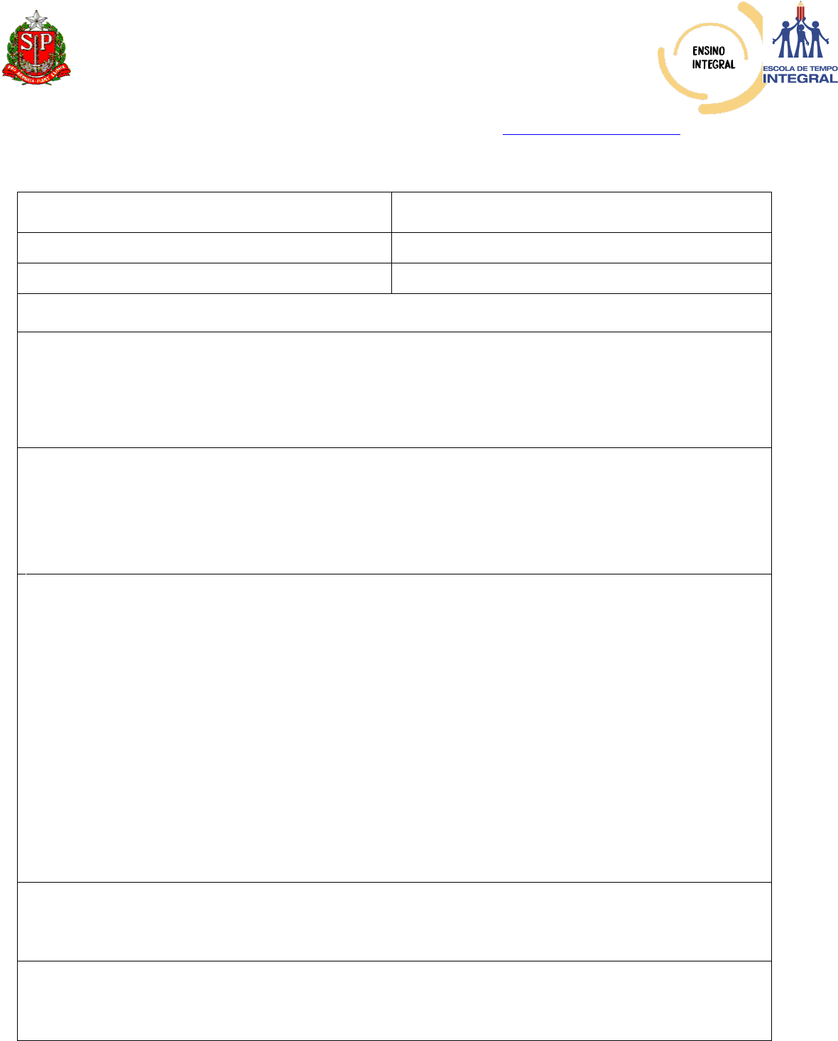GOVERNO DO ESTADO DE SÃO PAULO SECRETARIA DA EDUCAÇÃO DIRETORIA DE ENSINO REGIÃO – SUMARÉ E.E.E.I JARDIM ALINE Rua Benedita Teodoro da Silva nº 286 – Jd Santiago - Hortolândia - SP CEP: 13185-848 Curso Ensino Fundamental e Médio Integral Fone: (019) 3809-1726 / (019) 3809-1107 - E-mail e580824a@educacao.sp.gov.br. PLANO DE AULA SEMANAL 2022 PROFESSOR: Marcos Geraldo Ribeiro de Souza DISCIPLINA: Matemática PCA/PCG: Cintia PERÍODO: 17/10 a 21/10 ANO/SÉRIE: 6° ano CONTEÚDO: Classificação dos quadriláteros.. OBJETIVOS: Objetivos específicos. Reconhecer os quadriláteros de acordo com suas características. HABILIDADES: (EF06MA14) Reconhecer que a relação de igualdade matemática não se altera ao adicionar, subtrair, multiplicar ou dividir os seus dois membros por um mesmo número e utilizar essa noção para determinar valores desconhecidos na resolução de problemas (EF06LP28) Ler e compreender.(PAN) DESENVOLVIMENTO (AULA A AULA) Aula 1 e 2 - dia: COMO CLASSIFICAR QUADRILATÉROS CADERNO APRENDER SEMPRE Aula 3 e 4 - dia: CADERNO APRENDER SEMPRE Aula 5 e 6 - dia: ATIVIDADE SOBRE QUALIFICAÇÃO DE QUADRILÁTEROS · AVALIAÇÃO: Registro no caderno Técnica de resolução de problemas , Desenvolvimento de autonomia e responsabilidade. REFERÊNCIAS: Currículo em ação (2021) Aprender Sempre (2021) Lista de exercício de matemática OBSERVAÇÃO/INTERVENÇÃO: CGPAC CGPG DIRETOR