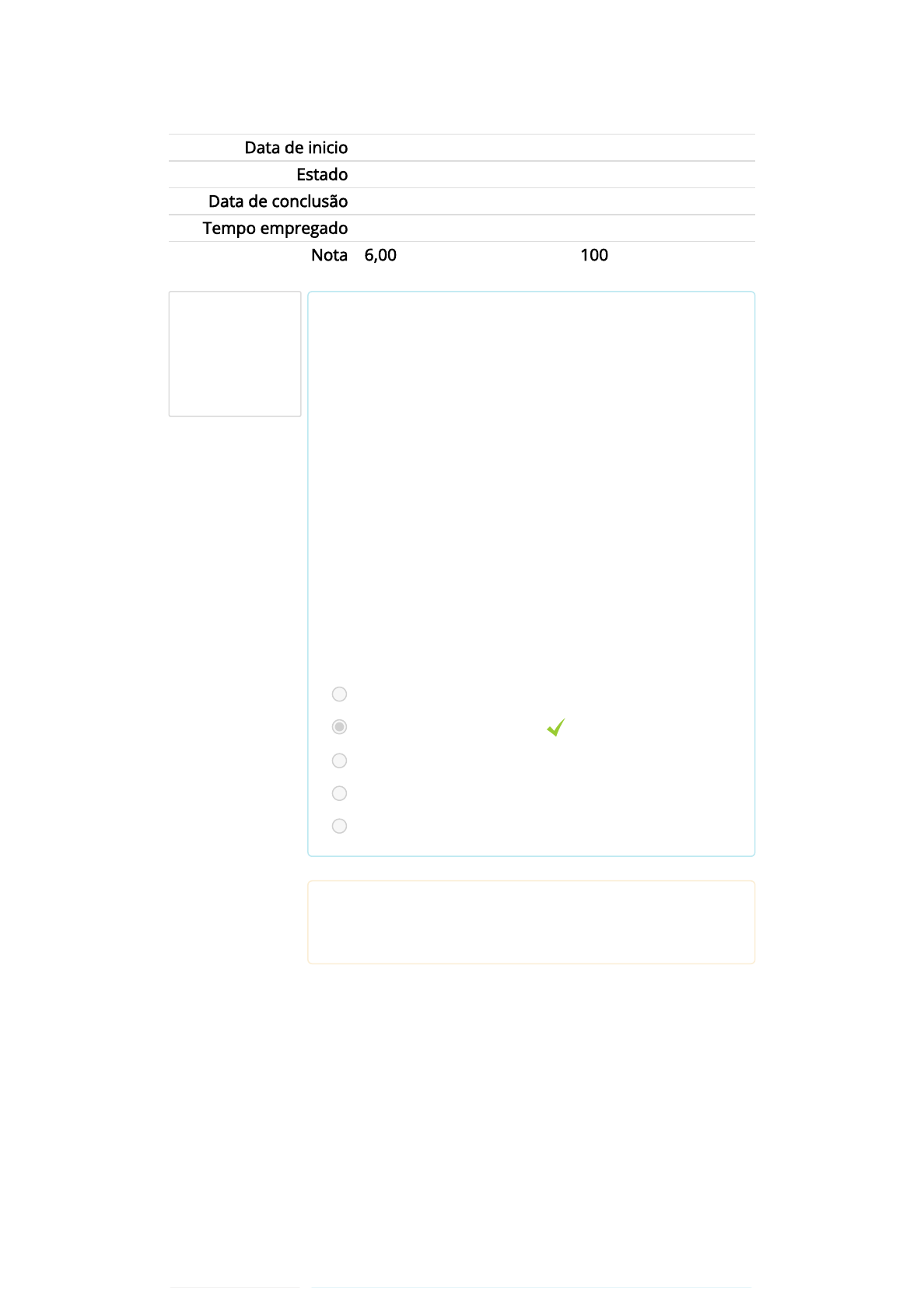 Questão 1 Correto Atingiu 0,60 de 0,60 Gerenciamento de Processos de Negócios ► AVALIAÇÃO ► PROVA Data de inicio sexta, 11 Nov 2022, 18:36 Estado Finalizada Data de conclusão sexta, 11 Nov 2022, 19:03 Tempo empregado 26 minutos 49 segundos Nota 6,00 de um máximo de 6,00(100%) É uma técnica que permite visualizar o universo em que o problema está inserido, desenhando um diagrama no qual as causas são discriminadas até se chegar na origem do problema. A técnica, também conhecida como Diagrama de causa-e- efeito, permite encontrar a causa do problema e não, apenas, os seus sintomas. Por outro lado, a técnica não pressupõe relacionamentos entre as causas e efeitos identi�cados, tornando necessário a presença de um especialista na técnica para reagrupar os fatores e delimitar os relacionamentos. Qual técnica refere-se a a�rmação? Leia as a�rmativas e assinale a alternativa correta: Escolha uma: a. Técnica Delphi, b. Diagrama de Ishikawa c. Análise por Multicritério, d. Técnica nominal de grupo, e. Nenhuma das alternativas anteriores Sua resposta está correta. A resposta correta é: Diagrama de Ishikawa. https://moodle.universoead.com.br/course/view.php?id=4 https://moodle.universoead.com.br/mod/quiz/view.php?id=190 Questão 2 Correto Atingiu 0,60 de 0,60 Sabe-se que conhecer as formas pelas quais os pro�ssionais do setor trabalham é fundamental no processo de criação e formulação de estratégias. Com elas, será possível entender como os relatórios são gerados, como as informações são disponibilizadas e, ainda, como a tomada de decisão é subsidiada pelas técnicas de planejamento e controle. Qual a�rmativa não pode ser considerada, essencialmente, um exemplo de técnica de planejamento e controle estratégico? Leia as a�rmativas e assinale a alternativa correta: Escolha uma: a. Histograma; b. Diagrama de Pareto; c. Grá�co de Gantt; d. Tomada de decisão; e. Nenhuma das alternativa anteriores Sua resposta está correta. A resposta correta é: Tomada de decisão;. Questão 3 Correto Atingiu 0,60 de 0,60 Por mais que existam procedimentos de coleta de dados e procedimentos para análise dos dados, a condução de um processo de diagnóstico organizacional não ocorre da mesma forma para todos os casos. Por isso, é comum encontrarmos problemas administrativos semelhantes, mas que devem ser diagnosticados diferentemente, respeitando o seu contexto e, principalmente, as pessoas que estão trabalhando na organização. Qual a desvantagem em coletar dados através de entrevistas? Leia as a�rmativas e assinale a alternativas correta: Escolha uma: a. O entrevistado não precisa se restringir às opções de um questionário; b. Deixar o próprio entrevistado criar a sua sequência de interpretação dos fatos organizacionais; c. Possibilita o recolhimento de informações mais precisas e conectadas com o contexto; d. A entrevista está sujeita à boa vontade e interesse do entrevistado, podendo ser desvirtuada para uma área do conhecimento a�m. e. Nenhuma das alternativas anteriores Sua resposta está correta. A resposta correta é: A entrevista está sujeita à boa vontade e interesse do entrevistado, podendo ser desvirtuada para uma área do conhecimento a�m.. Questão 4 Correto Atingiu 0,60 de 0,60 Técnica utilizada para auxiliar um grupo a imaginar e criar ideias a respeito de algum tema de forma criativa e intencional. A vantagem dessa técnica está na possibilidade de difundir a criação de ideias, sem pressupor a necessidade de especialistas. A desvantagem está na inibição de alguns participantes que, por algum motivo, não podem participar do processo. Qual técnica refere- se a a�rmação? Leia as a�rmativas e assinale a alternativa correta: Escolha uma: a. Técnica Delphi, b. Brainstorm, c. Análise por Multicritério, d. Técnica nominal de grupo, e. Nenhuma das alternativas anteriores Sua resposta está correta. A resposta correta é: Brainstorm,. Questão 5 Correto Atingiu 0,60 de 0,60 Usualmente, a rapidez com que esses relatórios são disponibilizados respondem por grande parte da e�cácia de um processo decisório, pois ampliam o escopo de trabalho dos tomadores de decisão. Por outro lado, esse não é o único condicionante da situação. Os relatórios precisam manter um bom conteúdo e representatividade da realidade observada. Nesse sentido, é possível segmentar esses relatórios em cinco grandes quadrantes, qual quadrante não representa a organização dos relatórios?: Leia as a�rmativas e assinale a alternativa correta: I. Agendados; II. De indicadores-chave; III. De oferta; IV. De exceção; V. Detalhados. Escolha uma: a. Somente a a�rmativa III está correta; b. Somente as a�rmativas I, II e IV estão corretas; c. Somente as a�rmativas I, II, IV e V estão corretas; d. Somente as a�rmativas I, III, IV e V estão corretas; e. Nenhuma das alternativas anteriores Sua resposta está correta. A resposta correta é: Somente a a�rmativa III está correta;. Questão 6 Correto Atingiu 0,60 de 0,60 O corpo de gestores que estiverem responsáveis pelas mudanças organizacionais devem estar ligados em todos os acontecimentos da empresa. Vale lembrar que esse processo envolve muitas pessoas e, por isso, muitos interesses. Todo e qualquer efeito deve ser avaliado. No entanto, os gestores podem encontrar resistência ao propor mudanças. Pensando nisso, qual alternativa não propicia resistência na hora da mudança organizacional? Leia as a�rmativas e assinale a alternativa correta: Escolha uma: a. Não acreditar que as mudanças podem melhorar o trabalho; b. Não estar disposto à mudanças; c. Não estar disposto ao aprendizado; d. Segurança pessoal; e. Nenhuma das alternativas anteriores Sua resposta está correta. A resposta correta é: Segurança pessoal;. Questão 7 Correto Atingiu 0,60 de 0,60 Na literatura especializada, a Estrutura Organizacional é considerada um instrumento essenci