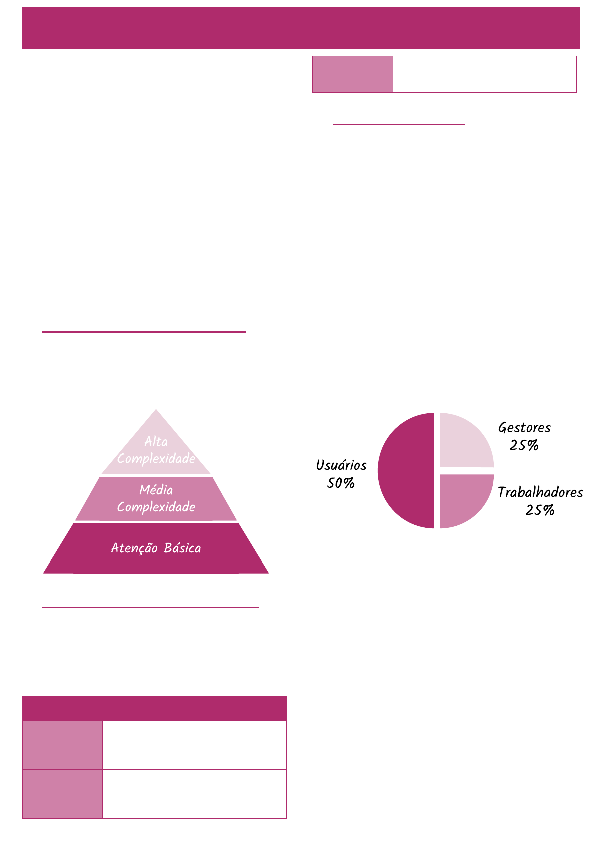 SUS . Sistema Único de Saúde É regulamentado pela Lei 8.080 (1.990), regras gerais para organização e gestão do SUS, e Lei 8.142 (1.990), controle social e repasse de verbas para os municípios. A operacionalização é baseada em: ● Princípios Doutrinários: ○ Universalização; ○ Equidade; ○ Integralidade. ● Princípios Organizativos: ○ Regionalização e Hierarquização; ○ Descentralização e comando único; ○ Participação popular. ➔ Regionalização e Hierarquização Classificação dos serviços, considerando a complexidade tecnológica de cada um deles. Dividido em três níveis de atenção. ➔ Descentralização e Comando Único Antes as ações de saúde eram centralizadas no nível federal, e quem as executava eram os estados e municípios. Estratégia importante para redistribuir as responsabilidades pelas ações e serviços para os municípios. ESFERAS DO GOVERNO Federal Ministério da Saúde Conselho Nacional de Saúde Comissão Intergestores Tripartite Estadual Secretário do Estado da Saúde Conselho Estadual de Saúde Comissão Intergestores Bipartite Municipal Secretaria Municipal de Saúde Conselho Municipal de Saúde ➔ Participação Popular Lei n° 8.142 Determina que a participação popular deve acontecer em fóruns específicos, que são as conferências e os conselhos de saúde. Possuem caráter deliberativo (poder de decisão). Devem ser compostos de forma paritária (igualitária) por usuários do SUS, trabalhadores do SUS e gestores/ gerentes, todos chamados de conselheiros de saúde. Estrutura mínima, para a União (governo federal) realizar repasses financeiros para os estados e municípios. Conselho de Saúde Paritário, isto é, deve garantir que todos os conselheiros tenham o mesmo peso na hora da votação. É composto de 50% de usuários do SUS, 25% de trabalhadores e 25% de gestores. Os membros dos conselhos devem ser eleitos por voto ou indicados pelas associações que representam. As conferências de Saúde ocorrem a cada 4 anos. ● Conselho Nacional de Saúde ○ Gestores, entidades representativas de trabalhadores e usuários, delegados regionais, etc. ● Conselho Estadual de Saúde ○ Gestores, delegados regionais, representantes de associações de usuários e trabalhadores. ● Conselho Municipal de Saúde ○ Representantes de conselhos locais, de associações de usuários e trabalhadores, gestores, etc. ● Conselho Gestor Local ○ Gerentes/diretores, trabalhadores e usuários dos serviços de saúde (UBS, ambulatórios, hospitais, entre outros). Redes de Atenção à Saúde (RAS) Arranjos que articulam diversos serviços, de todos os níveis de atenção, para atender a determinadas necessidades de saúde. Possibilitam arranjos regionais, envolvendo serviços de vários municípios, extrapolando os limites administrativos e aumentando a capacidade, principalmente dos municípios menores, de atendimento com custos mais baixos. Podem ser articuladas para resolver diversos problemas de saúde, como doenças e agravos não transmissíveis (DANT). Gestores de Saúde Para facilitar a relação entre os gestores dos três níveis foi feito um Pacto pela Saúde, que apresentou resultados positivos. É dividido em três dimensões: ● Pacto pela Vida; ● Pacto em Defesa do SUS; ● Pacto de Gestão. Pacto pela Vida Compromissos sanitários considerados prioritários. Pacto em Defesa do SUS Ações que visem qualificar e assegurar o SUS. Carta dos Direitos dos Usuários da Saúde. Pacto de Gestão Relação cooperativa e solidária entre gestores, definindo diretrizes e responsabilidades, com vistas a fortalecer a gestão.