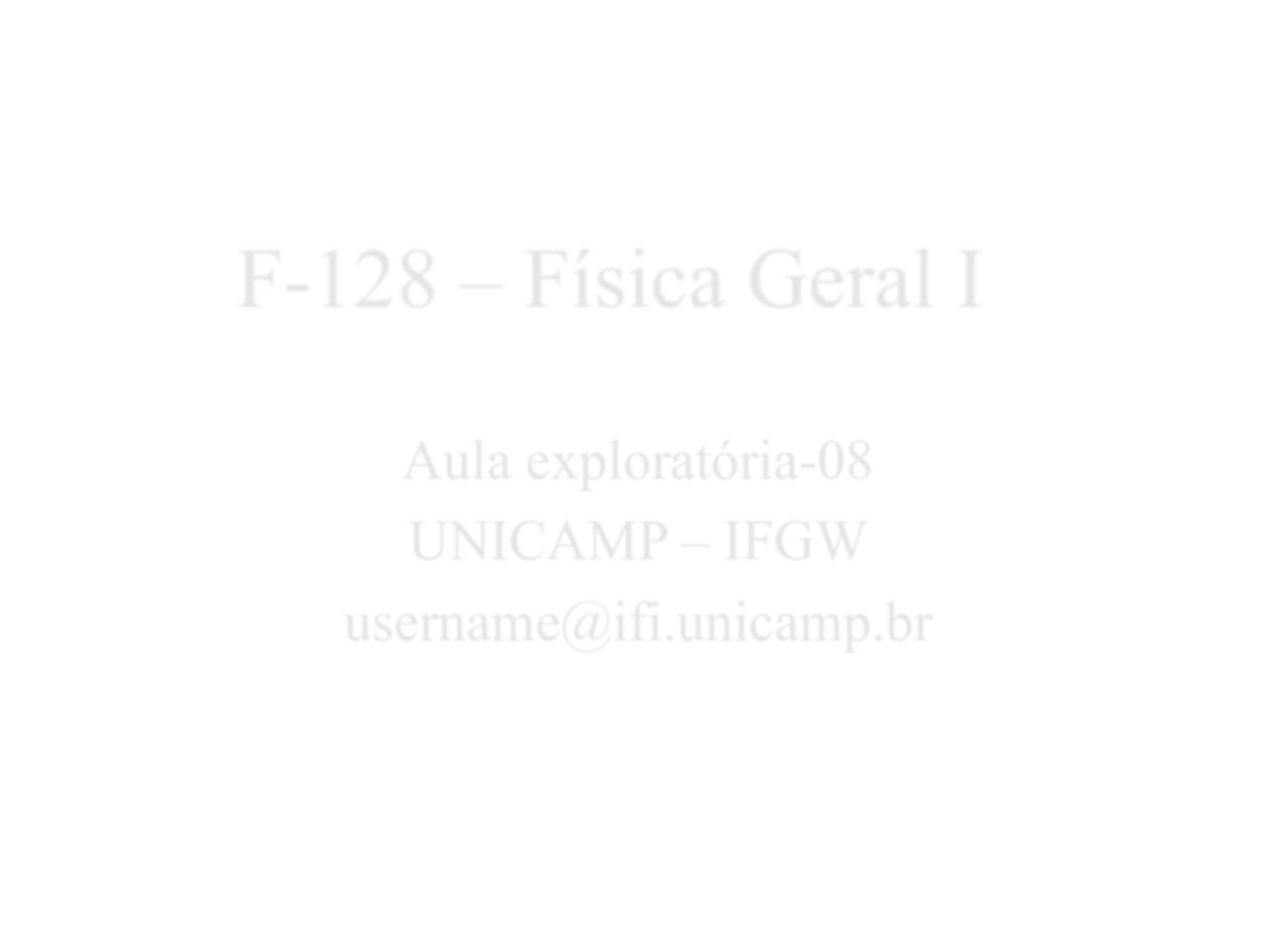 Aula exploratória-08 UNICAMP – IFGW username@ifi.unicamp.br F-128 – Física Geral I F128 – 1o Semestre de 2012 1 Energia Potencial em 1D F128 – 1o Semestre de 2012 2 Variação de energia potencial (caso unidimensional): ( ) ( ) ( ) 0 0 0 ( ) x x U x x U x U x W F x dxΔ → = − = − = −∫ É usual tomar x0 como uma configuração de referência fixa. Assim, a energia potencial da partícula na configuração x é: Notem que é preciso que a força seja uma função apenas da posição (configuração). Não se pode definir U(x) em outros casos (a força de arraste dependente da velocidade, por exemplo): ver mais detalhes adiante. Do ponto de vista físico, apenas as variações de energia potencial são relevantes. Então, pode-se sempre atribuir o valor zero à configuração de referência: ( )0 0U x = dUF dx = −∫−= x x dxxFxUxU 0 )()()( 0 Conservação da Energia Mecânica F128 – 1o Semestre de 2012 3 Do teorema do trabalho-energia cinética para uma força que só depende da posição: W K= Δ ( ) ( ) 2 21 12 2i f f iU x U x mv mv− = − ( ) ( )2 21 12 2i i f fmv U x mv U x+ = + ( )21 constante 2 E mv U x= + = ( ) WxUxU if −=−)(Como ( a energia mecânica total não varia). Energia Mecânica em mais de uma dimensão F128 – 1o Semestre de 2012 4 Generalizando, sempre se pode associar uma energia potencial a uma força conservativa: Note que não é preciso dizer qual trajetória tomar entre e . Se só há forças conservativas, então a energia mecânica total (potencial + cinética) é conservada: constanteE K U= + = ∫ ⋅−=→−=− r r ldFrrWrUrU 0 )()()( 00 0r r Energia na presença de forças não-conservativas F128 – 1o Semestre de 2012 5 não cons cons não cons mec cons W W W K W K U E W U − − = + = Δ ⎫ ⇒ = Δ +Δ = Δ⎬= −Δ ⎭ 0 0atrito atrito mecW f L E= − < ⇒Δ < No caso de forças como de atrito e de arraste, o trabalho é sempre negativo (a força é sempre no sentido oposto ao deslocamento): Como o trabalho forças dissipativas é sempre negativo, a energia mecânica do sistema sempre diminui na presença delas. Entretanto, se há forças não-conservativas: ou seja, a variação da energia mecânica de um sistema é igual ao trabalho das forças não-conservativas que agem sobre ele. Energia Potencial Gravitacional F128 – 1o Semestre de 2012 6 r r GMmF ˆ2−= r sd F Tomando a configuração de referência 0)( 0 =∞→rU r GMmdr r GMmrU r ∫ ∞ −== 2)( Força gravitacional: : ∝ dr r GMm drrFrdFrUrU r r r r r r ∫ ∫∫ = =⋅−=− 0 00 2 0 )()()( , pois rdrrd ˆ−= Exercício 01 Soltando-se a pequena esfera na posição indicada na figura: a) qual será sua velocidade ao passar pelo ponto mais baixo da trajetória? b) qual será a tração no fio nessa posição?; c) determine o ângulo (medido em relação à vertical) para o qual o módulo da tração no fio é igual ao peso da bola. F128 – 1o Semestre de 2012 7 l m a) glv 2= b) mgT 3= c) 3 1cos =θ Exercício 02 Um bloco de massa m = 10 kg é solto, a partir do repouso, em um plano inclinado de 45° em relação ao plano horizontal, com coeficiente de atrito cinético µc = 0,5. Depois de percorrer uma distância d = 2m ao longo do plano inclinado, o bloco colide com uma mola de constante k = 800N/m, de massa desprezível, que se encontrava relaxada, de acordo com o esquema mostrado na figura abaixo. a) qual é a compressão sofrida pela mola? b) qual é a energia dissipada pelo atrito durante o trajeto do bloco desde o alto do plano até a compressão máxima da mola? Que fração representa da variação total de energia potencial durante o trajeto? c) Se o coeficiente de atrito estático com o plano é de µe = 0,8, o bloco permanecerá em repouso após comprimir a mola? F128 – 1o Semestre de 2012 8 a) mx 47,0≅Δ b) JWatrito 2,87−= c) Será acelerado para cima da rampa com uma força inicial de F=267,5N JWW atritoPeso 4,1742 =−= Exercício 03 Uma partícula move-se ao longo da direção x sob o efeito de uma força F(x) = –kx+Kx2, onde k=200 N/m e K = 300N/m2 – Calcule a energia potencial U(x) da partícula, tomando U(0)= 0 , e faça um gráfico de U(x) para –1,0 m< x < 1,5 m; a) Ache as posições de equilíbrio da partícula e discuta sua estabilidade. b) Para que domínio de valores de x e da energia total da partícula E a partícula pode ter um movimento oscilatório? c) Discuta qualitativamente a natureza do movimento da partícula nas demais regiões do eixo dos x. F128 – 1o Semestre de 2012 9 )(100)( 32 xxxU −= U(J) x(m) - 1.0 - 0.5 0.5 1.0 1.5 - 100 - 50 50 100 a) b) x = 0 m - Equilibrio estável x = 2/3 m – Equilíbrio instável c) -1/3 m < x < 2/3 m e 0 < E0 < 14.8J d) Para E > 14.8J, partícula tem apenas um ponto de retorno em x < -1/3 m; Para E<0; partícula tem um ponto de retorno em x > 1 m; Respostas Exercício 04 No modelo de Bohr do átomo de hidrogênio, o elétron segue uma órbita circular em torno do próton. No estado de energia mais baixo, o raio da órbita é R = 0,529×10−10 m. A força que o próton aplica no elétron é dada por: onde e = 1,6×10-19 C e k = 9 × 109 Nm2/C2. a) Calcule o trabalho que a força elétrica realiza para trazer o elétron de uma distância muito grande (r à ∞) até a posição r = R e determine a energia potencial do elétron em r = R; b) Calcule a energia cinética do elétron nesta órbita; c) Qual é a energia de ligação do elétron? Obs: Em Física Atômica mede-se usualmente a energia em elétron-volts (eV), onde 1eV = 1,6×10-19 J. F128 – 1o Semestre de 2012 10 ,)( 2 2 r kerF −= W = F(r) ⋅d r ∞ R ∫ = ke2 R = 27.2eV =−U a) b) F = macp⇒ ke2 R2 = mv2 R ∴ K = ke 2 2R =13.6eV (poderia fazer por energia total, E=K+U) c) Energia de ligação = energia para levar de r=R até r=infinito, Eligação=13.6 eV Respostas Exercício 05 Uma bola de aço, inicialmente em repouso, cai num fluido viscoso a partir de uma altura h. a) Calcule a razão da dissip