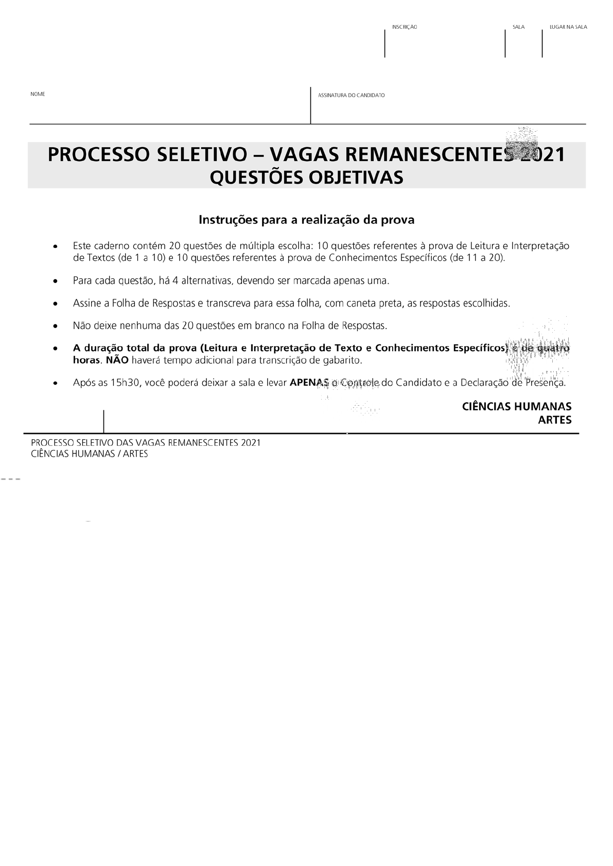 VAGAS REMANESCENTES 2021 – LEITURA E INTERPRETAÇÃO DE TEXTOS QUESTÃO 1 Texto 1 P: Assistimos nesta pandemia a segmentos da sociedade que embarcaram num processo de relativizar a gravidade da doença. Como a psicanálise explica o negacionismo? R: Poucas pessoas se dão conta de que a expressão negacionismo vem da psicanálise. Freud tem um texto clássico, chamado A negação, sobre a nossa atitude diante de realidades que são mais dolorosas ou complexas do que conseguimos aguentar. Essa é uma atitude muito básica, muito simples, é o começo de muitas outras formas de negação e foi descrita ali no início da psicanálise. (...) A chegada do novo coronavírus pegou o Brasil em meio a dois processos particulares: a divisão social discursiva e a pauperização da vida econômica e dos direitos trabalhistas. A retórica de campanha eleitoral, tornada depois método de governo, baseada na produção contínua de inimigos imaginários, foi impactada pela chegada de um inimigo real, biológico e natural. (...) A pandemia não é inimigo político, não é um inimigo intencional, é um fato que vem da natureza, vem desse lugar terceiro, algo que nos une. Mas num governo que adota esse método, não se pode admitir que exista esse terceiro, algo que nos une, porque esse terceiro destrói a retórica da produção contínua de inimigos. Nada mais óbvio que isso gerasse a resposta descrita por Freud como a negação. E por que o negacionismo é importante como método deste governo? Para criar os processos de transferência de autoridade simbólica das instituições para a autoridade pessoal de quem as desafia. P: Em sua avaliação, qual é o impacto social desta conduta no enfrentamento da COVID-19? R: O negacionismo representou um prejuízo dramático para o enfrentamento da COVID-19, custou a vida de milhares de brasileiros, nos colocou no segundo lugar do número de mortes no mundo (...). Nessa hora, para que todos fizessem o sacrifício das restrições, seria esperado que figuras de autoridade dissessem: vai ser muito difícil, mas faço em nome de alguém. Mas, nessa hora encontramos uma divisão na política sanitária, marcada por uma hesitação e pela negação do consenso científico. (...) P: Embora a educação formal seja, em princípio, um elemento central para combater o negacionismo, há também pessoas adultas e de alta escolaridade que adotam alguns raciocínios simplificadores para o enfrentamento da COVID-19. O negacionismo se vincula a algum tipo de regressão intelectual? R: Quando apresentei a ideia de negação, disse que ela ocorre por algo doloroso ou algo que supera a nossa capacidade de simbolização por ser excessivamente complexo. Vamos encontrar a ideia de anomia em Émile Durkheim, da impossibilidade de reconhecer uma sociedade que se torna mais complicada do que os nossos dispositivos de interpretação. O que ela desencadeia? A regressão, as formas de pensamento regressivas. Voltamos da instituição que representa a razão no seu sentido impessoal para as instituições que representam a razão no sentido pessoal: voltamos para a família. Como a ideia de que a Terra é plana, entre várias outras, se infiltra aí? Ao questionar verdades muito sólidas, muito consensuais, você mostraria que a ciência não está dando as respostas que gostaria para todas as perguntas que você tem. (...) Ao conseguir dividir a autoridade simbólica, se produzem efeitos de reempoderamento da autoridade política particular. (...) (Adaptado de O negacionismo como arma de destruição durante a pandemia. Entrevista com o psicanalista Christian Dunker. Estado de Minas, 24/07/2020. Disponível em https://www.em.com.br. Acessado em 05/11/2020.) Com base no trecho da entrevista com o psicanalista Christian Dunker, assinale a alternativa correta. a) Segundo o entrevistado, o negacionismo é um construto oriundo do campo da psicanálise, mais especificamente da obra de Freud, e pode ser compreendido como uma patologia que se desenvolve tanto por causas clínicas como sociais. b) A pandemia poderia colocar em xeque uma política que se baseia na produção de inimigos; nesse contexto, a negação dos enunciados científicos passa a ser usada como meio para transferir autoridade das instituições para o indivíduo. c) Para o psicanalista, o negacionismo se deve ao fato de as mensagens da ciência não serem compreensíveis para muita gente, o que torna mais fácil a assimilação massiva de enunciados simples, como “a Terra é plana”, ou de narrativas religiosas. d) Política e ciência seguem métodos diferentes, por isso ações sanitárias efetivas não puderam ser concretizadas durante a pandemia no Brasil; isso foi agravado pela disseminação de discursos negacionistas que fizeram do vírus um inimigo político. QUESTÃO 2 Considerando as características do gênero discursivo entrevista, assinale a alternativa que descreve corretamente o texto 1. a) Mesmo se tratando de um fragmento da entrevista completa, é possível observar como a interação entre entrevistador e entrevistado marca a progressão temática do texto. b) A entrevista é definida como um gênero opinativo do jornalismo; assim, o texto 1 não apresenta a objetividade necessária para discutir temas relacionados à ciência. c) Apesar de se tratar de parte de uma entrevista com um especialista, quase não se observam, no texto, marcas linguísticas de subjetividade e informalidade. d) Ao ser transposta para a forma escrita, a entrevista perdeu a interlocução (a dinâmica face a face da situação oral) e, assim, seu caráter dialógico. QUESTÃO 3 Texto 2 (...) temos duas vertentes de negacionistas: os históricos, que negam o Holocausto, e os científicos, dentre os quais estão os climáticos (que negam o aquecimento global), os https://www.em.com.br/ VAGAS REMANESCENTES 2021 – LEITURA E INTERPRETAÇÃO DE TEXTOS terraplanistas (que negam as evidências de um planeta aproximadamente esf