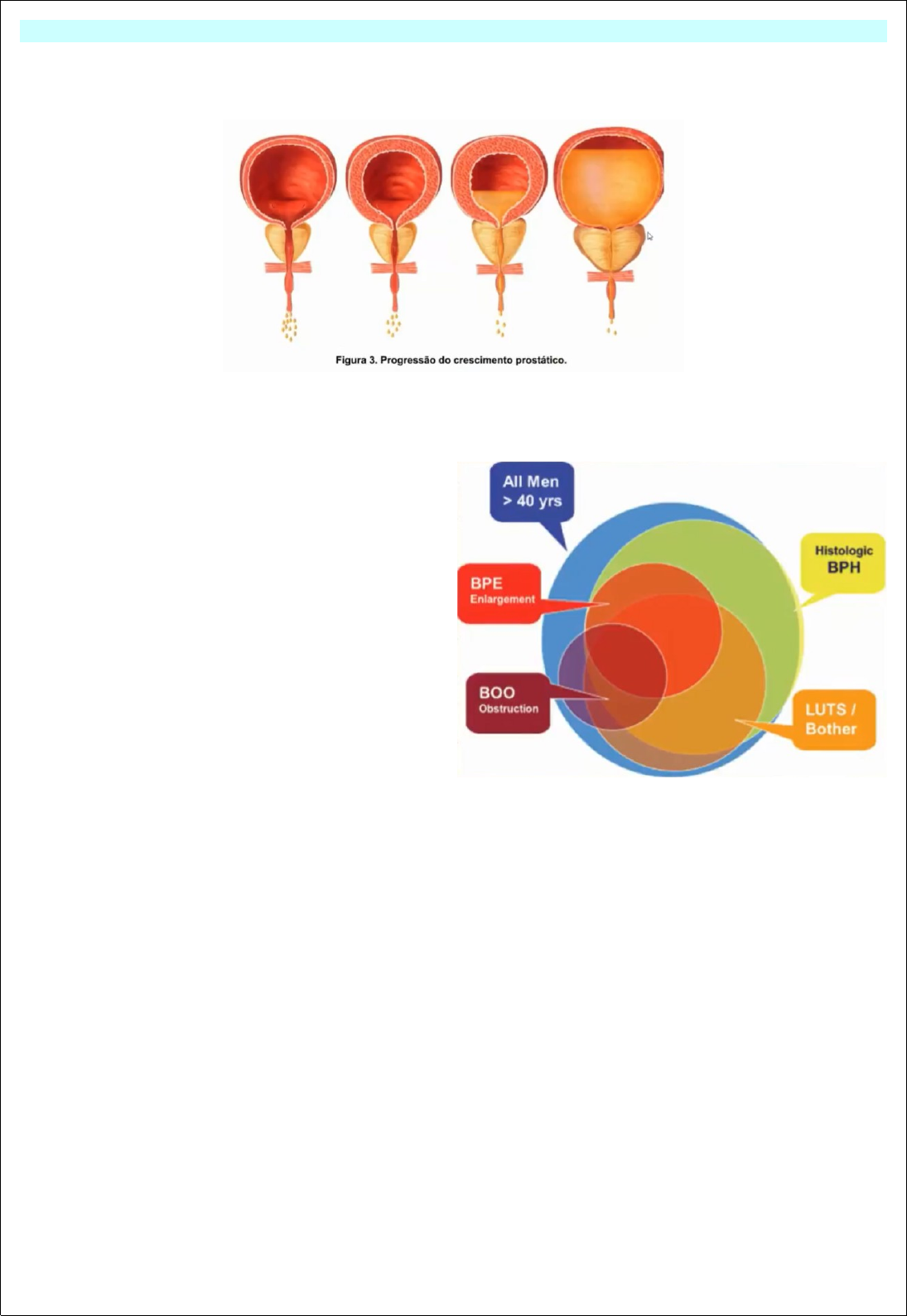 Hiperplasia Prostática Benigna (HPB) · Caracteriza-se por aumento benigno da próstata, sendo ele volumétrico e/ou histológico; · Sempre que há aumento volumétrico, há aumento histológico. · Pode estar associada ou não a sintomas do trato urinário baixo (LUTS; Low Urinary Tract Symptoms); · Sintomas de esvaziamento, de armazenamento e pós-miccionais. · O aumento simples da próstata não represente problema se o paciente está assintomático. Epidemiologia · 30-39 anos · Prevalência histológica: 0% · Prevalência clínica: 5-10% · 50-59 anos · Prevalência histológica: 50% · Prevalência clínica: 45% · 70-79 anos · Prevalência histológica: 80% · Prevalência clínica: 62% Diagnóstico Quadro clínico – LUTS · Sintomas de esvaziamento · Jato miccional fraco, bífido ou intermitente; · Hesitação e esforço miccional. · Sintomas pós-miccionais · Sensação de esvaziamento incompleto; · Gotejamento pós-miccional. · Sintomas de armazenamento (mais tardios) · Polaciúria e noctúria; · Urgência ou urgeincontinência urinária. Exame físico · Globus vesical (bexigoma); · Toque retal, se não há suspeita de prostatite aguda. Escore Internacional de Sintomas Prostáticos (IPSS) · Classificação da gravidade dos sintomas em leve, moderado ou severo. Exames complementares – Diagnóstico diferencial de todas possibilidades de LUTS. Tratamento Tratamento clínico · Alfa-bloqueadores Doxazosina 2 e 4 mg (Unoprost, Duomo, Euprostatim) – Bloqueio dos receptores α-1 Tansulosina 0,4 mg (Secotex, Stub, Omnic Ocas, Tamsulon) – Bloqueio dos receptores α-1a · Mais seletiva, menos efeitos adversos. · Relaxamento dos músculos lisos do trígono e colo vesicais e próstata; · Melhora sintomática mais rápida; · Sempre iniciar se descartadas outras patologias; · Efeitos adversos: hipotensão postural e ejaculação retrógrada. · Inibidores da enzima 5-α-redutase Finasterida 5 mg (Finastil) – Bloqueio da 5-α-redutase-1 Dutasterida 0,5 mg (Avodart) – Bloqueio da 5-α-redutase-1 e 2 · Diminuição do estímulo androgênico para a próstata; · Indicados para pacientes com próstata > 40 cm3; · Diminui em até 30% o volume prostático e em 50% o valor do PSA em 6 meses; · Efeito de longo prazo e prevenção de progressão; · Efeitos adversos: disfunção erétil (15%) e ginecomastia (raro). · Inibidores de fosfodiesterase-5 de longa ação – Tadalafila · Indicação: tratamento de disfunção erétil concomitante. · Anticolinérgicos – Oxibutinina, Solifenacina, Tolterodina · Indicação: sintomas de armazenamento importantes, sem resíduo importante no US. Tratamento cirúrgico · Indicações: falha do tratamento clínico otimizado em pacientes de risco cirúrgico não proibitivo; · Resseção transuretral de próstata (RTUp); · Prostatectomia retropúbica (Millin); · Enucleação da próstata com Holmium Laser (HoLEP); · Outras: vaporização por plasma/laser ou vapor de H2O, embolização por cateterismo. Hipertrofia de Colo Vesical – Síndrome de Marion · Aumento e/ou estenose do colo vesical (esfíncter interno); · Acomete majoritariamente jovens. Tratamento · Clínico: alfa-bloqueadores; · Cirúrgico: secção ou ressecção endoscópica parcial do colo vesical. Retenção Urinária Etiologia Aguda · Descompensação de patologia obstrutiva; · Infecções; · Litíase vesical ou uretral; · Trauma genitourinário; · Neoplasias; · Outras (p. ex.: HBP). Crônica – Evolução natural de patologia obstrutiva de evolução lenta com remodelamento vesical para bexiga hipotônica (BN arreflexa). Quadro clínico Agudo · Dor suprapúbica com irradiação uretral e intenso desejo miccional; · Pode haver dor lombar bilateral e bexigoma doloroso ao exame físico. Crônico · Sintomas miccionais de longa data e possível micção ou incontinência por transbordamento (paradoxal); · Apresenta bexigoma não doloroso ao exame físico; · Atentar para possível alteração da função renal. Tratamento · Desobstrução do trato urinário por qualquer método possível; · Cateterismo vesical (sonda Foley) em sistema fechado; · Cistostomia suprapúbica (trocater de Campbell); · Punção suprapúbica para alívio do quadro como tratamento inicial de urgência. · Tratamento da patologia obstrutiva de base. Prostatite · Inflamação da glândula prostática; · A maioria dos quadros de prostatite é séptica, ou seja, é causada por algum agente microbiano; · Mais comumente é bacteriana. · Em alguns casos a prostatite pode ser asséptica, sendo uma inflamação sem infecção. · Trauma recorrente (possível etiologia?). Quadro clínico Agudo · Dor períneo-uretral importante com LUTS de início ou piora súbitos; · Febre com leucocitose, podendo ocorrer até bacteremia; · Não realizar toque retal (TR) devido ao risco de bacteremia! Crônico · Quadro brando semelhante a ITU baixo, mas com sintomas flutuantes; · Dor na ejaculação deve levantar a suspeita de prostatite; · Exame físico normal, com possível desconforto ao TR. Diagnóstico laboratorial (quadros crônicos) Aguda · Dosagem de PSA (elevação importante); · Seguimento com PSA ao final da antibioticoterapia (espera-se redução dos valores). Crônica · Dosagem de PSA (elevação discreta); · Exame de secreção prostática após massagem prostática por TR (difícil execução); · EQU do 1º jato após TR. Tratamento · Antibioticoterapia oral por 30-60 dias – Ciprofloxacino, Cefuroxima, Cefotaxima, Cotrimoxazol; · Sempre realizar cultura antes de iniciar o tratamento. · Antibioticoterapia parenteral – Ceftriaxona. · Indicações: prostatite aguda com sepse ou complicações.