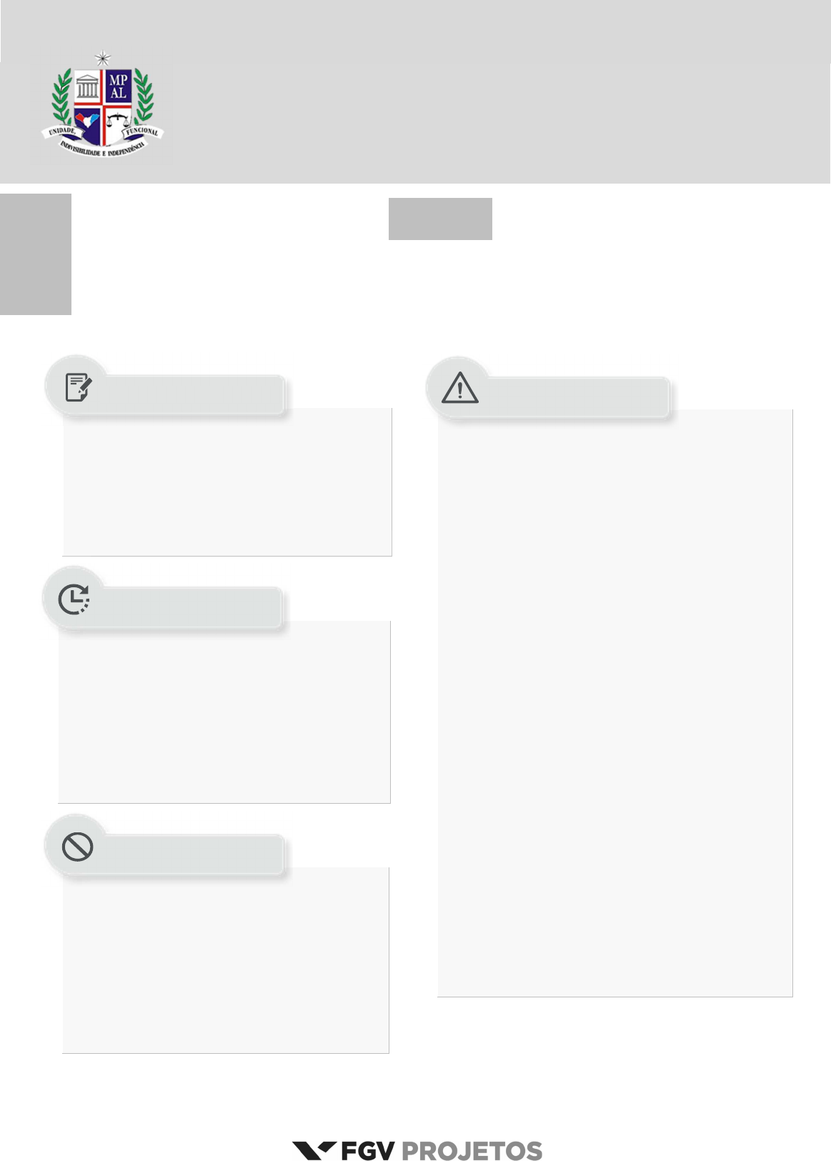 Governo do Estado de Alagoas Ministério Público do Estado de Alagoas- MP / AL MA MANHÃ 1 0 10 CONTADOR DO MINISTÉRIO PÚBLICO Tipo 1 – BRANCA • As questões objetivas têm cinco alternativas de resposta (A, B, C, D, E) e somente uma delas está correta; • Além deste caderno de prova, contendo oitenta questões objetivas, você receberá do fiscal de sala: • a folha de respostas das questões objetivas • • Verifique se seu caderno está completo, sem repetição de questões ou falhas. Caso contrário, notifique imediatamente o fiscal da sala, para que sejam tomadas as devidas providências; • Confira seus dados pessoais, especialmente nome, número de inscrição e documento de identidade e leia atentamente as instruções para preencher a folha de respostas; • Use somente caneta esferográfica, fabricada em material transparente, com tinta preta ou azul; • Assine seu nome apenas no(s) espaço(s) reservado(s); • Confira seu cargo, cor e tipo do caderno de provas. Caso tenha recebido caderno de cargo ou cor ou tipo diferente do impresso em sua folha de respostas, o fiscal deve ser obrigatoriamente informado para o devido registro na ata da sala; • Reserve tempo suficiente para o preenchimento da sua folha de respostas. O preenchimento é de sua responsabilidade e não será permitida a troca da folha de respostas em caso de erro; • Para fins de avaliação, serão levadas em consideração apenas as marcações realizadas na folha de respostas; • A FGV coletará as impressões digitais dos candidatos na lista de presença; • Os candidatos serão submetidos ao sistema de detecção de metais quando do ingresso e da saída de sanitários durante a realização das provas; • Boa sorte! • Você dispõe de 4 horas para a realização da prova, já incluído o tempo para a marcação da folha de respostas; • 2 horas após o início da prova é possível retirar- se da sala, sem levar o caderno de prova; • 60 minutos antes do término do período de prova é possível retirar-se da sala levando o caderno de provas. • Qualquer tipo de comunicação entre os candidatos durante a aplicação da prova; • Anotar informações relativas às respostas em qualquer outro meio que não seja o caderno de prova; • Levantar da cadeira sem autorização do fiscal de sala; • Usar o sanitário ao término da prova, após deixar a sala. SUA PROVA TEMPO NÃO SERÁ PERMITIDO INFORMAÇÕES GERAIS Ministério Público do Estado de Alagoas - 2018 FGV – Projetos Contador do Ministério Público Tipo 1 – Cor BRANCA – Página 3 Língua Portuguesa TEXTO 1 OPORTUNISMO À DIREITA E À ESQUERDA Numa democracia, é livre a expressão, estão garantidos o direito de reunião e de greve, entre outros, obedecidas leis e regras, lastreadas na Constituição. Em um regime de liberdades, há sempre o risco de excessos, a serem devidamente contidos e seus responsáveis, punidos, conforme estabelecido na legislação. É o que precisa acontecer no rescaldo da greve dos caminhoneiros, concluídas as investigações, por exemplo, da ajuda ilegal de patrões ao movimento, interessados em se beneficiar do barateamento do combustível. Sempre há, também, o oportunismo político-ideológico para se aproveitar da crise. Inclusive, neste ano de eleição, com o objetivo de obter apoio a candidatos. Não faltam, também, os arautos do quanto pior, melhor, para desgastar governantes e reforçar seus projetos de poder, por mais delirantes que sejam. Também aqui vale o que está delimitado pelo estado democrático de direito, defendido pelos diversos instrumentos institucionais de que conta o Estado – Polícia, Justiça, Ministério Público, Forças Armadas etc. A greve atravessou vários sinais ao estrangular as vias de suprimento que mantêm o sistema produtivo funcionando, do qual depende a sobrevivência física da população. Isso não pode ser esquecido e serve de alerta para que as autoridades desenvolvam planos de contingência. O Globo, 31/05/2018. 1 “Numa democracia, (1) é livre a expressão, estão garantidos o direito de reunião e de greve, (2) entre outros, obedecidas leis e regras, (3) lastreadas na Constituição. Em um regime de liberdades, (4) há sempre o risco de excessos, (5) a serem devidamente contidos e seus responsáveis, punidos, conforme estabelecido na legislação”. Nesse segmento inicial do texto, a vírgula que tem caráter optativo é a indicada pelo número (A) (1). (B) (2). (C) (3). (D) (4). (E) (5). 2 “Numa democracia, é livre a expressão, estão garantidos o direito de reunião e de greve, entre outros, / obedecidas leis e regras, lastreadas na Constituição”. No segmento acima, o conectivo que substituiria adequadamente a barra inserida entre as duas orações é: (A) apesar de. (B) desde que. (C) embora. (D) além de. (E) após. 3 Assinale a opção que apresenta o tom presente no primeiro parágrafo do texto. (A) Anarquista. (B) Libertário. (C) Legalista. (D) Socialista. (E) Individualista. 4 O texto, em sua organização, deve ser caracterizado como (A) narrativo, já que expõe uma série de fatos. (B) argumentativo, pois defende uma tese. (C) expositivo, já que informa fatos recentemente ocorridos. (D) descritivo, porque fornece características e qualidades. (E) poético, pois expõe uma realidade de forma sentimental. 5 Uma das maneiras de tornar mais clara a expressão escrita é redigir as frases em ordem direta. A frase a seguir, “Numa democracia, é livre a expressão, estão garantidos o direito de reunião e de greve.” se colocada em ordem direta, seria redigida do seguinte modo: (A) “Numa democracia, é livre a expressão, o direito de reunião e de greve estão garantidos”. (B) “É livre a expressão, estão garantidos o direito de reunião e de greve numa democracia.” (C) “A expressão é livre, o direito de reunião e de greve estão garantidos, numa democracia.” (D) “Numa democracia a expressão é