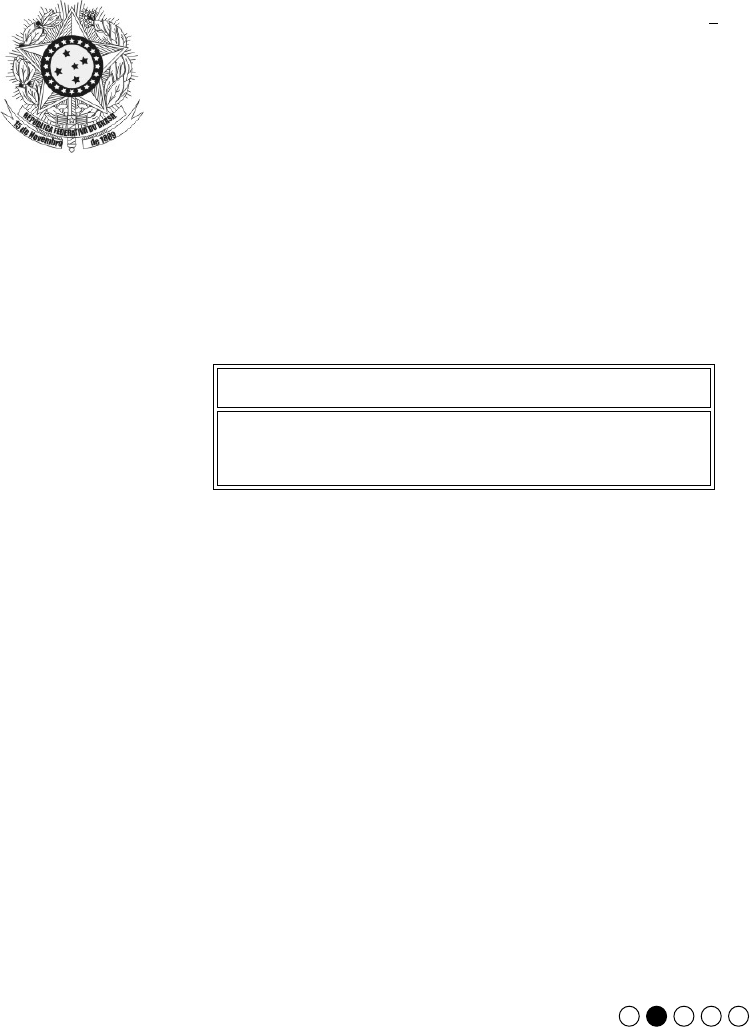 I N S T R U Ç Õ E S A C D E - Verifique se este caderno: - corresponde a sua opção de cargo. - contém 70 questões, numeradas de 1 a 70. Caso contrário, reclame ao fiscal da sala um outro caderno. Não serão aceitas reclamações posteriores. - Para cada questão objetiva existe apenas UMAresposta certa. - Você deve ler cuidadosamente cada uma das questões e escolher a resposta certa. - Essa resposta deve ser marcada na FOLHADE RESPOSTAS que você recebeu. VOCÊ DEVE: - procurar, na FOLHADE RESPOSTAS, o número da questão que você está respondendo. - verificar no caderno de prova qual a letra (A,B,C,D,E) da resposta que você escolheu. - marcar essa letra na FOLHADE RESPOSTAS, conforme o exemplo: - Marque as respostas das questões objetivas primeiro a lápis e depois cubra com caneta esferográfica de tinta preta. - Marque apenas uma letra para cada questão, mais de uma letra assinalada implicará anulação dessa questão. - Responda a todas as questões. - Não será permitida qualquer espécie de consulta, nem o uso de máquina calculadora. - Você terá o total de 4 horas para responder a todas as questões e preencher a Folha de Respostas. - Ao término da prova devolva este caderno de prova ao aplicador, juntamente com sua Folha de Respostas. - Proibida a divulgação ou impressão parcial ou total da presente prova. Direitos Reservados. ATENÇÃO Conhecimentos Gerais Conhecimentos Específicos P R O V A FUNDAÇÃO CARLOS CHAGAS Julho/2007 TRIBUNAL REGIONAL FEDERAL DA 2 REGIÃO Analista Judiciário - Especialidade Taquigrafia a Concurso Público para provimento de cargos de Área Apoio Especializado ____________________________________________________ Caderno de Prova, Cargo 16, Tipo 001 0000000000000000 00001−0001−001 Nº de Inscrição MODELO 2 TRF2R-Conhecimentos Gerais4 CONHECIMENTOS GERAIS Instruções: As questões de números 1 a 10 referem-se à Lei no 8.112/90. 1. Maria, servidora pública federal estável, aposentada por invalidez, retornou à atividade, uma vez que uma junta médica oficial declarou insubsistentes os motivos de sua aposentadoria. Mário, servidor público federal estável, foi reinvestido no cargo que anteriormente ocupava, uma vez que foi invalidada a sua demissão por decisão judicial, com ressarcimento de todas as vantagens. Nesses casos ocorreram, respectivamente, a (A) recondução de Maria e a reintegração de Mário. (B) reintegração de Maria e a reversão de Mário. (C) reintegração de Maria e a recondução de Mário. (D) reversão de Maria e a reintegração de Mário. (E) reversão de Maria e a recondução de Mário. _________________________________________________________ 2. Considere as seguintes condutas: I. Inassiduidade habitual. II. Incontinência pública e conduta escandalosa, na repartição. III. Utilizar pessoal ou recursos materiais da repartição em atividades particulares. IV. Coagir subordinados no sentido de filiarem-se a as- sociação sindical. V. Manter sob sua chefia imediata em cargo ou função de confiança cônjuge, companheiro ou filhos. A penalidade de demissão será aplicada nas condutas indicadas APENAS em (A) I, II e III. (B) I, II e IV. (C) II, III e IV. (D) II, III e V. (E) III, IV e V. _________________________________________________________ 3. Diego, funcionário público federal, foi demitido em razão de ter aplicado de forma irregular dinheiro público. Neste caso, Diego (A) não poderá retornar ao serviço público federal, pelo prazo de dez anos. (B) estará incompatibilizado para nova investidura em cargo ou função pública federal, pelo prazo de cinco anos. (C) não poderá retornar ao serviço público federal, por expressa vedação legal. (D) estará incompatibilizado para nova investidura em cargo ou função pública federal, pelo prazo de quin- ze anos. (E) estará impedido de ocupar cargo ou função pública federal, pelo prazo de sete anos. 4. No processo administrativo disciplinar, o prazo para conclusão da sindicância NÃO excederá (A) cento e vinte dias, podendo ser prorrogado pelo tem- po necessário para a regular apuração da exis- tência de infração disciplinar. (B) noventa dias, podendo ser prorrogado por igual pe- ríodo, a critério do presidente da comissão proces- sante. (C) noventa dias, podendo ser prorrogado por mais trinta dias, a critério da autoridade superior. (D) sessenta dias, podendo ser prorrogado por mais trin- ta dias, a critério do presidente da comissão proces- sante. (E) trinta dias, podendo ser prorrogado por igual perío- do, a critério da autoridade superior. _________________________________________________________ 5. A posse dar-se-á pela assinatura do respectivo termo, no qual deverão constar as atribuições, os deveres, as responsabilidades e os direitos inerentes ao cargo ocupa- do, que não poderão ser alterados unilateralmente, por qualquer das partes, ressalvados os atos de ofício pre- vistos em lei. Assim, é correto afirmar que (A) a posse ocorrerá no prazo de noventa dias contados da publicação do ato de provimento. (B) só haverá posse nos casos de provimento de cargo por nomeação. (C) a posse não poderá ocorrer mediante qualquer tipo de procuração, tratando-se de um ato personalís- simo envolvendo a Administração Pública. (D) a posse e o exercício deverão ocorrer no prazo de cento e vinte dias contados da nomeação. (E) a posse em cargo público, em regra, não dependerá de prévia inspeção médica oficial, tratando-se esse ato de faculdade da administração pública. _________________________________________________________ 6. Considere as seguintes assertivas a respeito das respon- sabilidades: I. A responsabilidade administrativa do servidor será afastada no caso de absolvição criminal que negue a existência do fato ou sua autoria. II. Não há responsabilidade civil decorrente de ato omissivo culposo, independentemente de resultar em prejuízo ao erário ou a terceiros. III. 