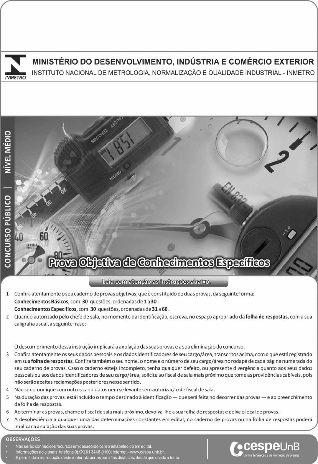 UnB/CESPE – INMETRO Cargo 52: Técnico em Metrologia e Qualidade – Área: Contabilidade – 8 – Nas questões de 31 a 60, marque, para cada uma, a única opção correta, de acordo com o respectivo comando. Para as devidas marcações, use a folha de respostas, único documento válido para a correção das suas provas. CONHECIMENTOS ESPECÍFICOS Texto para as questões de 31 e 32 receita bruta 45.000 (!) ICMS incidente sobre vendas 5.450 receita líquida 39.550 (!) custo da mercadoria vendida 14.350 lucro bruto 25.200 (!) despesas 15.100 salários 8.000 FGTS 800 INSS 1.500 serviço de vigilância 3.000 depreciação 1.800 lucro antes do IR e CSL 10.100 (!) IR/CSL (30%) 3.030 lucro líquido 7.070 Considere que os dados da tabela acima (valores em reais) são relativos à demonstração de resultado de determinada indústria. A venda no período refere-se a toda a mercadoria (adquirida por R$ 16.800,00). O valor de ICMS embutido no preço e destacado nas notas fiscais de compra é de R$ 2.450,00. QUESTÃO 31 De acordo com as informações apresentados no texto, o valor adicionado a distribuir (em reais), no período, é de A 23.400. B 21.600. C 20.950. D 20.400. E 17.950. QUESTÃO 32 Com base nos dados fornecidos no texto, o valor adicionado distribuído (em reais) para os empregados, no período, é de A 8.000. B 8.800. C 9.500. D 10.300. E 13.300. QUESTÃO 33 De acordo com a Lei n.º 6.404/1976 e a Lei n.º 11.638/2007, assinale a opção que relaciona apenas contas integrantes do patrimônio líquido. A capital social, reserva de contingência, ações em tesouraria e debêntures emitidas B dividendos a pagar, ajuste de avaliação patrimonial e reserva de lucros C prejuízos acumulados, ações em tesouraria, lucros acumulados e resultados de exercícios futuros D reservas de capital, ações em tesouraria, ajuste de avaliação patrimonial e prejuízos acumulados E reserva legal, reserva de lucros, reserva de contingência, reserva ambiental e reserva de capital QUESTÃO 34 A indústria Verde S.A. emitiu duas notas fiscais de venda, cada qual no valor de R$ 66.000,00, dos quais R$ 60.000,00 correspondem ao preço cobrado pelos produtos, e R$ 6.000,00 se referem ao IPI. O ICMS embutido no preço e destacado em cada nota fiscal é de R$ 3.600,00. A indústria Amarela S.A., que efetuou a compra referente à primeira nota fiscal, encaminhou os produtos adquiridos para uso na produção. A empresa comercial Vermelha S.A., que efetuou a compra referente à segunda nota fiscal, adquiriu os produtos para revenda. Considerando essa situação, os valores a serem registrados em estoque pela indústria Amarela S.A. e pela empresa comercial Vermelha S.A. são, respectivamente, iguais a A R$ 60.000,00 e R$ 56.400,00. B R$ 56.400,00 e R$ 52.400.00. C R$ 56.400,00 e R$ 60.000,00. D R$ 62.400,00 e R$ 66.000,00. E R$ 62.400,00 e R$ 52.400,00. RASCUNHO UnB/CESPE – INMETRO Cargo 52: Técnico em Metrologia e Qualidade – Área: Contabilidade – 9 – Texto para as questões 35 e 36 Os seguintes dados foram extraídos das demonstrações financeiras da companhia ADMS S.A. Incorporações no exercício de 2009. contas R$ redução da conta impostos a recuperar 3.500 redução da conta fornecedores 12.000 redução da conta estoques 9.000 aumento da conta impostos a recolher 2.000 aumento da conta salários a pagar 7.000 aumento da conta clientes 40.000 aumento da conta capital social 30.000 aquisição de máquinas e equipamentos à vista 60.000 custo das mercadorias vendidas 62.000 despesas de depreciação 1.500 obtenção de um empréstimo a longo prazo 60.000 receita líquida de vendas 95.000 despesas com provisão para créditos de liquidação duvidosa 2.000 lucro líquido do exercício 18.300 pagamento de dividendos no período 8.000 QUESTÃO 35 Com base nas informações do texto, assinale a opção correta. A A empresa está gerando recursos somente nas atividades de financiamento, que estão sendo usados para cobrir a deficiência de geração de recursos nas atividades de investimentos e operacionais. B A empresa está gerando recursos nas atividades de investimento e financiamento, que estão sendo usados para cobrir a deficiência de geração de recursos nas operações. C A empresa está gerando recursos nas atividades de financiamento, que estão sendo usados para cobrir a deficiência de geração de recursos nas operações de investimento. D A empresa está gerando recursos nas operações no financiamento e nas atividades de investimento, que estão sendo utilizados para aumentar o recurso disponível. E A empresa está gerando recursos financeiros nas operações, que estão sendo utilizados para as atividades de investimento e financiamento. QUESTÃO 36 De acordo com as informações do texto e partir da elaboração da demonstração do fluxo de caixa, o fluxo de caixa operacional, o fluxo de caixa de investimento e o fluxo de caixa de financiamento são, respectivamente, iguais a A R$ 6.000,00; R$ 60.000,00 e R$ 82.000,00. B R$ 10.700,00; R$ 0,00 e R$ 22.000,00. C R$ 2.000,00; R$ 0,00 e R$ 90.000,00. D R$ 8.700,00; R$ 60.000,00 e R$ 82.000,00. E R$ 16.700; R$ 60.000,00 e R$ 90.000,00. QUESTÃO 37 Considere que, em dezembro de 2009, uma companhia investidora, cujo ativo total e o patrimônio líquido somavam, respectivamente, R$ 5.000.000,00 e R$ 1.200.000,00, tenha adquirido um investimento no valor de R$ 600.000,00, relativo a 60% do capital da companhia investida. Nesse mesmo período, a companhia investida apresentava ativo total de R$ 2.500.000,00 e patrimônio líquido de R$ 1.000.000,00, dos quais R$ 750.000,00 e R$ 250.000,00 consistiam, respectivamente, em capital social e reservas. Sabendo-se que não existem transações efetuadas entre as duas companhias, é correto afirmar que o valor do ativo total (em reais), no balanço patrimonial consolidado, é de A 6.200.000. B 6.900.000. C 7.500.000. D 8.100.000. E 9.700.000. RASCUNHO UnB/CESPE – INMETRO Cargo 52: T