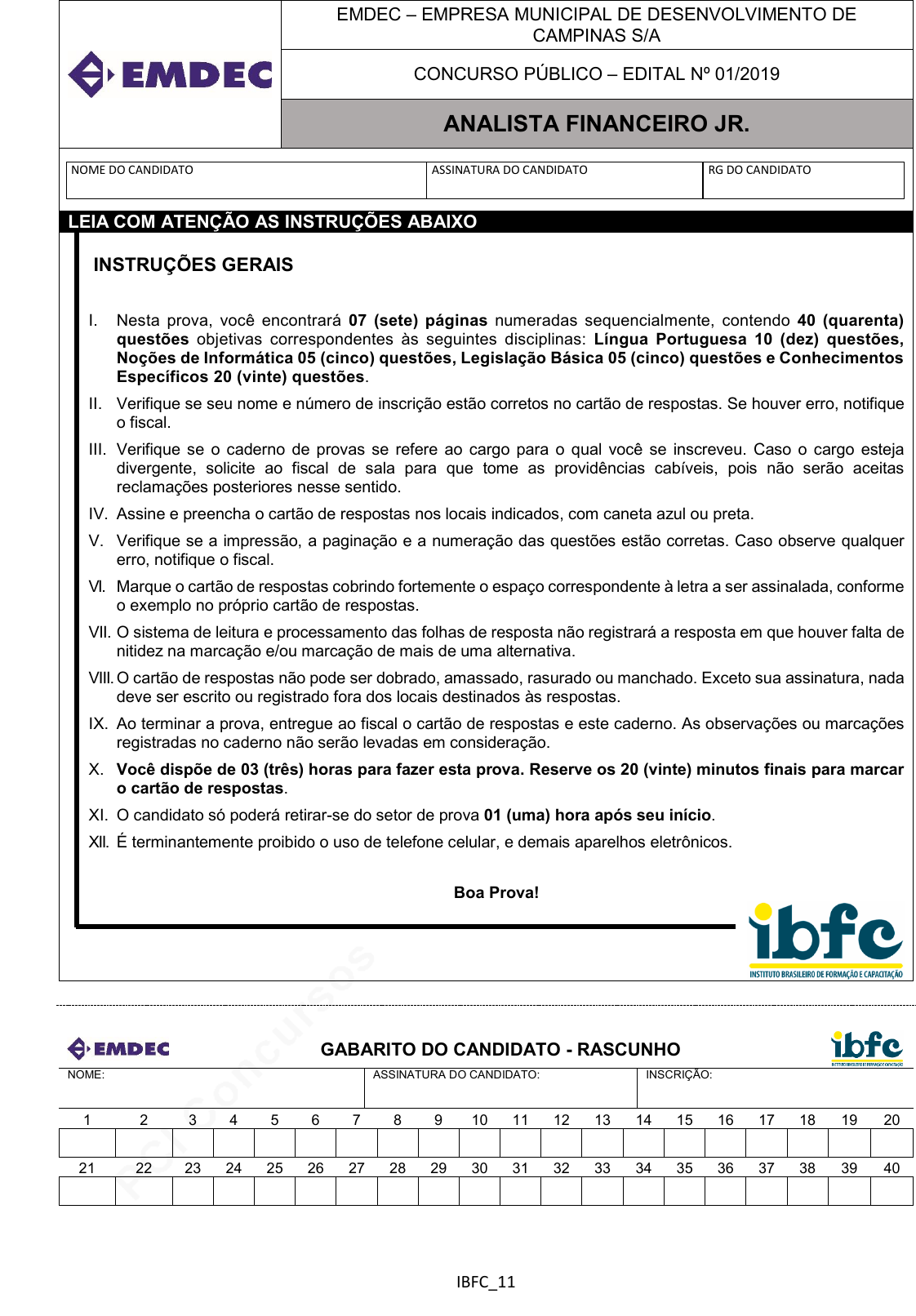 pcimarkpci MDAwMDowMDAwOjAwMDA6MDAwMDowMDAwOmZmZmY6YWFmNzoyYmNh:V2VkLCAxOCBEZWMgMjAxOSAwODoxMzoxMyAtMDMwMA== IBFC_11 EMDEC – EMPRESA MUNICIPAL DE DESENVOLVIMENTO DE CAMPINAS S/A CONCURSO PÚBLICO – EDITAL Nº 01/2019 ANALISTA FINANCEIRO JR. LEIA COM ATENÇÃO AS INSTRUÇÕES ABAIXO INSTRUÇÕES GERAIS I. Nesta prova, você encontrará 07 (sete) páginas numeradas sequencialmente, contendo 40 (quarenta) questões objetivas correspondentes às seguintes disciplinas: Língua Portuguesa 10 (dez) questões, Noções de Informática 05 (cinco) questões, Legislação Básica 05 (cinco) questões e Conhecimentos Específicos 20 (vinte) questões. II. Verifique se seu nome e número de inscrição estão corretos no cartão de respostas. Se houver erro, notifique o fiscal. III. Verifique se o caderno de provas se refere ao cargo para o qual você se inscreveu. Caso o cargo esteja divergente, solicite ao fiscal de sala para que tome as providências cabíveis, pois não serão aceitas reclamações posteriores nesse sentido. IV. Assine e preencha o cartão de respostas nos locais indicados, com caneta azul ou preta. V. Verifique se a impressão, a paginação e a numeração das questões estão corretas. Caso observe qualquer erro, notifique o fiscal. VI. Marque o cartão de respostas cobrindo fortemente o espaço correspondente à letra a ser assinalada, conforme o exemplo no próprio cartão de respostas. VII. O sistema de leitura e processamento das folhas de resposta não registrará a resposta em que houver falta de nitidez na marcação e/ou marcação de mais de uma alternativa. VIII. O cartão de respostas não pode ser dobrado, amassado, rasurado ou manchado. Exceto sua assinatura, nada deve ser escrito ou registrado fora dos locais destinados às respostas. IX. Ao terminar a prova, entregue ao fiscal o cartão de respostas e este caderno. As observações ou marcações registradas no caderno não serão levadas em consideração. X. Você dispõe de 03 (três) horas para fazer esta prova. Reserve os 20 (vinte) minutos finais para marcar o cartão de respostas. XI. O candidato só poderá retirar-se do setor de prova 01 (uma) hora após seu início. XII. É terminantemente proibido o uso de telefone celular, e demais aparelhos eletrônicos. Boa Prova! GABARITO DO CANDIDATO - RASCUNHO NOME: ASSINATURA DO CANDIDATO: INSCRIÇÃO: 1 2 3 4 5 6 7 8 9 10 11 12 13 14 15 16 17 18 19 20 21 22 23 24 25 26 27 28 29 30 31 32 33 34 35 36 37 38 39 40 NOME DO CANDIDATO ASSINATURA DO CANDIDATO RG DO CANDIDATO pcimarkpci MDAwMDowMDAwOjAwMDA6MDAwMDowMDAwOmZmZmY6YWFmNzoyYmNh:V2VkLCAxOCBEZWMgMjAxOSAwODoxMzoxMyAtMDMwMA== RASCUNHO pcimarkpci MDAwMDowMDAwOjAwMDA6MDAwMDowMDAwOmZmZmY6YWFmNzoyYmNh:V2VkLCAxOCBEZWMgMjAxOSAwODoxMzoxMyAtMDMwMA== IBFC_11 1 LÍNGUA PORTUGUESA Leia o texto abaixo de Leandro Karnal para responder às questões de 1 a 6. A perfeição (adaptado) O susto de reencontrar alguém que não vemos há anos é o impacto do tempo. O desmanche alheio incomoda? Claro que não, apenas o nosso refletido na hipótese de estarmos também daquele jeito. Há momentos nos quais o salto para o abismo do fim parece mais dramático: especialmente entre 35 e 55. (...) Agatha Christie deu um lindo argumento para todos nós que envelhecemos. Na sua Autobiografia, narra que a solução de um casamento feliz está em imitar o segundo casamento da autora: contrair núpcias com um arqueólogo (no caso, Max Mallowan), pois, quanto mais velha ela ficava, mais o marido se apaixonava. Talvez o mesmo indicativo para homens e mulheres estivesse na busca de geriatras, restauradores, historiadores, egiptólogos ou, no limite, tanatologistas. Envelhecer é complexo, a opção é mais desafiadora. O célebre historiador israelense Yuval Harari prevê que a geração alpha (nascidos no século em curso) chegará, no mínimo, a 120 anos se obtiver cuidados básicos. O Brasil envelhece demograficamente e nós poderíamos ser chamados de vanguarda do novo processo. Dizem que Nelson Rodrigues aconselhava aos jovens que envelhecessem, como o melhor indicador do caminho a seguir. Não precisamos do conselho pois o tempo é ceifador inevitável. (...) Como em toda peça teatral, o descer das cortinas pode ser a deixa para um aplauso caloroso ou um silêncio constrangedor, quando não vaia estrondosa. É sabedoria que o tempo ensina, ao retirar nossa certeza com o processo de aprendizado. Hoje começa mais um dia e mais uma etapa possível. Hoje é um dia diferente de todos. Você, tendo 16 ou 76, será mais velho amanhã e terá um dia a menos de vida. Hoje é o dia. Jovens, velhos e adjacentes: é preciso ter esperança. 1) De acordo com o primeiro parágrafo do texto, assinale a alternativa correta. a) Ao encontrar alguém que não vemos há muito tempo, nós não nos incomodamos, direta ou indiretamente, com seu envelhecimento. b) Existe a possibilidade, como hipótese, de se sentir tocado pelo envelhecimento do outro, dependendo da gravidade com que os efeitos atuaram nele. c) Os efeitos do tempo no outro ganha significância para nós na medida em que essa percepção, por meio da projeção, nos traz consciência de que vivemos um processo semelhante. d) O salto para o abismo torna-se um problema grave para determinada faixa etária, cujos problemas com o envelhecimento podem levar a atitudes extremas como o suicídio. 2) De acordo com a leitura atenta do texto, assinale a alternativa incorreta. a) Em sua autobiografia, Agatha Christie disse que, ao casar com um profissional que valoriza o mundo antigo – como restauradores, historiadores, egiptólogos, ou arqueólogos como seu marido –, garantiu o aumento do interesse do marido por ela ao longo do tempo. b) O historiador israelense Yuval Harari faz uma previsão de que os nascidos nesse século, desde que tomem certos cuidados, devem viver 120 anos ou mais. c) O autor do texto, depois de citar o conselho de Nelson Rodrigues aos jovens para que envelheçam, afirma que t