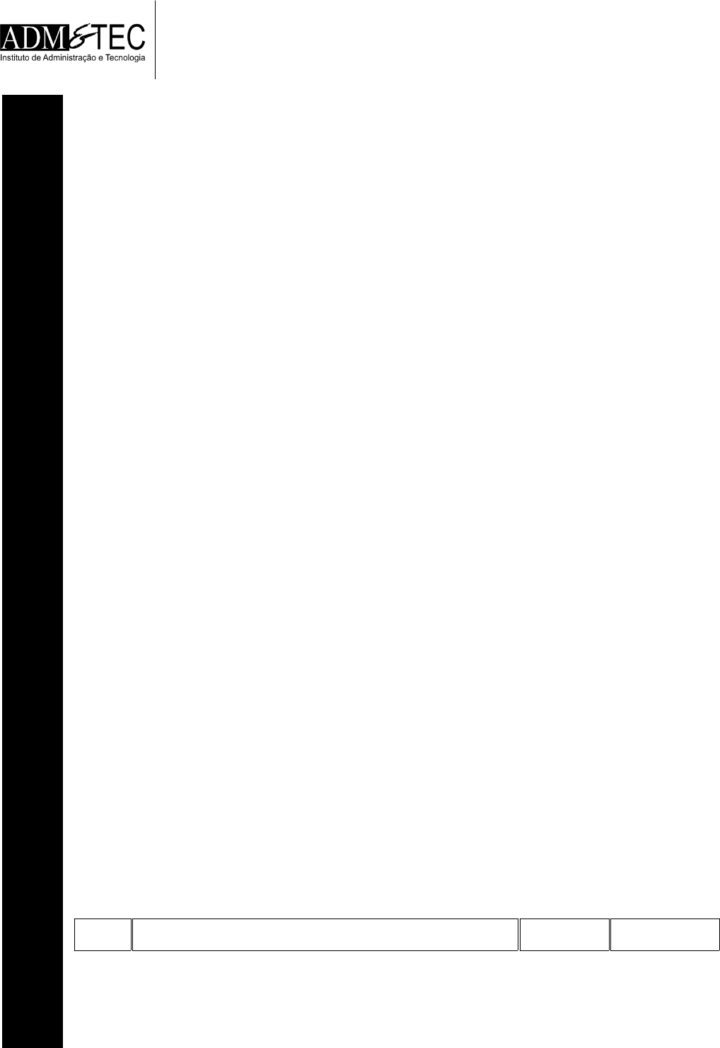 CONCURSO PÚBLICO SERRA TALHADA (SUPERIOR - MANHÃ) CADERNO DE QUESTÕES OBJETIVAS EN G EN H EI RO (A ) C IV IL Atenção! Verifique se as informações descritas neste Caderno de Questões Objetivas coincidem com o registrado no topo de cada página e com o seu Cartão de Respostas. Caso contrário, notifique o fiscal de sala para que sejam tomadas as devidas providências. Informações gerais: Você receberá do fiscal de sala o material descrito a seguir:1. este Caderno de Questões Objetivas, com 40 (quarenta) questões de múltiplaa. escolha; um Cartão de Respostas destinado às respostas das questões objetivasb. formuladas na prova. Ao receber o Cartão de Respostas você deve:2. conferir seu nome e número de inscrição;a. ler atentamente as instruções para a marcação das respostas das questõesb. objetivas; assinar o Cartão de Respostas, no espaço reservado, com caneta de cor azul ouc. preta. As questões são identificadas pelo número que se situa antes do seu enunciado.3. Durante a aplicação da prova não será permitido:4. qualquer tipo de comunicação entre os examinandos;a. levantar da cadeira sem a devida autorização do fiscal de sala;b. portar aparelhos eletrônicos, tais como telefone celular, notebook, receptor,c. gravador ou máquina fotográfica ou equivalente. Não será permitida a troca do Cartão de Respostas por erro do candidato.5. Reserve tempo suficiente para marcar seu Cartão de Respostas.6. Para fins de correção do Cartão de Respostas, serão levadas em consideração apenas7. as marcações realizadas no Cartão de Respostas. No Cartão de Respostas, para cada questão, assinale apenas uma opção, pois atribuir-8. se-á nota zero a toda questão com mais de uma opção assinalada, ainda que dentre elas se encontre a correta. O Cartão de Respostas não pode ser dobrado, amassado, rasurado ou manchado nem9. pode conter nenhum registro fora dos locais destinados às respostas. Quando terminar sua prova, você deverá, OBRIGATORIAMENTE, entregar o Cartão de10. Respostas devidamente preenchida e assinada ao fiscal da sala. Aquele que descumprir esta regra será ELIMINADO. NOME: INSCRIÇÃO: Instituto ADM&TEC | SERRA TALHADA (SUPERIOR - MANHÃ) ENGENHEIRO(A) CIVIL - Página 2 de 9 CONHECIMENTOS ESPECÍFICOS QUESTÃO 1. Leia as afirmativas a seguir: I. No caso da existência de aberturas de janelas ou portas com mais de 1,5 metros em uma parede de alvenaria, deve-se ter o cuidado de prever a necessidade de um reforço estrutural , chamado de verga. II. Nas paredes externas, é proibido adotar-se cinta contínua com altura da verga, pois as aberturas muitas vezes são muito próximas. Marque a alternativa CORRETA: a) As duas afirmativas são verdadeiras. b) A afirmativa I é verdadeira, e a II é falsa. c) A afirmativa II é verdadeira, e a I é falsa. d) As duas afirmativas são falsas. QUESTÃO 2. Leia as afirmativas a seguir: I. Para que a edificação seja considerada monolítica, é necessário que a distribuição de paredes seja adequada e que a interação entre as paredes, lajes e demais elementos da estrutura seja garantida. II. Para evitar o acúmulo de tensões em determinadas áreas do projeto, muitas vezes surge a necessidade de elementos de reforço como por exemplo: vergas, cintas, coxins e rabichos. Marque a alternativa CORRETA: a) As duas afirmativas são verdadeiras. b) A afirmativa I é verdadeira, e a II é falsa. c) A afirmativa II é verdadeira, e a I é falsa. d) As duas afirmativas são falsas. QUESTÃO 3. Leia as afirmativas a seguir: I. A espessura efetiva de uma parede sem enrijecedores deve ser a sua espessura real, sem a consideração de revestimentos. II. Elevar os custos do empreendimento é um dos objetivos da gestão da qualidade na construção civil. Marque a alternativa CORRETA: a) As duas afirmativas são verdadeiras. b) A afirmativa I é verdadeira, e a II é falsa. c) A afirmativa II é verdadeira, e a I é falsa. d) As duas afirmativas são falsas. QUESTÃO 4. Leia as afirmativas a seguir: I. Caso a remoção direta de uma parede não seja possível por motivos estruturais, pode-se optar por remoções parciais. Pode-se aumentar o vão destas remoções optando por aberturas em forma de arco. II. A estabilidade global de uma estrutura de alvenaria pode ser garantida verificando-se o tombamento da mesma. Marque a alternativa CORRETA: a) As duas afirmativas são verdadeiras. b) A afirmativa I é verdadeira, e a II é falsa. c) A afirmativa II é verdadeira, e a I é falsa. d) As duas afirmativas são falsas. QUESTÃO 5. Leia as afirmativas a seguir: I. As paginações ou elevações são plantas que não devem ser usadas para complementar as plantas de primeira e segunda fiadas, pois nessas é possível visualizar todos os detalhes da alvenaria. II. A contra-verga é posicionada na última fiada antes da abertura da janela (de baixo para cima). Marque a alternativa CORRETA: a) As duas afirmativas são verdadeiras. b) A afirmativa I é verdadeira, e a II é falsa. c) A afirmativa II é verdadeira, e a I é falsa. d) As duas afirmativas são falsas. QUESTÃO 6. Leia as afirmativas a seguir: I. Sobre as paredes devem ser consideradas as cargas verticais referentes ao peso das lajes e ao peso próprio da parede. I I . A cinta previne recalques diferenciais não considerados e ainda auxilia no contraventamento e no amarramento das paredes. Marque a alternativa CORRETA: a) As duas afirmativas são verdadeiras. b) A afirmativa I é verdadeira, e a II é falsa. c) A afirmativa II é verdadeira, e a I é falsa. d) As duas afirmativas são falsas. Instituto ADM&TEC | SERRA TALHADA (SUPERIOR - MANHÃ) ENGENHEIRO(A) CIVIL - Página 3 de 9 QUESTÃO 7. Leia as afirmativas a seguir: I. Assegurar a adequação dos recursos necessários à construção, que incluem equipes, materiais , equipamentos e outros insumos, é um dos objetivos da gestão da qualidade na construção civil. II. A cinta é um elemento estrutural s