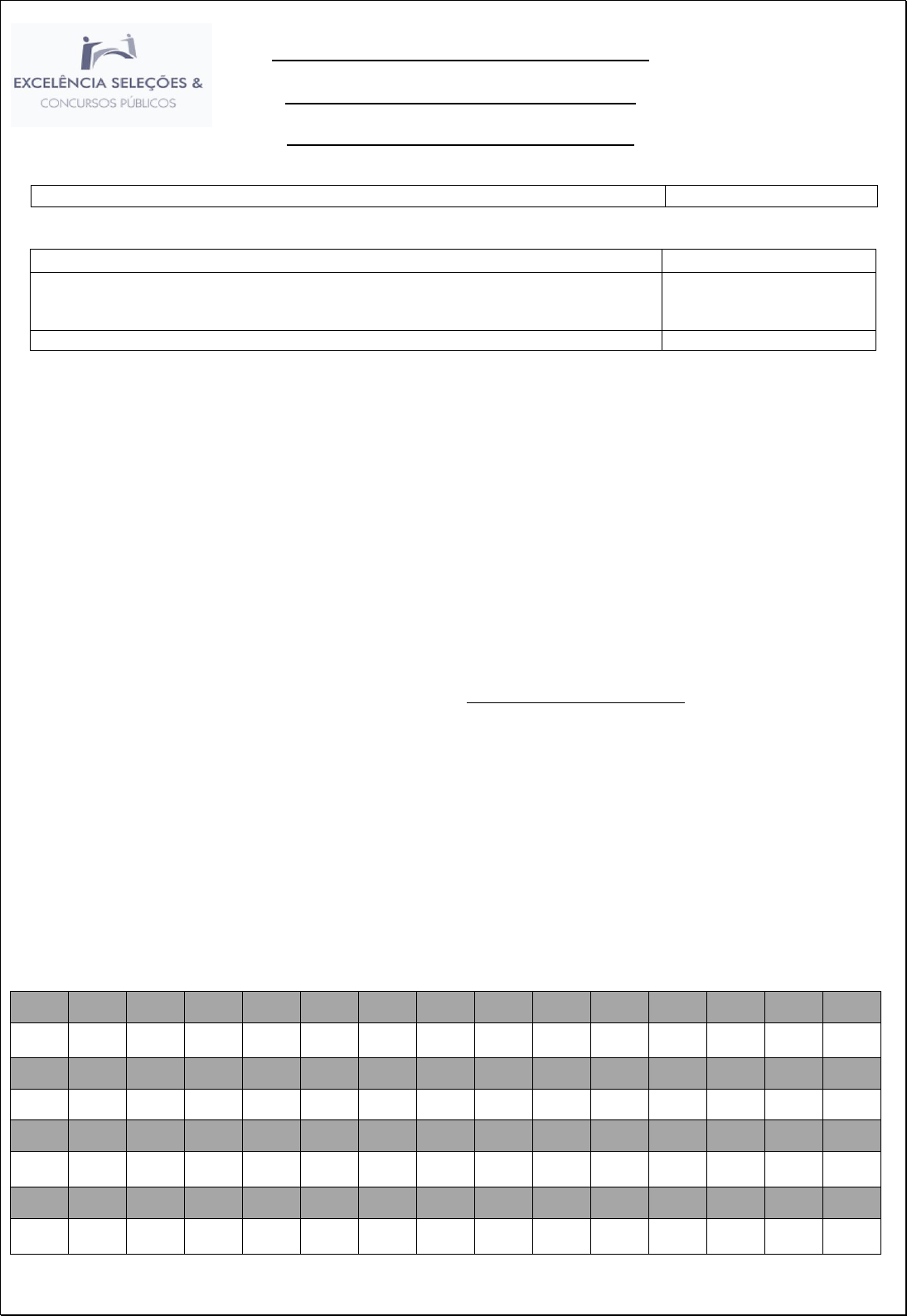 1 CONCURSO PÚBLICO EDITAL 003/2019 PREFEITURA MUNICIPAL DE TAUBATÉ- SP MÉDICO ESPECIALISTA - REUMATOLOGIA Nome do(a) Candidato(a) Número de Documento Este caderno de questões está assim constituído: INSTRUÇÕES AO CANDIDATO (A): Verifique se está sentado no local correto, condizente com a sua etiqueta (Nome do candidato e Prova). Confira devidamente o CADERNO DE QUESTÕES; se houver falha, solicite a troca do caderno de questões completo ao fiscal. Confira seus dados no CARTÃO DE RESPOSTAS: NOME, Nº de INSCRIÇÃO e PROVA. ASSINE no espaço indicado na frente do cartão. O CARTÃO DE RESPOSTAS deverá ser preenchido de caneta esferográfica transparente, azul ou preta, ponta grossa, sem rasuras e apenas uma ÚNICA alternativa poderá ser marcada em cada questão, preenchendo totalmente o espaço, e não apenas “x”. Não amasse nem dobre o CARTÃO DE RESPOSTAS; evite usar borracha. É vedada a substituição do CARTÃO DE RESPOSTAS decorrente de erro cometido por candidato. Durante a prova, não é permitida a comunicação entre candidatos nem a utilização de máquinas calculadoras e/ou similares, livros, anotações, réguas de cálculo, impressos ou qualquer outro material de consulta. O tempo de duração da prova será de até 03 (três) horas. O candidato somente poderá retirar-se definitivamente do recinto de realização da prova após 1 (uma) hora, contada do seu efetivo início. O candidato poderá levar o caderno de questões depois de decorridos 02 (duas ) horas do início da prova. Ao final dos trabalhos, DEVOLVA ao Fiscal de Sala o CARTÃO DE RESPOSTAS devidamente preenchido e assinado. Os três últimos candidatos de cada sala de prova deverão permanecer no recinto, a fim de acompanhar os fiscais para o lacre dos envelopes, quando, então, poderão retirar-se do local, simultaneamente, depois de concluído. O CANDIDATO, AO TERMINAR A PROVA, DEVERÁ RETIRAR-SE IMEDIATAMENTE DO LOCAL DE APLICAÇÃO DE PROVA, NÃO PODENDO PERMANECER NAS DEPENDÊNCIAS DESTE, BEM COMO NÃO PODERÁ UTILIZAR OS SANITÁRIOS. O candidato será eliminado sumariamente caso o celular emita qualquer som. Destaque aqui - - - - - - - - - - - - - - - - - - - - - - - - - - - - - - - - - - - - - - - - - - - - - - - - - - - - - - - - - - - - - - - - - - - - - - - - - - - - - - - - PREFEITURA MUNICIPAL DE TAUBATÉ – SP – MÉDICO ESPECIALISTA - REUMATOLOGIA Marque aqui as suas respostas: 1 2 3 4 5 6 7 8 9 10 11 12 13 14 15 16 17 18 19 20 21 22 23 24 25 26 27 28 29 30 31 32 33 34 35 36 37 38 39 40 41 42 43 44 45 46 47 48 49 50 DISCIPLINAS Nº QUESTÕES Língua Portuguesa e Interpretação de Texto Matemática e Raciocínio Lógico Quantitativo Conhecimentos Específicos 15 15 20 Total de questões 50 2 RASCUNHO RASCUNHO 3 LÍNGUA PORTUGUESA E INTERPRETAÇÃO DE TEXTOS 1) A partícula SE pode assumir diversas funções sintáticas em língua portuguesa. Marque a alternativa na qual ela exerce a função de índice de indeterminação do sujeito. a) Reprovou-se o aluno. b) Vendem-se casas. c) Consertam-se bicicletas. d) Precisa-se de funcionários. 2) Leia o trecho do texto a seguir e considerando as características da figura de linguagem o qual se desenvolve, assinale a alternativa cuja interpretação está CORRETA: “E assim, quando mais tarde me procure / Quem sabe a morte, angústia de quem vive / Quem sabe a solidão, fim de quem ama / Eu possa me dizer do amor (que tive): / Que não seja imortal, posto que é chama / Mas que seja infinito enquanto dure.” Vinicius de Moraes a) Apresenta discurso subjetivo, com o objetivo de comover, emocionar o leitor, marcado por sinais de pontuação, desenvolvendo-se sempre em primeira pessoa. b) A mensagem transmitida pelo texto tem o intuito de convencer, cativar, persuadir o interlocutor, desenvolvendo-se na maioria das vezes em primeira pessoa. c) Trata-se de mensagem informativa, com o objetivo de informar, notificar, referenciar, anunciar, indicar, através do uso da linguagem denotativa. d) O texto caracteriza-se pela utilização do código para explicação do próprio código utilizado, sendo caracterizado por um enunciado, com ou sem verbo, que tem sentido completo. 3) Considerando o processo de formação e estrutura das palavras, assinale a alternativa cujo conteúdo apresenta uma derivação parassintética: a) Socorrer. b) Canto. c) Acalmar. d) Vinagre. 4) Assinale a alternativa cujo conteúdo apresenta corretamente a figura de linguagem utilizada no texto de Manuel Bandeira abaixo: “Quando indesejada das gentes chegar (não sei se dura ou coroável), Talvez eu tenha medo. Talvez sorria, ou diga: - Alô, iniludível!” a) Prosopopeia. b) Eufemismo. c) Ironia. d) Paradoxo. 5) Segundo o padrão culto da língua portuguesa, a parte da fonologia que trata da acentuação e da entoação adequada dos fonemas é a: a) Ortoepia. b) Fonoesia. c) Prosodia. d) Fonodia. 6) Assinale a alternativa que apresenta corretamente a justificativa que pode ser empregada para a ocorrência da crase na seguinte oração: “À esquerda ficava o lar dos idosos.” a) Locuções adverbiais e prepositivas formadas por substantivos femininos. b) Locuções adverbiais que indicam direção ou instrumentos, como, por exemplo, feito à mão. c) Antes das palavras que expressam casa, como lar, moradia, residência. d) Antes do nome de coordenadas indicativas de lugar. 7) A pontuação marca na escrita as diferenças de entonação, contribuindo para tornar mais preciso o sentido que se quer dar ao texto. Considerando as regras sobre o emprego da vírgula, assinale a alternativa em que a referida pontuação é utilizada para isolar adjunto adverbial, quando ele é extenso, ou quando se quer destacá-lo: a) O resto, os doces, os salgados, os frios, irá na caixa térmica. b) Você viu, Carlos, não sobrou muita coisa. c) Campinas, 30 de abril de 2019. d) À noite, faço um curso de computação gráfica. 8) Considerando a função sintática do adjetivo, ass