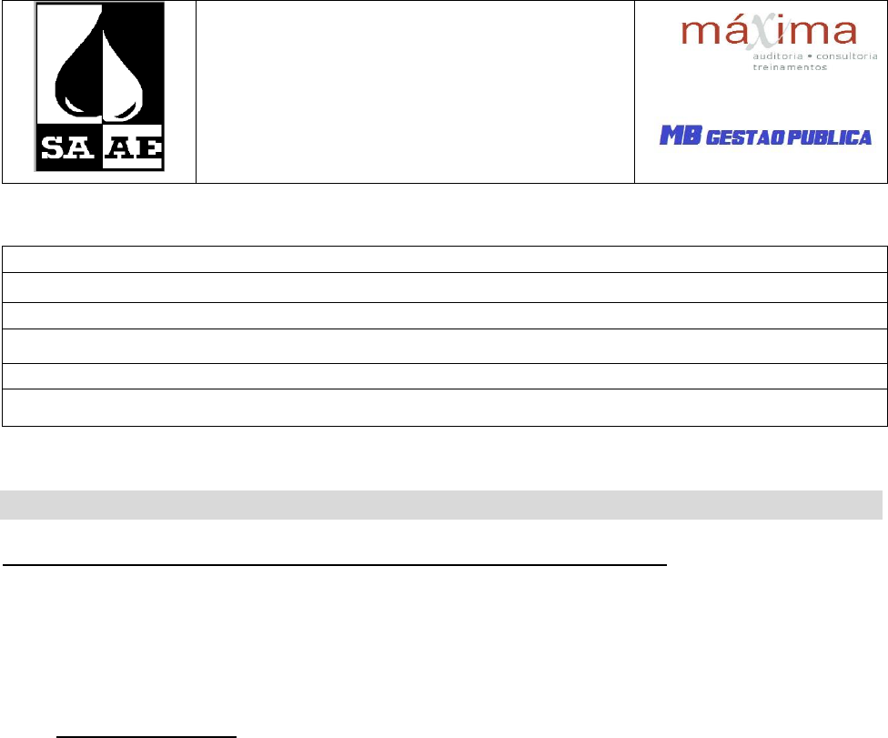 Prova de Operador de ETA e Operador de Pequeno Sistema. Concurso Público n.º 01/2016 – SAAE DE AIMORÉS - MG. - 1 - SAAE DE AIMORÉS - MG Concurso Público nº 01/2016 NOVA RAZÃO SOCIAL: CADERNO DE PROVAS Preencha com seu nome completo Cargos: OPERADOR DE ETA E OPERADOR DE PEQUENO SISTEMA Cargo Pretendido Senhor(a) Candidato(a), SÓ ABRA QUANDO AUTORIZADO. Antes de iniciar a prova, leia com atenção as instruções abaixo: 1. Atenção: se você não assinou a lista de presença na entrada da sala, faça isso antes de iniciar a prova; 2. TODOS os seus pertences, inclusive bolsa, deverão ficar debaixo da sua mesa. Celular desligado, carteira, chaves, moedas e relógio deverão ser acondicionados no envelope plástico fornecido na entrada. Deverá ficar sobre a mesa apenas LÁPIS, BORRACHA, CANETAS E DOCUMENTO DE IDENTIDADE; 3. Confira se este caderno de provas se refere ao cargo de sua inscrição; 4. A Folha de Respostas será entregue durante a realização da Prova e deverá ser imediatamente assinada, na presença do fiscal, com apresentação do documento de identidade; 5. Se houver alguma divergência nas informações da sua folha de respostas, informe ao fiscal; 6. Durante a prova, evite qualquer espécie de comentário, sendo vedado consultas ou utilização de calculadoras, telefones celulares, aparelhos eletrônicos, boné, chapéu ou óculos com lente escura; 7. Fique atento à sua prova e evite exposição à visão dos demais candidatos. 8. Não mexa ou utilize qualquer pertence durante a prova sem autorização do fiscal de sala; 9. Caso necessite ir ao banheiro, levante a mão e aguarde o fiscal de sala; 10. Ao se dirigir ao banheiro durante a prova você poderá ser chamado a passar pelo detector de metais; 11. Ao terminar a Prova, transcreva as respostas assinaladas neste Caderno para sua Folha de Rascunho e depois para a Folha de Respostas Oficial, sempre à caneta azul ou preta; 12. Recomendamos máxima atenção nas marcações da Folha de Respostas Oficial, pois NÃO haverá 2ª via; 13. Não dobre, não amasse e não rasure a Folha de Respostas, ela é a sua prova; 14. Será anulada a questão que contiver rasuras, emenda, mais de 1(uma) resposta assinalada, nenhuma resposta assinalada ou resposta não assinalada à caneta, na Folha de Respostas; 15. Ao final da prova deverão ser devolvidos ao Fiscal de Provas a Folha de Respostas e este Caderno, levando consigo a folha de rascunho, para futuras conferências. 16. Esta prova terá duração máxima de 3 (três) horas. 17. O candidato só poderá sair de sala após 60 minutos do início da prova; 18. Os três últimos candidatos deverão sair juntos da sala, por medida de segurança; 19. Será dado um aviso quando estiver faltando 30 minutos para o término do horário de prova; 20. Qualquer dúvida ou necessidade dirija-se direta e exclusivamente ao Fiscal de Provas; 21. O gabarito bem como cópia deste caderno de provas estarão disponíveis no site da empresa a partir das 15 horas do dia 28/11/2016; 22. Atenção ao sair, não se esquecer dos seus pertences pessoais. A MB Gestão Pública Ltda. deseja a você uma BOA PROVA! Prova de Operador de ETA e Operador de Pequeno Sistema. Concurso Público n.º 01/2016 – SAAE DE AIMORÉS - MG. - 2 - PROVA DE CONHECIMENTOS ESPECÍFICOS 1. O parâmetro de qualidade de água que representa o grau de interferência com a passagem da luz através da água, devido à sólidos em suspensão e que pode reduzir a penetração da luz, prejudicando a fotossíntese, assim como pode estar associada a compostos tóxicos e organismos patogênicos. Assinale a alternativa CORRETA que corresponde a descrição acima. a) Turbidez; b) Cor; c) Dureza; d) Oxigênio Dissolvido. 2. A água destinada para consumo humano deve obedecer a requisitos físicos, químicos, biológicos e organolépticos. Dentre estes assinale a alternativa CORRETA que corresponde apenas ao parâmetro de natureza física: a) turbidez e pH; b) dureza e cor; c) alcalinidade e temperatura; d) sólidos e turbidez. 3. A matéria orgânica presente em corpos d’água é uma característica de primordial importância, sendo a causadora do principal problema de poluição das águas. Todas as alternativas abaixo são parâmetros de qualidade da água que indicam poluição de origem orgânica, EXCETO: a) alcalinidade; b) substâncias nitrogenadas; c) oxigênio consumido; d) cloretos. 4. No processo de tratamento de água a coagulação tem por finalidade transformar impurezas finais e dissolvidas, que se encontram em suspensão, em estado coloidal, para que possam ser removidas pela decantação e filtração. Para que este processo ocorra é necessário adicionar à água substâncias químicas que irão reagir com a impureza formando um produto insolúvel. Dentre estas substâncias, denominadas coagulantes, assinale a alternativa que NÃO corresponde a um coagulante. a) Sulfato de alumínio; b) Cloreto férrico; c) Nitrato de cálcio; d) Sulfato ferroso. 5. As doenças de veiculação hídrica são os problemas de saúde pública mais comuns dos países em desenvolvimento. Assinale a alternativa que apresenta doença transmitida diretamente pela ingestão de água contaminada. a) Amebíase; b) Tricomoníase; c) Herpes; d) Turbeculose. Prova de Operador de ETA e Operador de Pequeno Sistema. Concurso Público n.º 01/2016 – SAAE DE AIMORÉS - MG. - 3 - 6. Os sistemas de abastecimento de água são projetados para suprir a população durante um longo período de tempo. Um sistema convencional de abastecimento de água é constituído, de modo simplificado, por captação, adução, estação de tratamento, redes de distribuição e ligações domiciliares. Assinale a alternativa CORRETA que corresponde a etapa de decantação. Fonte: COPASA, 2016. a) 2; b) 3; c) 4; d) 5. Prova de Operador de ETA e Operador de Pequeno Sistema. Concurso Público n.º 01/2016 – SAAE DE AIMORÉS - MG. - 4 - 7. O tratamento de água visa