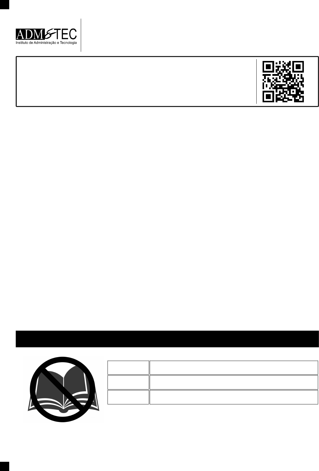 v.Audit.: 2BFA5964C v.735/2019 CONCURSO PÚBLICO JOAQUIM GOMES (AL) | NÍVEL MÉDIO CADERNO DE QUESTÕES OBJETIVAS ATENÇÃO! Verifique se as informações descritas neste Caderno de Questões Objetivas coincidem com o registrado no topo de cada página e com o seu Cartão de Respostas. Caso contrário, notifique o fiscal de sala para que sejam tomadas as devidas providências. Informações gerais: Você receberá do fiscal de sala o material descrito a seguir:1. este Caderno de Questões Objetivas, com 30 (trinta) questões de múltipla escolha;a. um Cartão de Respostas destinado às respostas das questões objetivas formuladas na prova.b. Ao receber o Cartão de Respostas você deve:2. conferir seu nome e número de inscrição;a. ler atentamente as instruções para a marcação das respostas das questões objetivas;b. assinar o Cartão de Respostas, no espaço reservado, com caneta de cor azul ou preta.c. As questões são identificadas pelo número que se situa antes do seu enunciado.3. Durante a aplicação da prova não será permitido:4. qualquer tipo de comunicação entre os examinandos;a. levantar da cadeira sem a devida autorização do fiscal de sala;b. portar aparelhos eletrônicos, tais como telefone celular, notebook, receptor, gravador ou máquina fotográfica ou equivalente.c. Não será permitida a troca do Cartão de Respostas por erro do candidato.5. Reserve tempo suficiente para marcar seu Cartão de Respostas.6. Para fins de correção do Cartão de Respostas, serão levadas em consideração apenas as marcações realizadas no Cartão de7. Respostas. No Cartão de Respostas, para cada questão, assinale apenas uma opção, pois atribuir-se-á nota zero a toda questão com mais de8. uma opção assinalada, ainda que dentre elas se encontre a correta. O Cartão de Respostas não pode ser dobrado, amassado, rasurado ou manchado nem pode conter nenhum registro fora dos locais9. destinados às respostas. Quando terminar sua prova, você deverá, OBRIGATORIAMENTE, entregar o Cartão de Respostas devidamente preenchida e assinada10. ao fiscal da sala. Aquele que descumprir esta regra será ELIMINADO. TÉCNICO (A) DE ENFERMAGEM Não folheie a prova antes da autorização do fiscal NOME: INSCRIÇÃO: CPF: Para mais informações, acesse nosso site www.admtec.org.br Instituto ADM&TEC | JOAQUIM GOMES (AL) | NÍVEL MÉDIO v.Audit.: 2BFA5964C TÉCNICO (A) DE ENFERMAGEM - Página 2 de 5 v.735/2019 CONHECIMENTOS ESPECÍFICOS Questões de 1 a 20 1 • Leia as afirmativas a seguir: I. O uso de preservativo masculino nas relações sexuais é o meio menos efetivo de prevenção ao HIV. II. O câncer de esôfago não está relacionado ao fumo. Marque a alternativa CORRETA: a) As duas afirmativas são verdadeiras. b) A afirmativa I é verdadeira, e a II é falsa. c) A afirmativa II é verdadeira, e a I é falsa. d) As duas afirmativas são falsas. 2 • Leia as afirmativas a seguir: I. O esôfago é um dos componentes do trato digestório. II. O intestino delgado é um dos componentes do trato digestório. Marque a alternativa CORRETA: a) As duas afirmativas são verdadeiras. b) A afirmativa I é verdadeira, e a II é falsa. c) A afirmativa II é verdadeira, e a I é falsa. d) As duas afirmativas são falsas. 3 • Leia as afirmativas a seguir: I. A vigilância nutricional está incluída no campo de atuação do SUS. II. O estômago é um dos componentes do trato digestório. Marque a alternativa CORRETA: a) As duas afirmativas são verdadeiras. b) A afirmativa I é verdadeira, e a II é falsa. c) A afirmativa II é verdadeira, e a I é falsa. d) As duas afirmativas são falsas. 4 • Leia as afirmativas a seguir: I. A promoção à saúde do idoso inclui algumas diretrizes, como o estímulo à participação e fortalecimento do controle social. II. A educação em saúde desestimula a busca pela qualidade de vida na população. Marque a alternativa CORRETA: a) As duas afirmativas são verdadeiras. b) A afirmativa I é verdadeira, e a II é falsa. c) A afirmativa II é verdadeira, e a I é falsa. d) As duas afirmativas são falsas. 5 • Leia as afirmativas a seguir: I. À luz da lei nº 8.080/90, o acesso a meios de transporte é um fator prejudicial à saúde. II. No ser humano, o HIV ataca apenas o sistema respiratório. Marque a alternativa CORRETA: a) As duas afirmativas são verdadeiras. b) A afirmativa I é verdadeira, e a II é falsa. c) A afirmativa II é verdadeira, e a I é falsa. d) As duas afirmativas são falsas. 6 • Leia as afirmativas a seguir: I. O profissional de saúde deve atender ao usuário dos serviços com educação e respeito. II. O paciente deve falar a verdade ao dar informações aos profissionais de saúde. Marque a alternativa CORRETA: a) As duas afirmativas são verdadeiras. b) A afirmativa I é verdadeira, e a II é falsa. c) A afirmativa II é verdadeira, e a I é falsa. d) As duas afirmativas são falsas. 7 • Leia as afirmativas a seguir: I. A radiação solar não pode causar câncer. II. A promoção à saúde do idoso inclui algumas diretrizes, como a formação e educação permanente dos profissionais de saúde. Marque a alternativa CORRETA: a) As duas afirmativas são verdadeiras. b) A afirmativa I é verdadeira, e a II é falsa. c) A afirmativa II é verdadeira, e a I é falsa. d) As duas afirmativas são falsas. 8 • Leia as afirmativas a seguir: I. A orientação alimentar está incluída no campo de atuação do SUS. II. A educação permanente em saúde desestimula a resolução de problemas concretos de saúde na comunidade. Marque a alternativa CORRETA: a) As duas afirmativas são verdadeiras. b) A afirmativa I é verdadeira, e a II é falsa. c) A afirmativa II é verdadeira, e a I é falsa. d) As duas afirmativas são falsas. 9 • Leia as afirmativas a seguir: I. Todos os profissionais da equipe de Saúde da Família devem cumprir uma carga horária máxima de dez horas semanais. II. A lei nº 8.080, de 1990, impõe medidas p