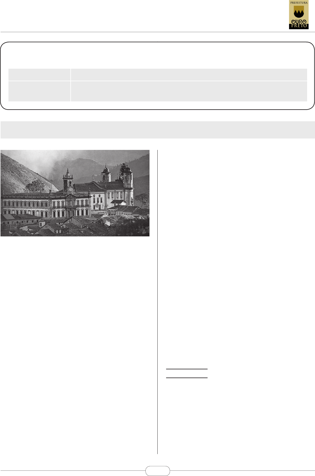 3 Prefeitura MuniciPal de OurOPretO[ cadernO 41 ] LÍNGUA PORTUGUESA Prezado (a) candidato (a) Coloque seu número de inscrição e nome no quadro abaixo: Nº de Inscrição Nome INSTRUÇÃO: leia, atentamente, o texto a seguir e, com base nele, responda às questões de 01 a 10. Volte a ele sempre que julgar necessário. Origem e significado do nome: 1. O nome Ouro Preto foi adotado em 20 de maio de 1823, quando a antiga Vila Rica foi elevada à cidade. “Ouro Preto” vem do ouro escuro, recoberto com uma camada de óxido de ferro, encontrado na cidade. O primeiro nome da cidade foi Vila Rica. Depois, foi Vila Rica de Albuquerque, por causa do Capitão General Antônio de Albuquerque Coelho Carvalho, então go- vernador das capitanias de Minas e São Paulo. Foi D. João V quem mandou retirar o “Albuquerque” do nome e adotou o “Vila Rica de Nossa Senhora do Pilar”, para homenagear a padroeira da cidade. 2. Ouro Preto nasceu sob o nome de Vila Rica, como resultado da épica aventura da colonização do interior brasileiro, que ocorreu no final do século XVII. Em 1698, saindo de Taubaté, São Paulo, a bandeira chefiada por Antônio Dias descortina o Itacolomi do alto da Serra do Ouro Preto, onde implanta a capela de São João. Ali, tem início o povoamento intenso do Vale do Tripui que, trinta anos depois, já possuía perto de 40 mil pessoas em mineração desordenada e sob a louca corrida pelo ouro de aluvião. 3. Em 1711, dá-se o conflito emboaba, luta pela con- quista de terras entre paulistas, portugueses e baianos. O Conde de Assumar, D. Pedro de Almeida, luta para implantar em Vila Rica a cobrança do quinto, devido à Coroa e assumir o comando do território, fazendo de Felipe dos Santos sua primeira vítima, em 1720. 4. Vila Rica cresce e exaure-se o ouro, mas cria uma civilização ímpar, com esplendor nas artes, nas letras e na política. 5. A Inconfidência Mineira é o apogeu do pensamento político e faz mártires entre padres, militares, poetas e servidores públicos, liderados por Tiradentes. 6. Com a Independência, recebe o nome de Ouro Pre- to e torna-se a capital de Minas até 1897. É instituí- da Patrimônio da Memória Nacional a partir de 1933 e tombada pelo IPHAN em 1938. Em 1980 é considerado Patrimônio cultural da Humanidade, pela UNESCO. 7. O surgimento e apogeu da arte colonial em Minas Gerais - barroco mineiro - é um fenômeno inteiramen- te ligado à exploração do ouro, acontecido no século XVIII, que veio criar uma cultura dotada de característi- cas peculiares e uma singular visão do mundo. 8. À medida que se expandia a atividade mineradora, o barroco explodia na riqueza de suas formas, na pom- pa e no fausto de suas solenidades religiosas e festas públicas, vindo marcar, de maneira definitiva, a socie- dade que se constituiu na região. 9. Ouro Preto - hoje Patrimônio Histórico Mundial - re- presenta inquestionavelmente a síntese da arte colo- nial mineira, não apenas pela expressão de sua histó- ria, mas pelas excepcionalidade do acervo cultural que preservou. Fonte: Secretaria de Cultura de Ouro Preto (texto adaptado) QUESTÃO 01 O propósito comunicativo do texto: “ História de Ouro Pre- to” é sobretudo o de a) apresentar a cidade, contemplando nela aspectos ge- ográficos positivos e negativos. b) divulgar atributos relacionados às histórias imaginá- rias de Ouro Preto. c) esclarecer sobre o significado e viagens de explora- ção do ouro nas minas gerais. d) informar de uma maneira objetiva os fatos históricos gradativos da cidade. 4 [ cadernO 41 ] Prefeitura MuniciPal de OurOPretO QUESTÃO 02 Analise os seguintes trechos retirados do texto: I. Ouro Preto nasceu sob o nome de Vila Rica, como resultado da épica aventura da colonização do interior brasileiro, que ocorreu no final do século XVII. II. Em 1711, dá-se o conflito emboaba, luta pela conquis- ta de terras entre paulistas, portugueses e baianos. III. Vila Rica cresce e exaure-se o ouro, mas cria uma civilização ímpar, com esplendor nas artes, nas letras e na política. IV. Ouro Preto - hoje Patrimônio Histórico Mundial - re- presenta inquestionavelmente a síntese da arte colo- nial mineira, não apenas pela expressão de sua his- tória, mas pelas excepcionalidades do acervo cultural que preservou. As frases em que o vocábulo ou expressão grifada pode ser retirada, sem que haja alteração de sentido no texto, são. a) apenas as frases I e II. b) apenas as frases II e III. c) apenas as frases III e IV. d) apenas as frases I e IV. QUESTÃO 03 Para o desenvolvimento do texto, o articulador faz uso de vários recursos, EXCETO de a) dados históricos. b) inserção de discurso direto. c) fatos relevantes para a formação histórica. d) relato de acontecimentos. QUESTÃO 04 Baseando-se na estruturação do texto, a CORRETA orde- nação dos parágrafos se deu por meio de (da) a) tempo e espaço, de maneira a contextualizar os fatos narrados. b) contraste e paralelo, o que visa explicitar ideias não reveladas. c) exemplificação, para dar suporte um ponto de vista apresentado, anteriormente. d) apresentação de razões, uma vez que há vozes cre- denciadas no contexto. QUESTÃO 05 Em todas as alternativas, o termo sublinhado refere-se a uma palavra ou a uma expressão que o antecede no tex- to, EXCETO: a) “Ouro Preto” vem do ouro escuro, recoberto com uma camada de óxido de ferro, encontrado na cidade. b) Foi D. João V quem mandou retirar o “Albuquerque” do nome e adotou o “Vila Rica de Nossa Senhora do Pilar”, para homenagear a padroeira da cidade. c) Em 1980 é considerado Patrimônio cultural da Huma- nidade, pela UNESCO. d) Ouro Preto nasceu sob o nome de Vila Rica, como resultado da épica aventura da colonização do interior brasileiro, que ocorreu no final do século XVII. QUESTÃO 06 A linguagem utilizada no contexto, sobre a origem e sig- nificado do nome de Ouro Preto, no 1º §, pode ser con- siderada a) conotada, um