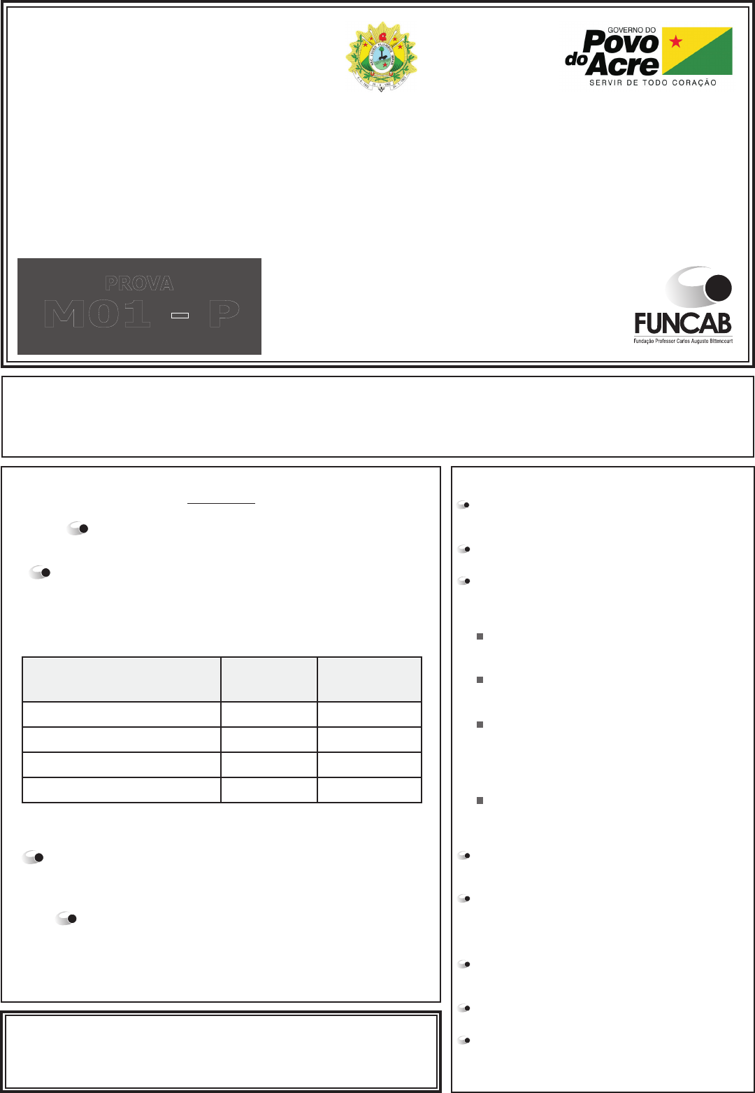 TRANSCREVA, EM ESPAÇO DETERMINADO NO SEU CARTÃO DE RESPOSTAS, A FRASE DO POETA MÁRIO QUINTANA PARA EXAME GRAFOTÉCNICO “Os verdadeiros analfabetos são os que aprenderam a ler e não leem.” BOA PROVA! www.funcab.org VERIFIQUE SE ESTE MATERIAL ESTÁ EM ORDEM, CASO CONTRÁRIO, NOTIFIQUE IMEDIATAMENTE O FISCAL. RESERVE OS 30 (TRINTA) MINUTOS FINAIS PARA MARCAR SEU CARTÃO DE RESPOSTAS. ATENÇÃO DURAÇÃO DA PROVA: 6 horas. ESTE CADERNO CONTÉM 80 (OITENTA) QUESTÕES DE MÚLTIPLA ESCOLHA, CADA UMA COM 5 ALTERNATIVAS DE RESPOSTA – A, B, C, D e E – CONFORME DISPOSIÇÃO ABAIXO, e REDAÇAO: Apoio Administrativo Educacional Nível 2– CONCURSO PÚBLICO para o cargo de ESTADO DO ACRE SECRETARIA DE ESTADO DA GESTÃO ADMINISTRATIVA SECRETARIA DE ESTADO DE EDUCAÇÃO E ESPORTE PROVA M01 - P Verifique se o tipo de prova deste caderno de questões confere com o seu cartão de respostas. ATENÇÃO: Após identificado e instalado na sala, você não poderá consultar qualquer material enquanto aguarda o horário de início da prova. Siga, atentamente, a forma correta de preenchimento do Cartão de Respostas, conforme estabelecido no próprio. Não haverá substituição do Cartão de Respostas por erro do candidato. O candidato só poderá retirar-se definitivamente da sala após 1 (uma) hora do início efetivo da prova; Somente faltando 1 (uma) hora para o término da prova, o candidato poderá retirar-se levando o seu Caderno de Questões; O candidato que optar por se retirar sem levar o seu Caderno de Questões não poderá copiar s u a s r e s p o s t a s p o r q u a l q u e r m e i o . O d e s c u m p r i m e n t o d e s s a d e t e r m i n a ç ã o s e r á registrado em ata e acarretará a eliminação do candidato; e Ao terminar a prova, o candidato deverá se retirar imediatamente do local, não sendo possível nem m e s m o a u t i l i z a ç ã o d o s b a n h e i r o s e / o u bebedouros. Ao terminar a prova, é de sua responsabilidade entregar ao fiscal o Cartão de Respostas assinado e . Não se esqueça dos seus pertences. A deverá ser desenvolvida na , personalizada e desidentificada pelo candidato, que deverá destacar o canhoto que contém seus dados cadastrais. A Folha da Redação é o único documento válido para a correção. O preenchimento da Folha de Respostas será de sua inteira responsabilidade. Não haverá substituição da Folha de Respostas por erro do candidato. Os três últimos candidatos deverão permanecer na sala até que o último candidato entregue o Cartão de Respostas. O fiscal de sala não está autorizado a alterar qualquer dessas instruções. Em caso de dúvida, solicite a presença do coordenador local. Por motivo de segurança: Folha da Redação Redação Folha da Redação LEIA AS INSTRUÇÕES ABAIXO Disciplinas Quantidade de questões Valor de cada questão Língua Portuguesa 20 1,25 Raciocínio Lógico 20 1,25 História e Geografia do Acre 20 1,25 Informática Básica 20 1,25 02 LÍNGUA PORTUGUESA FUNCAB - Fundação Professor Carlos Augusto Bittencourt Leia o texto abaixo e responda às questões propostas. Sei que há gente que mente sobre a idade que tem, claro. O que me surpreende é que mintam para menos. Parece modéstia. É como se dissessem que têm menos dinheiro do que têm de fato, ou mentissem que nunca saíram do país, ou que são virgens. Que alguém queira passar por menos experiente do que é me parece inconcebível. Cada experiência, por ridícula que tenha sido, cada noite maldormida, cada década de subempregos, devia ser motivo de orgulho. Devíamos mostrar nossas rugas como um soldado veterano mostrando cicatrizes. “Consegui esta ruga fazendo uma viagem chata para a Disney em 1987… Esta outra aqui foi por ter vendido a preço muito baixo o meu Ford Landau Galaxy em 1985…” Li uma vez que na China é o contrário, e as pessoas sempre aumentam a própria idade, muitas vezes incluindo os nove meses de gestação na conta. Se for verdade, diminuo agora mesmo meu desprezo por todo o continente asiático. Alguma coisa eles fazem certo, aparentemente. Portanto, comemore os seus aniversários com gosto, e entre na meia-idade e na velhice como quem entra devagar numa banheira quente depois de um longo dia infernal. Juventude é para maricas. Sorria, deixe as suas células morrerem. Entre contente para o seleto time dessas nobres e românticas figuras, o tiozão da calçada (grande amigo dos taxistas do bairro) e o senhor vagamente fascista que vai à padaria de sandália e pijama. [...] Envelhecer é uma dádiva (SILVA. Alexandre Soares. Revista VIP. edição 338. Ed. Abril. SP. in. http://vip.abril.com.br/cultura/papo-vip/envelhecer-e-uma- dadiva/ <acesso 23/10/2013> fragmentado). Questão 01 A opção que melhor justifica a afirmação do autor, no início do texto, “O que me surpreende é que mintam para menos.” é: A) as pessoas também deveriam mentir sobre outras questões, mas não o fazem. B) a idolatria pela juventude e pelo sucesso faz parte da cultura do povo brasileiro. C) ser jovem equivale a ser bem-sucedido perante a sociedade. D) as experiências de vida são valorizadas por todas as culturas no mundo. E) assim como os chineses, os brasileiros valorizam as experiências adquiridas pelo tempo. Questão 02 A afirmação “Parece modéstia.” (parágrafo 1) refere-se, de acordo com o texto, ao fato de que: A) é comum as pessoas mentirem sobre sua situação financeira. B) as rugas representam as experiências adquiridas durante a vida. C) a sociedade aceita melhor as pessoas com mais idade, por serem sábias. D) as pessoas são comedidas quando revelam a própria idade. E) quanto maior for a idade da pessoa, mais vaidosa ela será. Questão 03 A palavra INCONCEBÍVEL, na frase “Que alguém queira passar por menos experiente do que é me parece inconcebível.”, pode ser substituída, sem alteração de sentido, por: A) razoável. B) inacessível. C) imprevisível. D) notável. E) inacreditáv