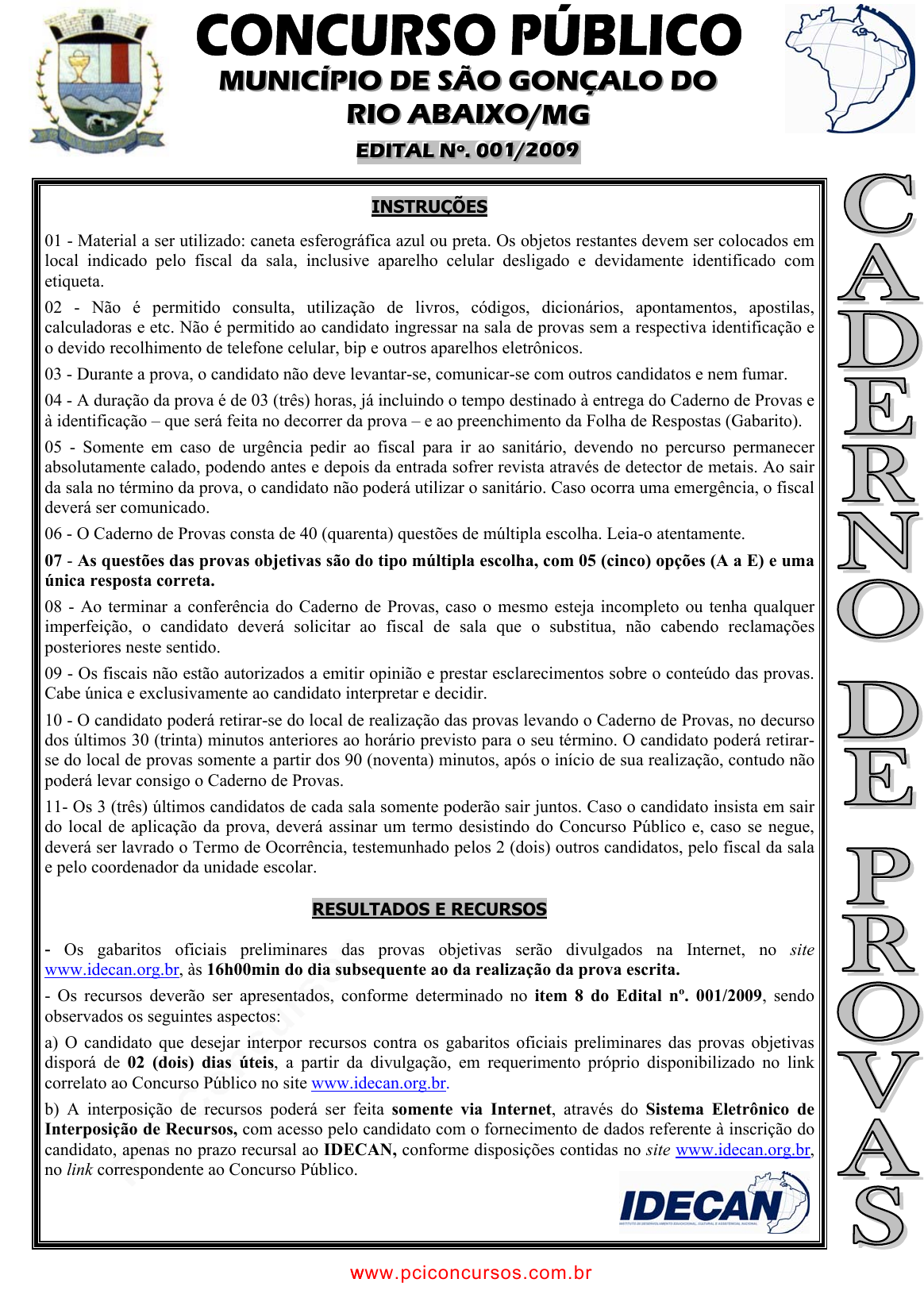 CCCOOONNNCCCUUURRRSSSOOO PPPÚÚÚBBBLLLIIICCCOOO ––– MMMUUUNNNIIICCCÍÍÍPPPIIIOOO DDDEEE SSSÃÃÃOOO GGGOOONNNÇÇÇAAALLLOOO DDDOOO RRRIIIOOO AAABBBAAAIIIXXXOOO///MMMGGG